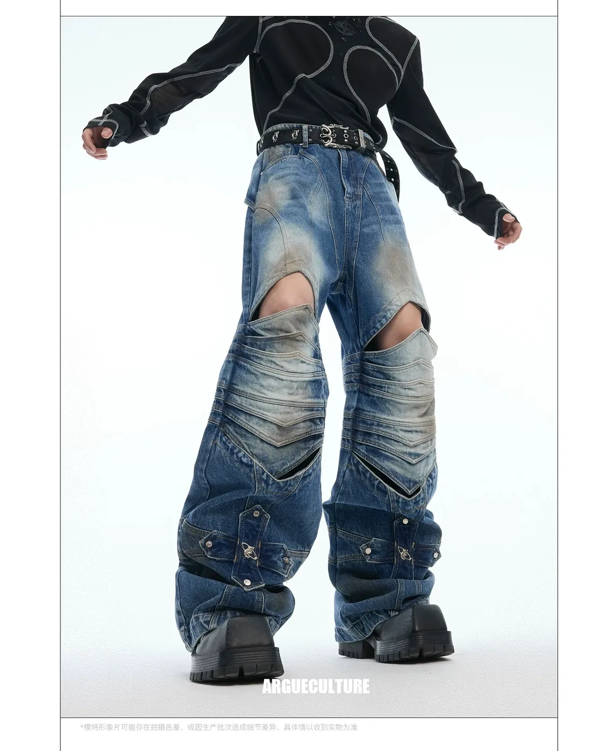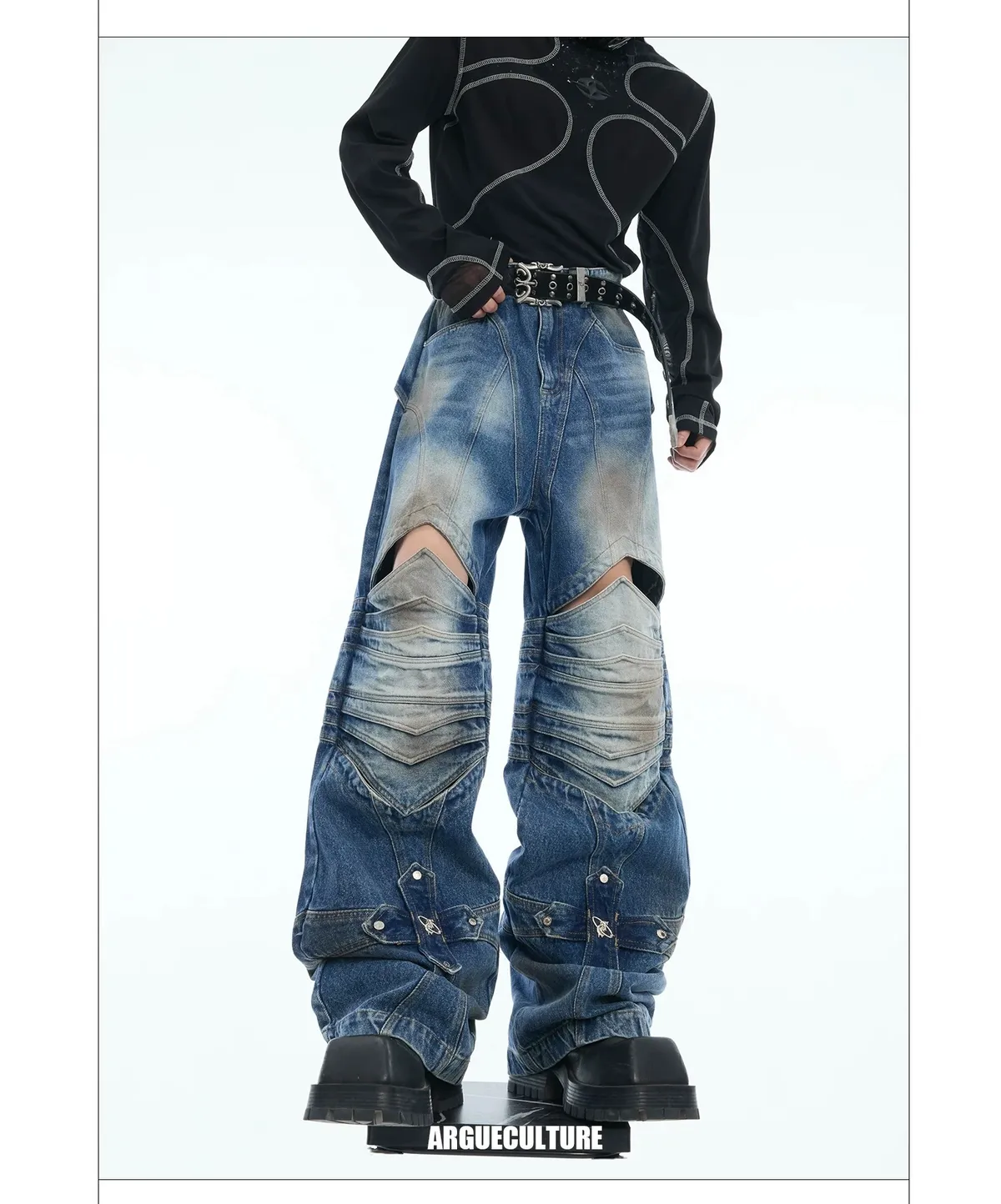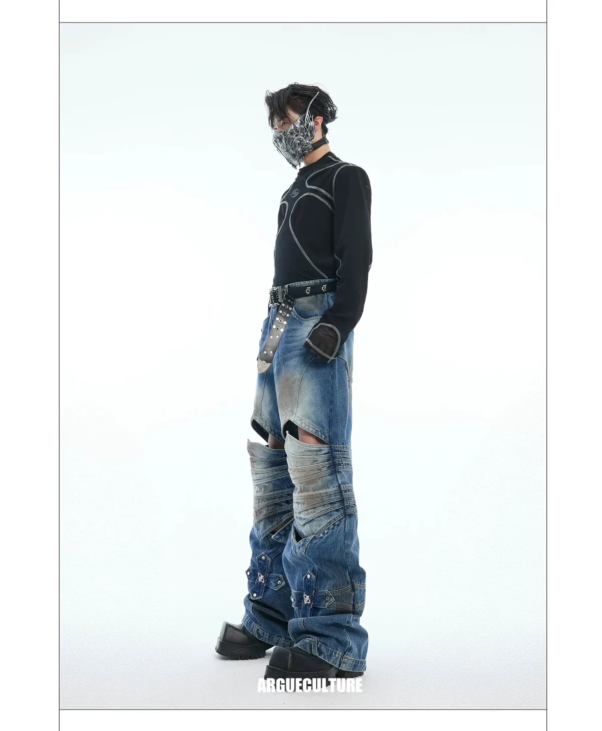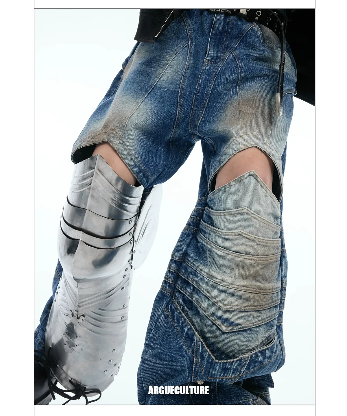 ARGUE 盔甲感 十字架 鏤空 牛仔褲(水洗藍)