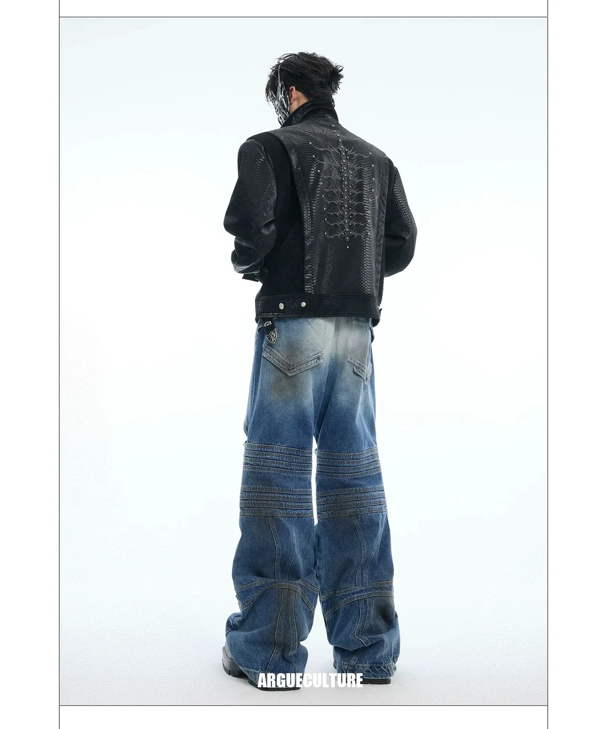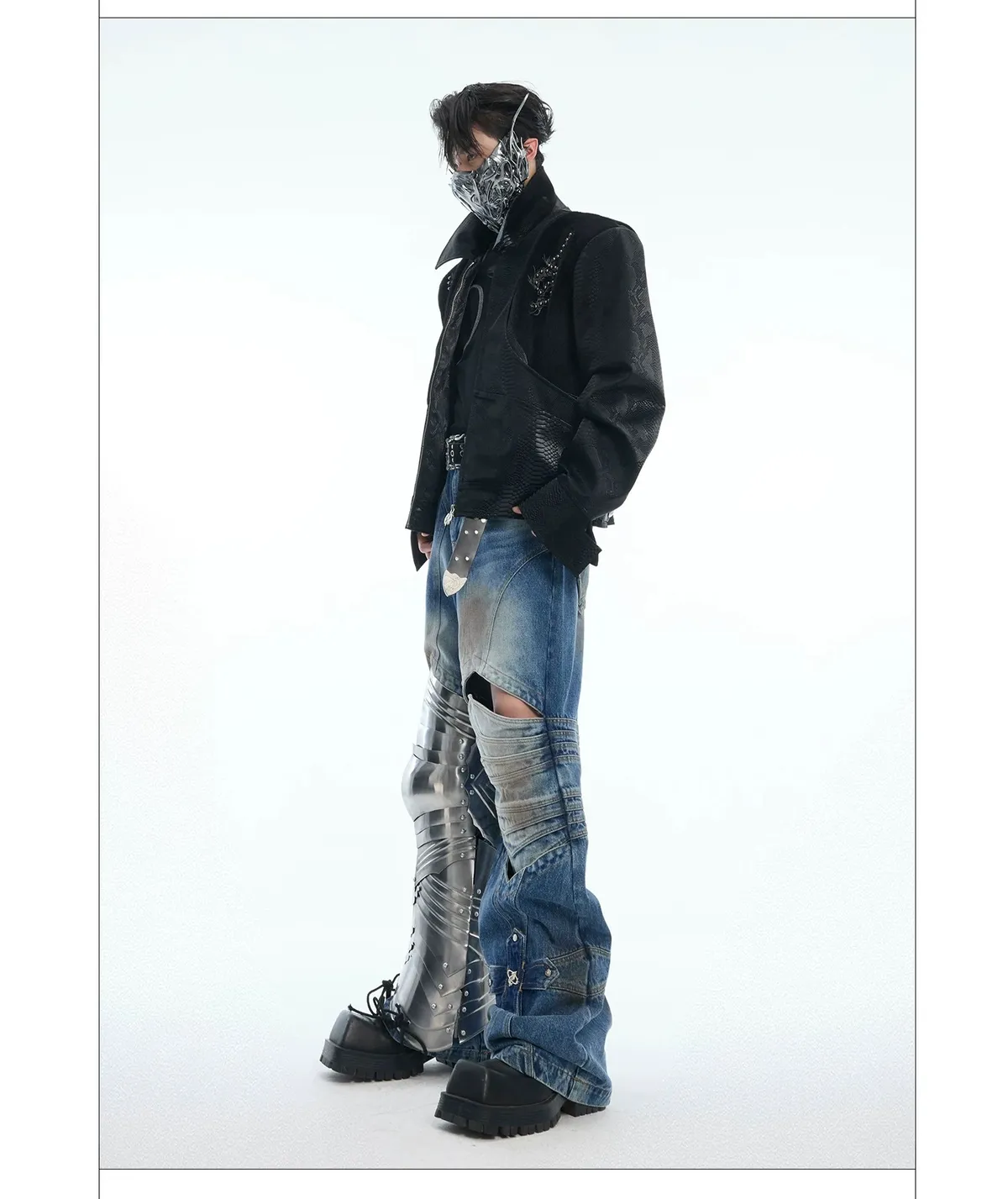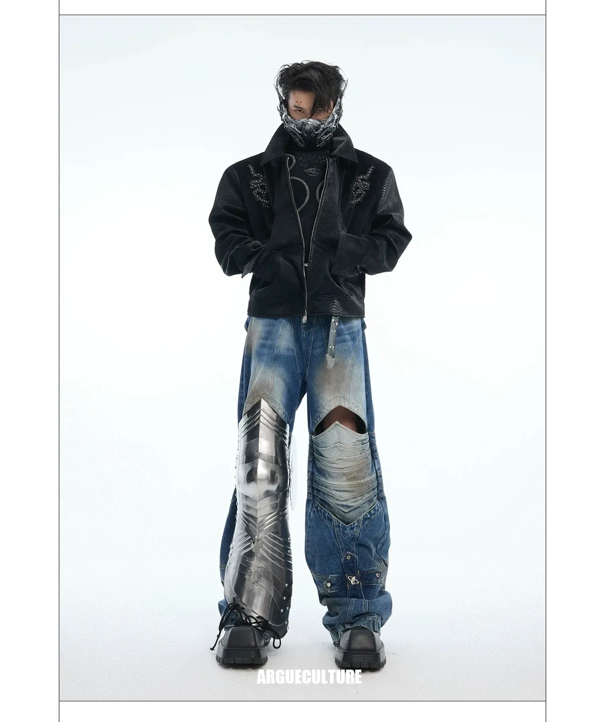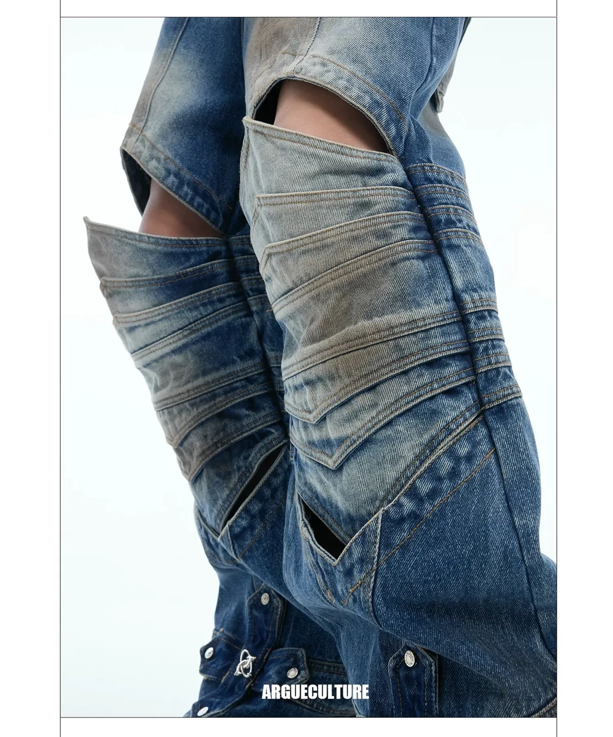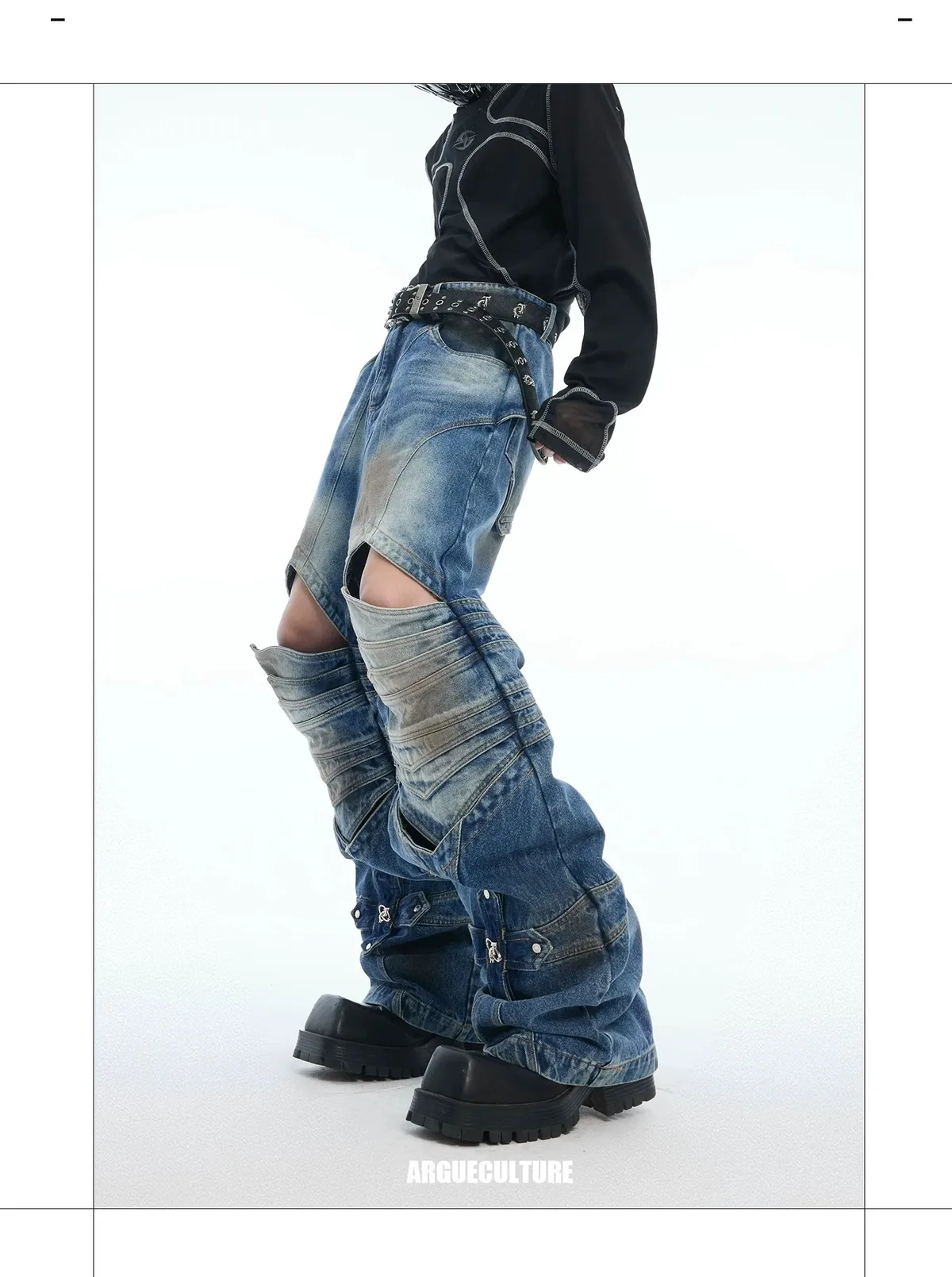 ARGUE 盔甲感 十字架 鏤空 牛仔褲(水洗藍)