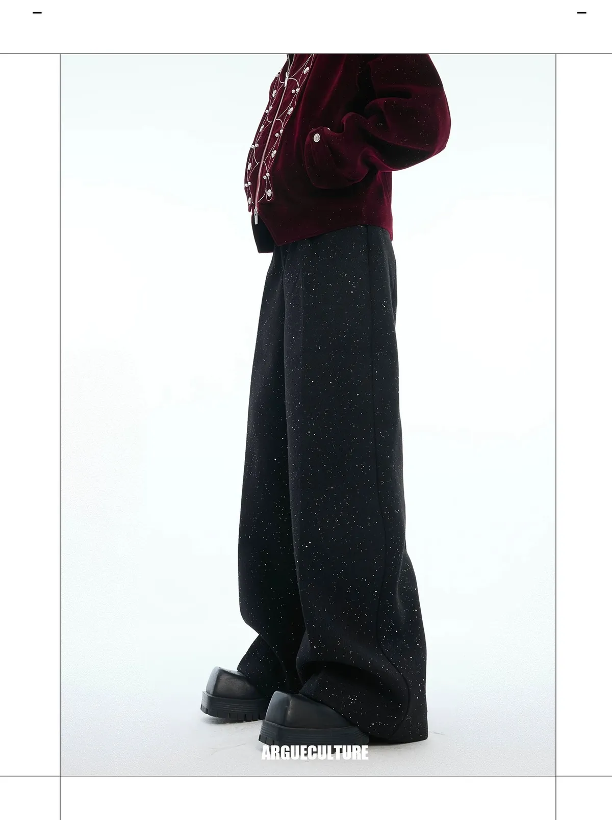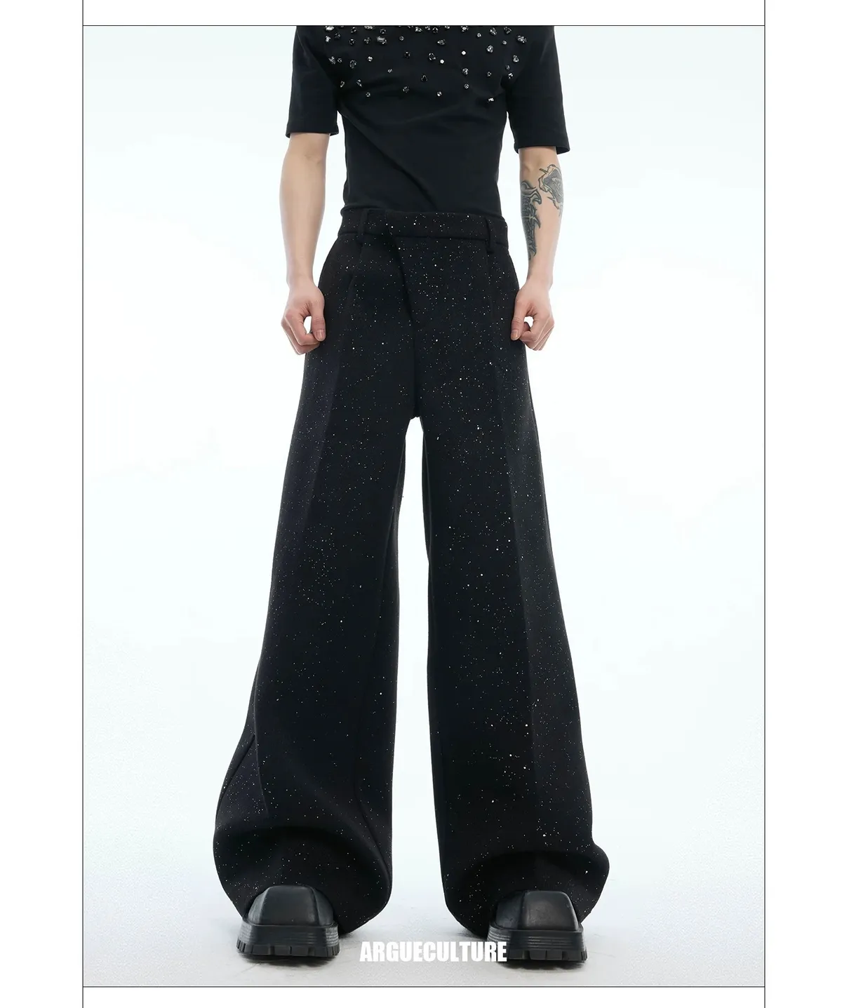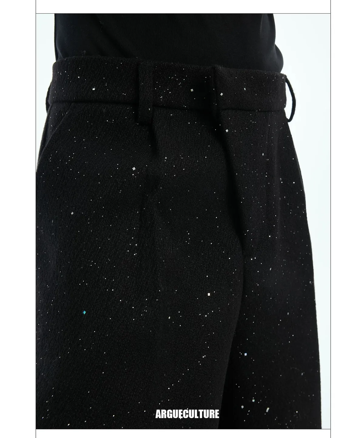 ARGUE 閃粉 高腰 闊腿 西裝褲(黑色)