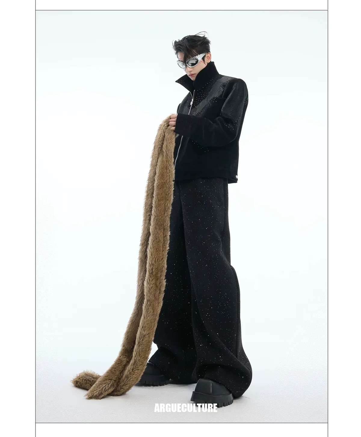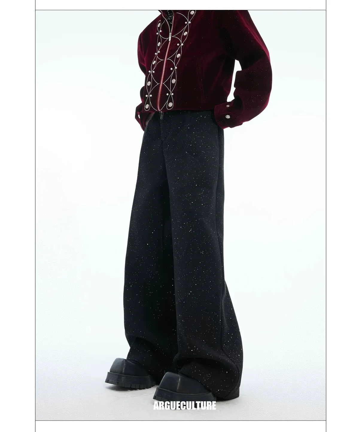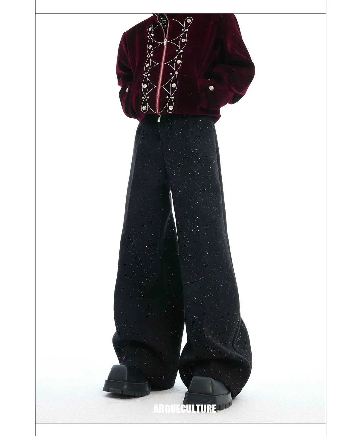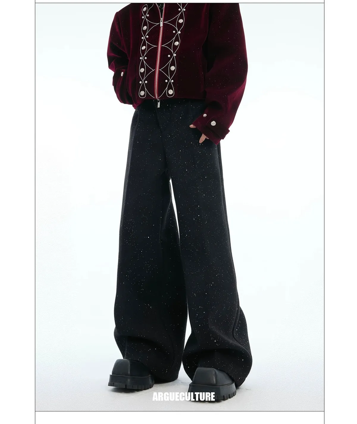 ARGUE 閃粉 高腰 闊腿 西裝褲(黑色)