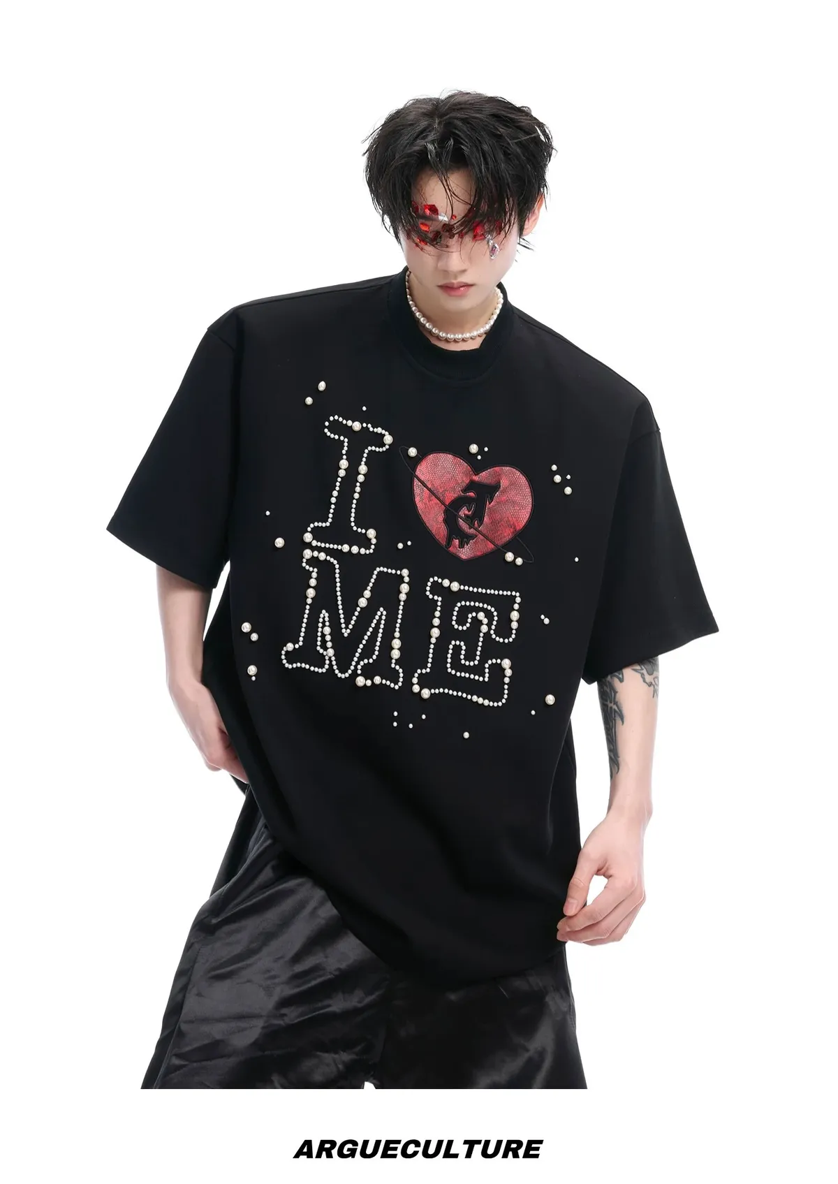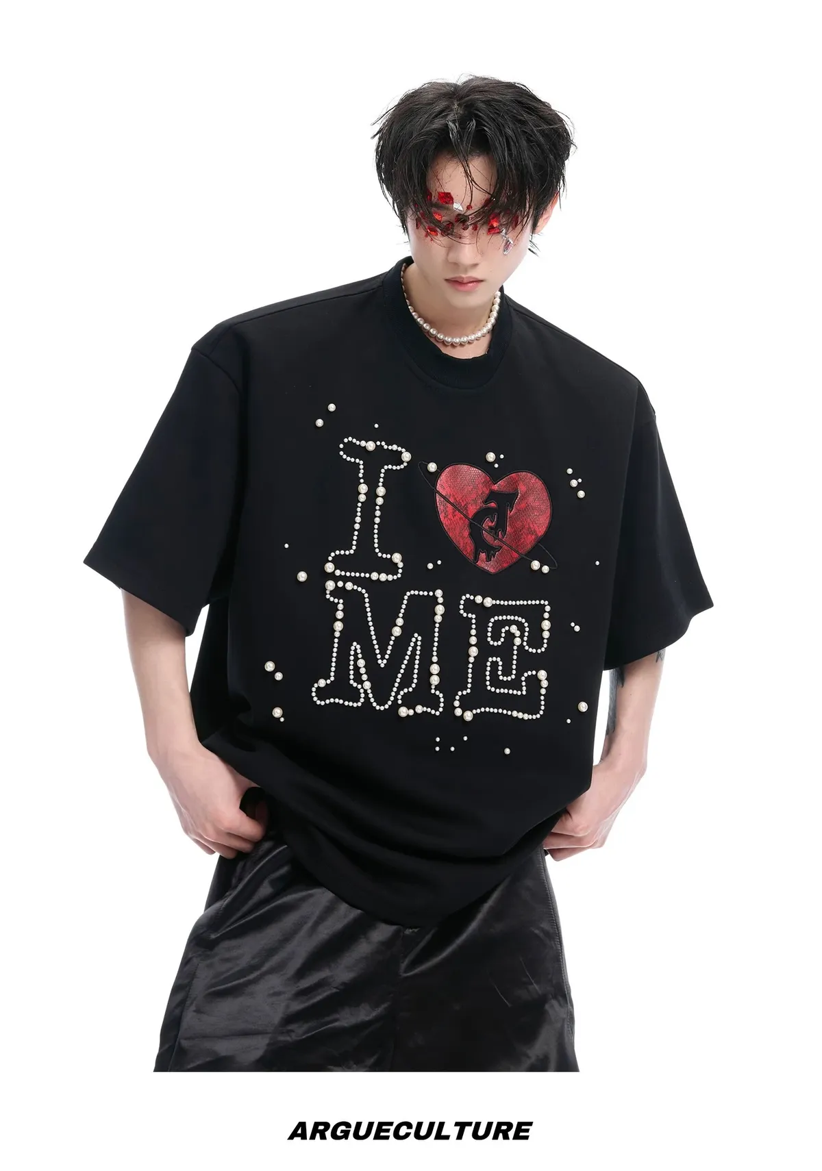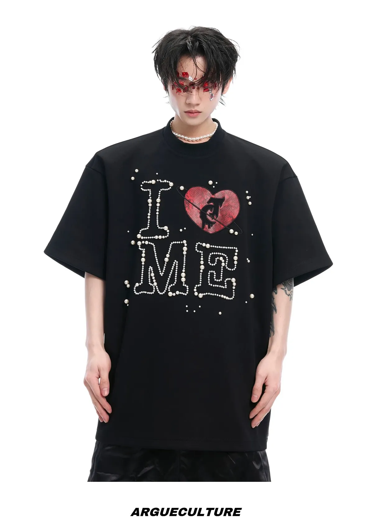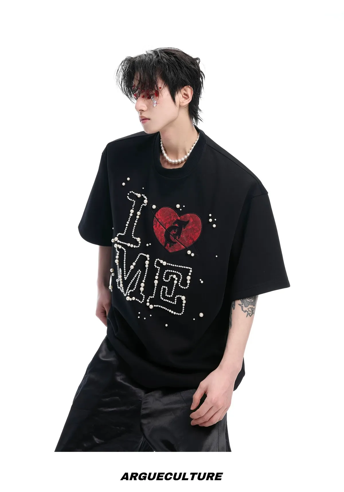 ARGUE 手縫珍珠 I LOVE ME 短袖(黑/白)
