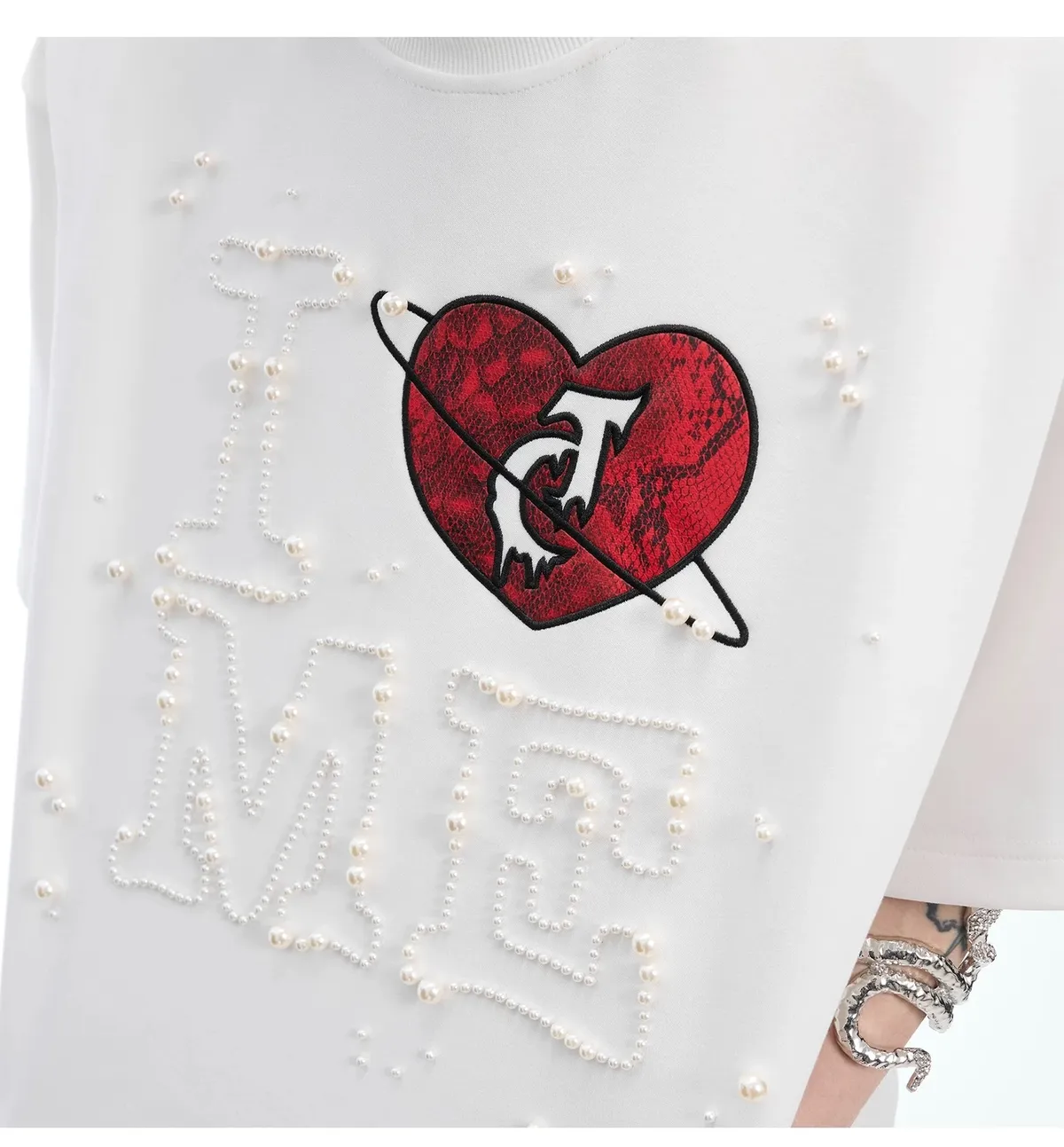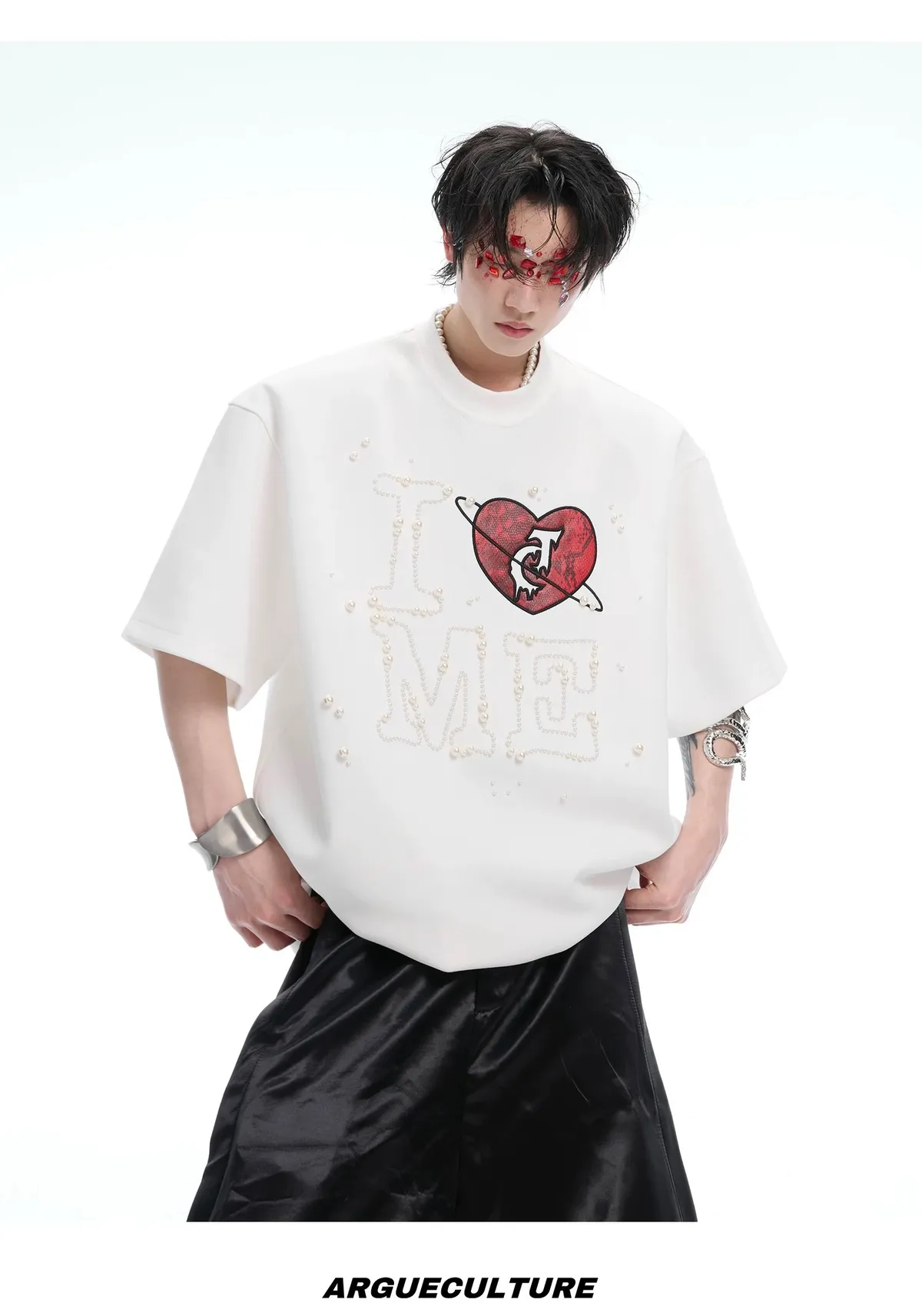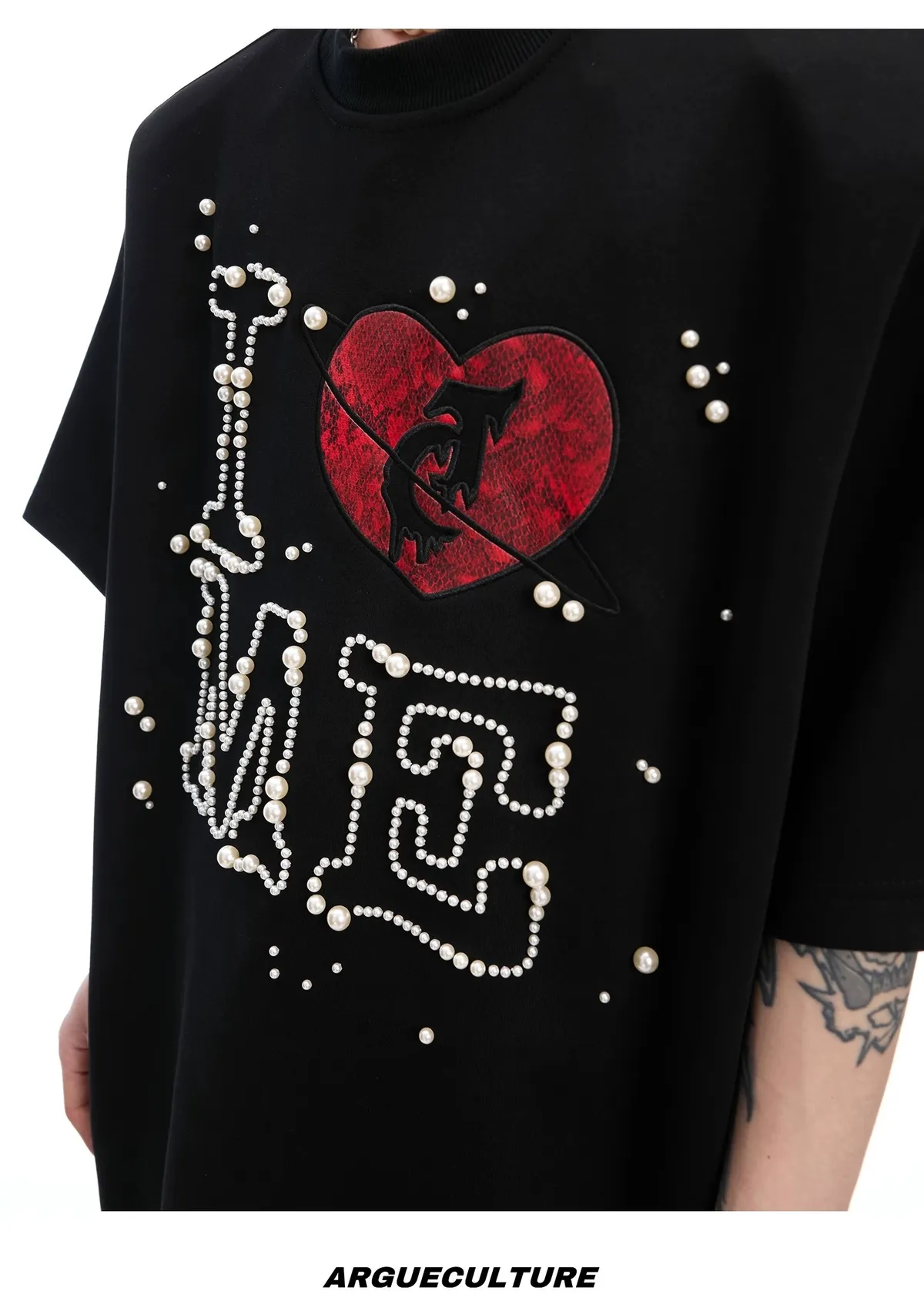 ARGUE 手縫珍珠 I LOVE ME 短袖(黑/白)