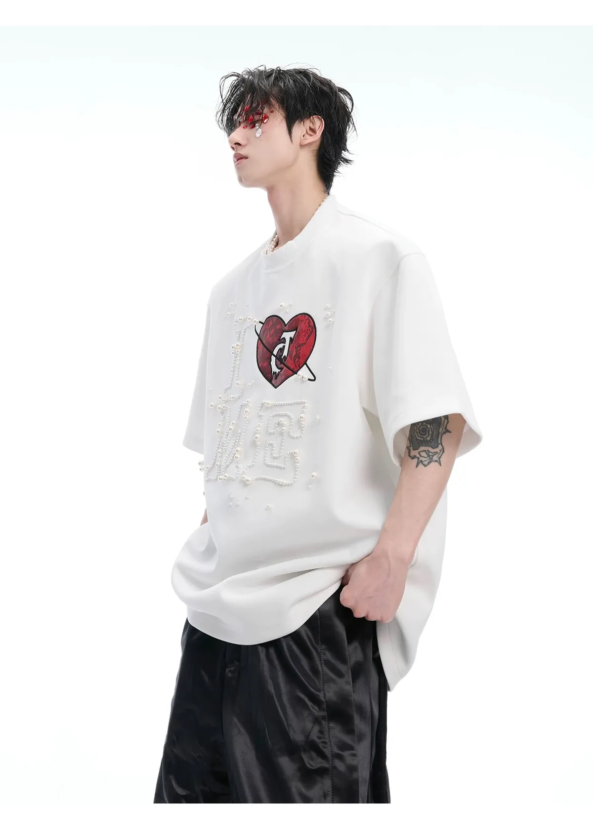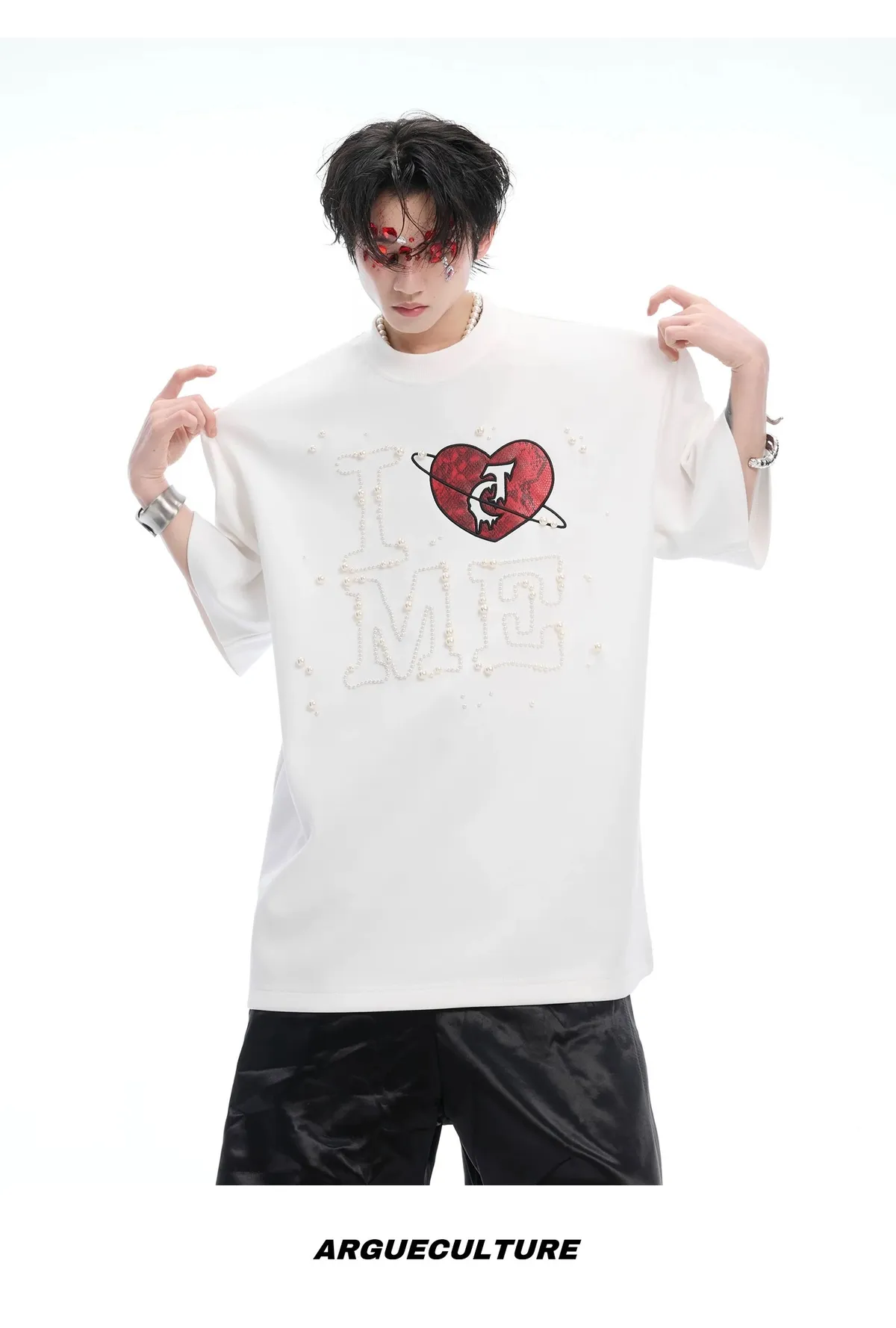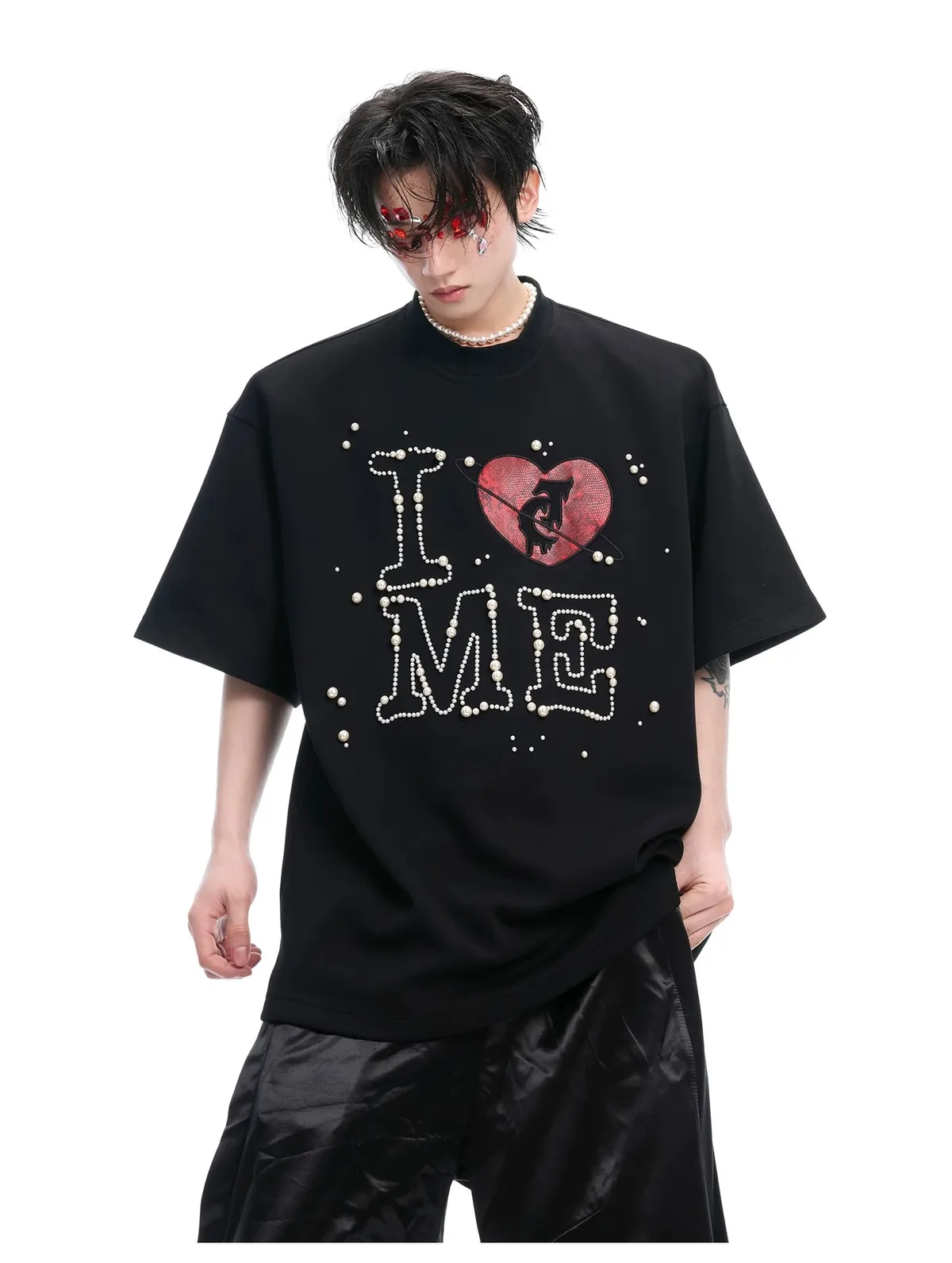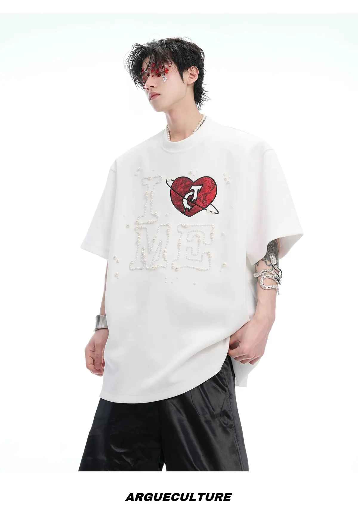 ARGUE 手縫珍珠 I LOVE ME 短袖(黑/白)