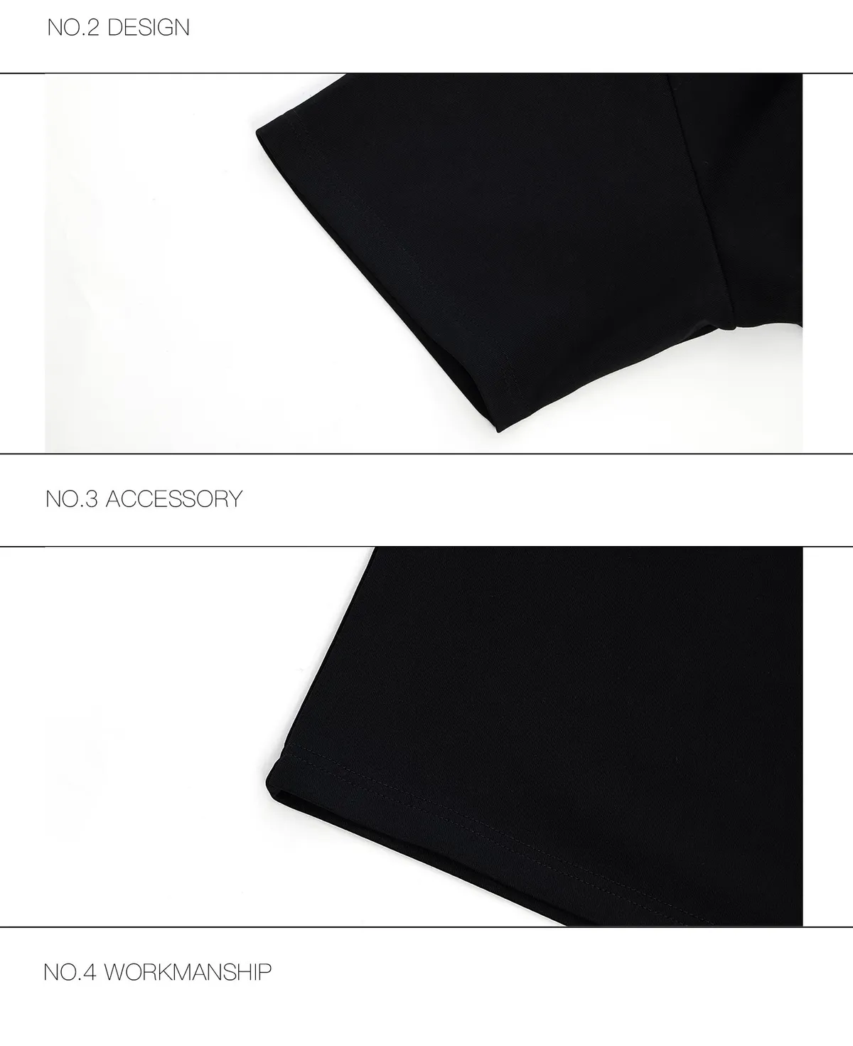 ARGUE 領帶拼接 純色 可拆墊肩 短袖(黑/白)