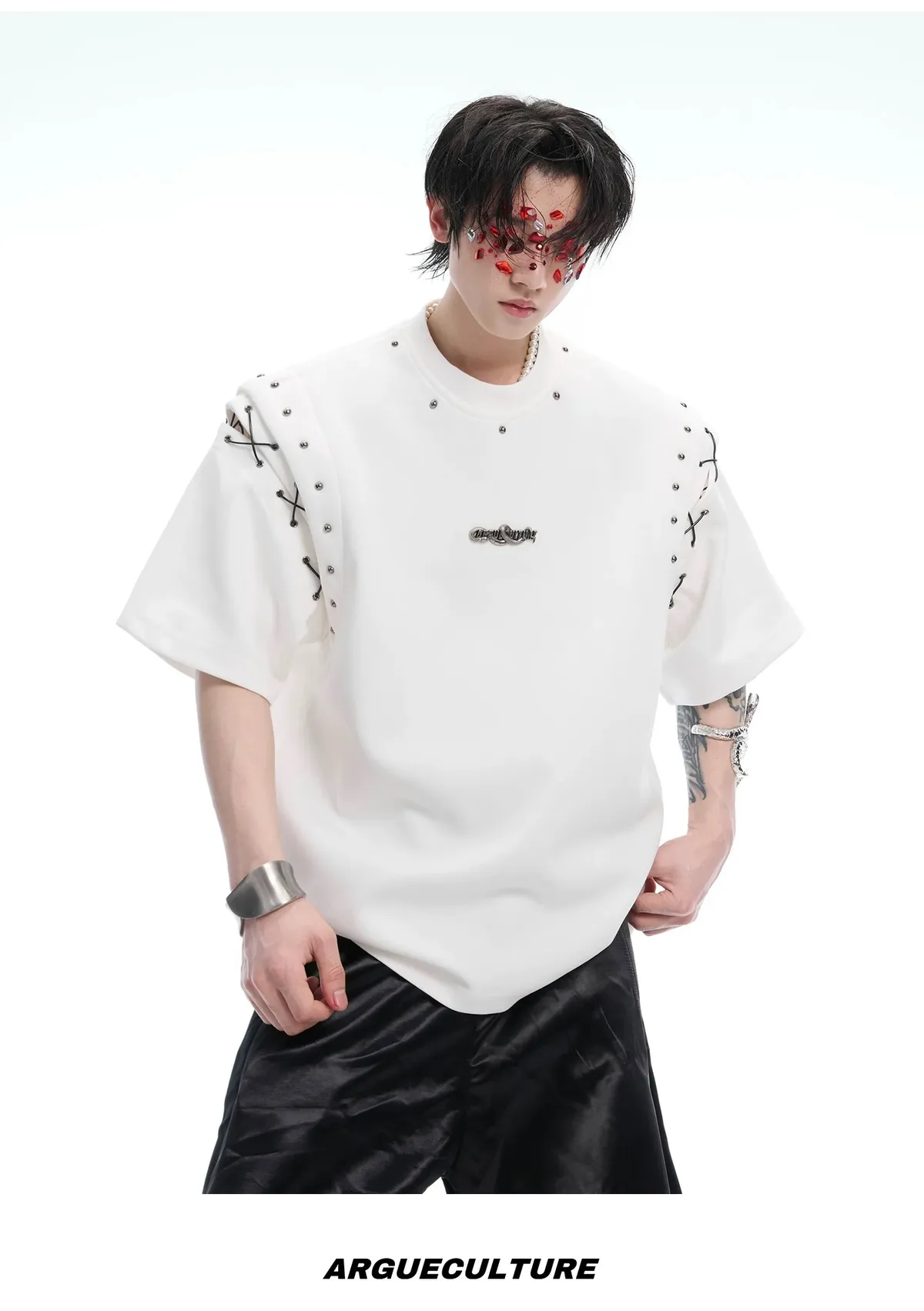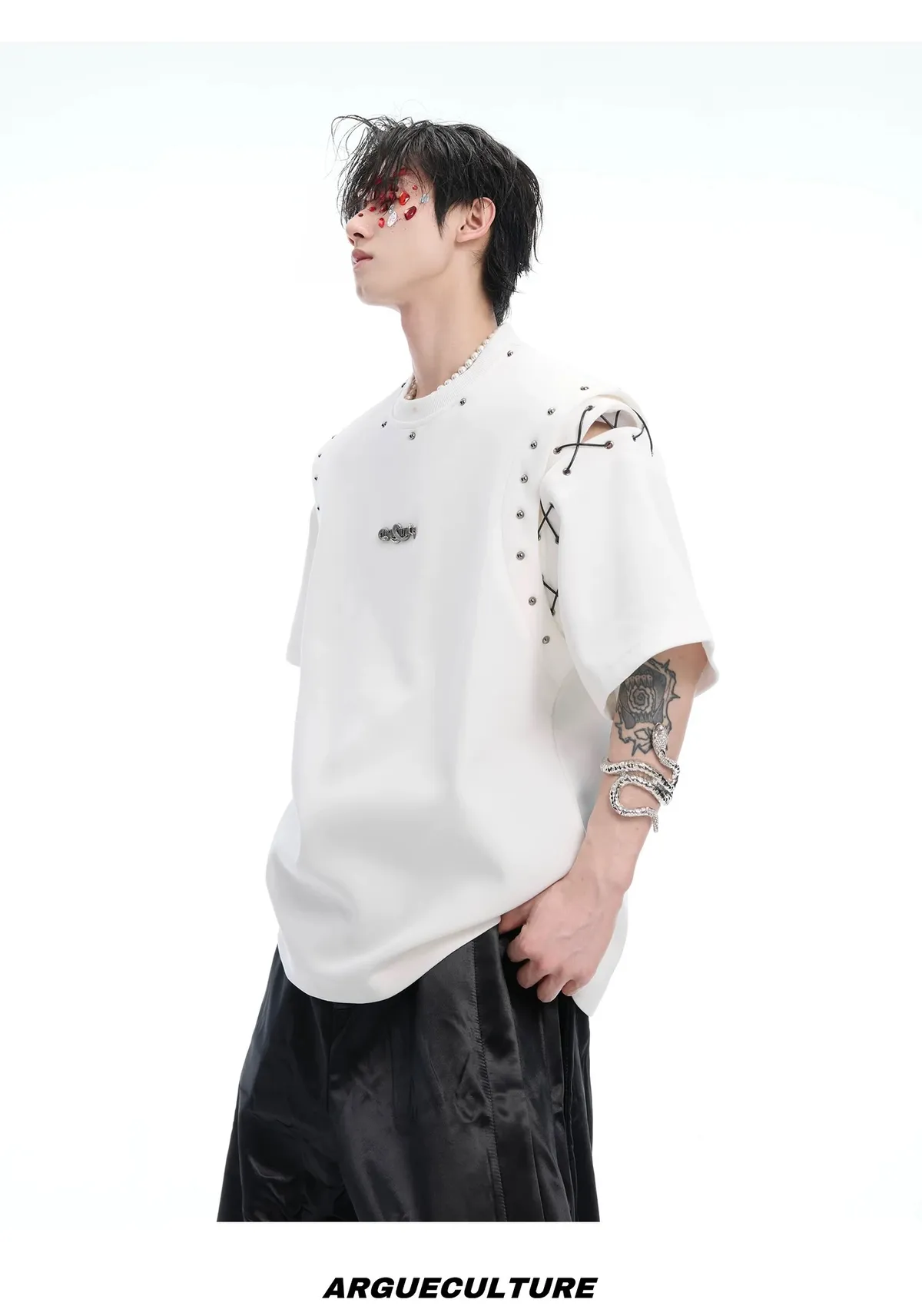 ARGUE 綁帶纏繞 雙層 鏤空 短袖(黑/白)