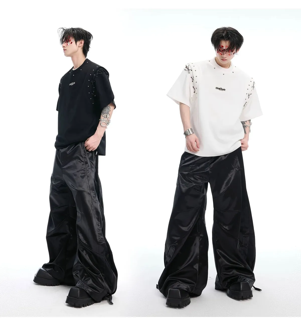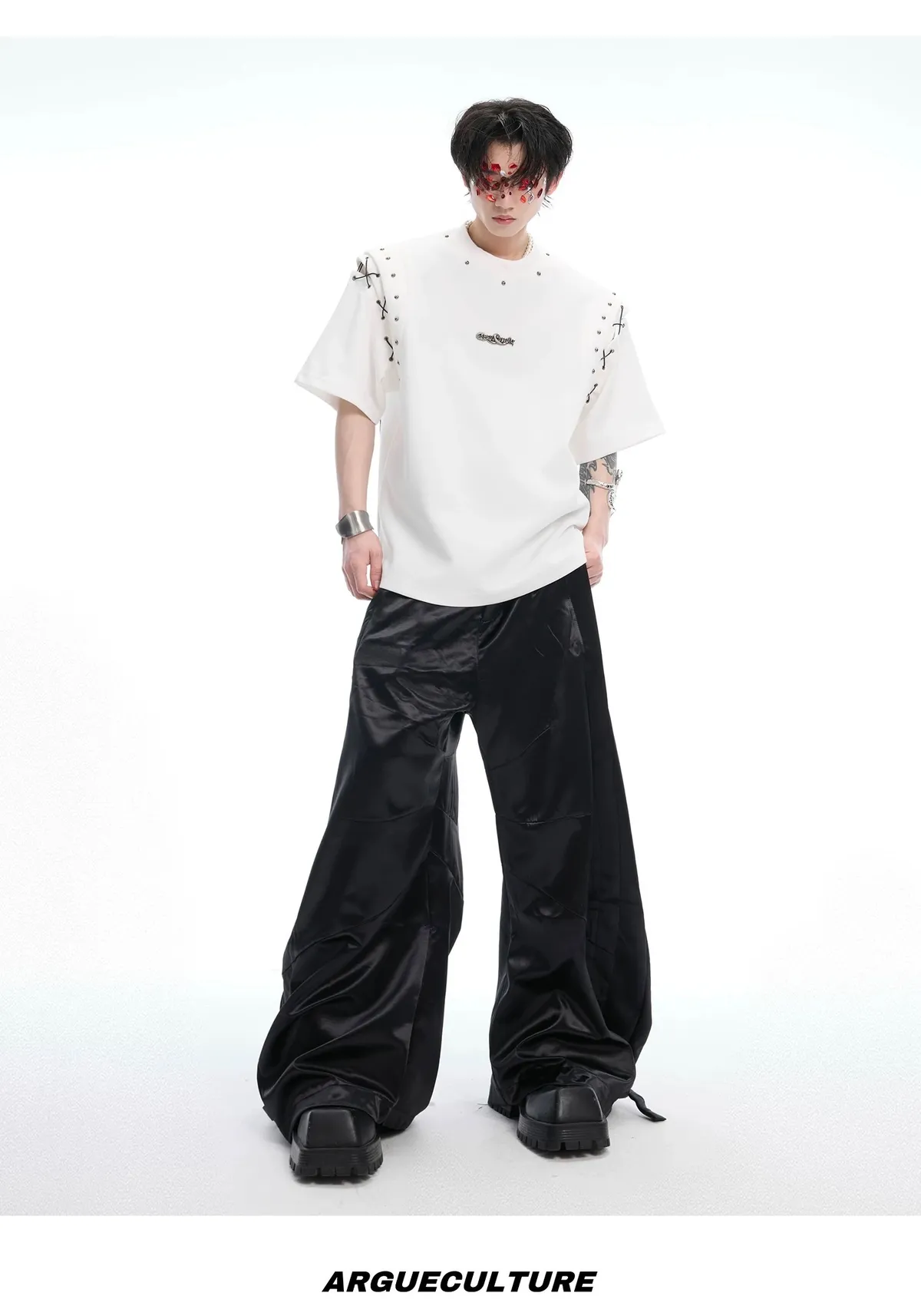 ARGUE 漸層做舊 分割 壓褶 短袖(黑/灰)