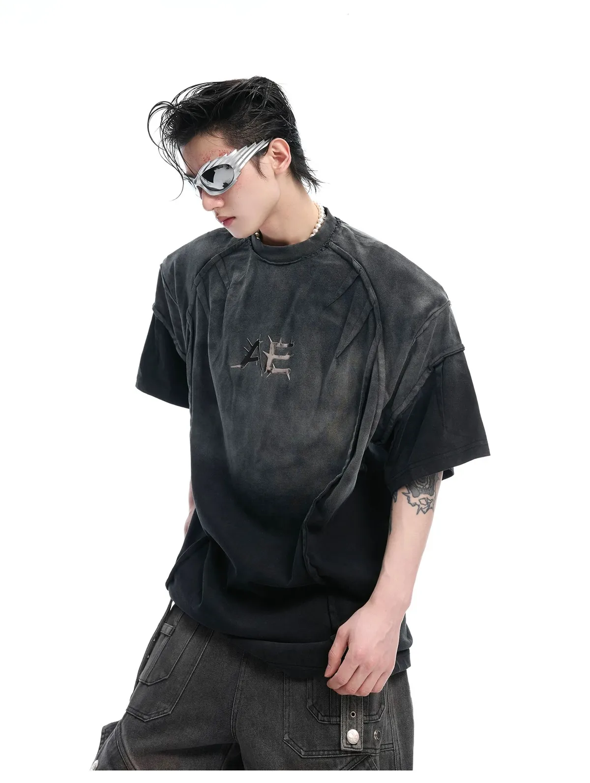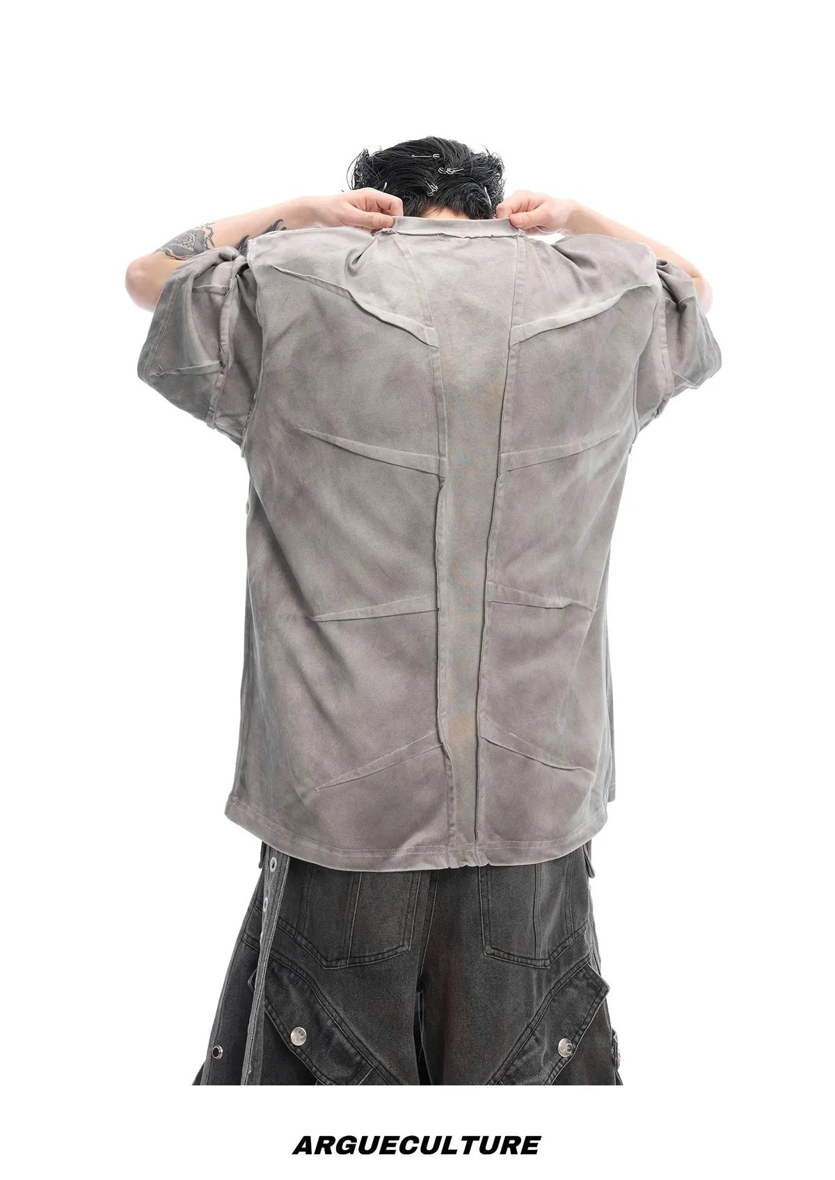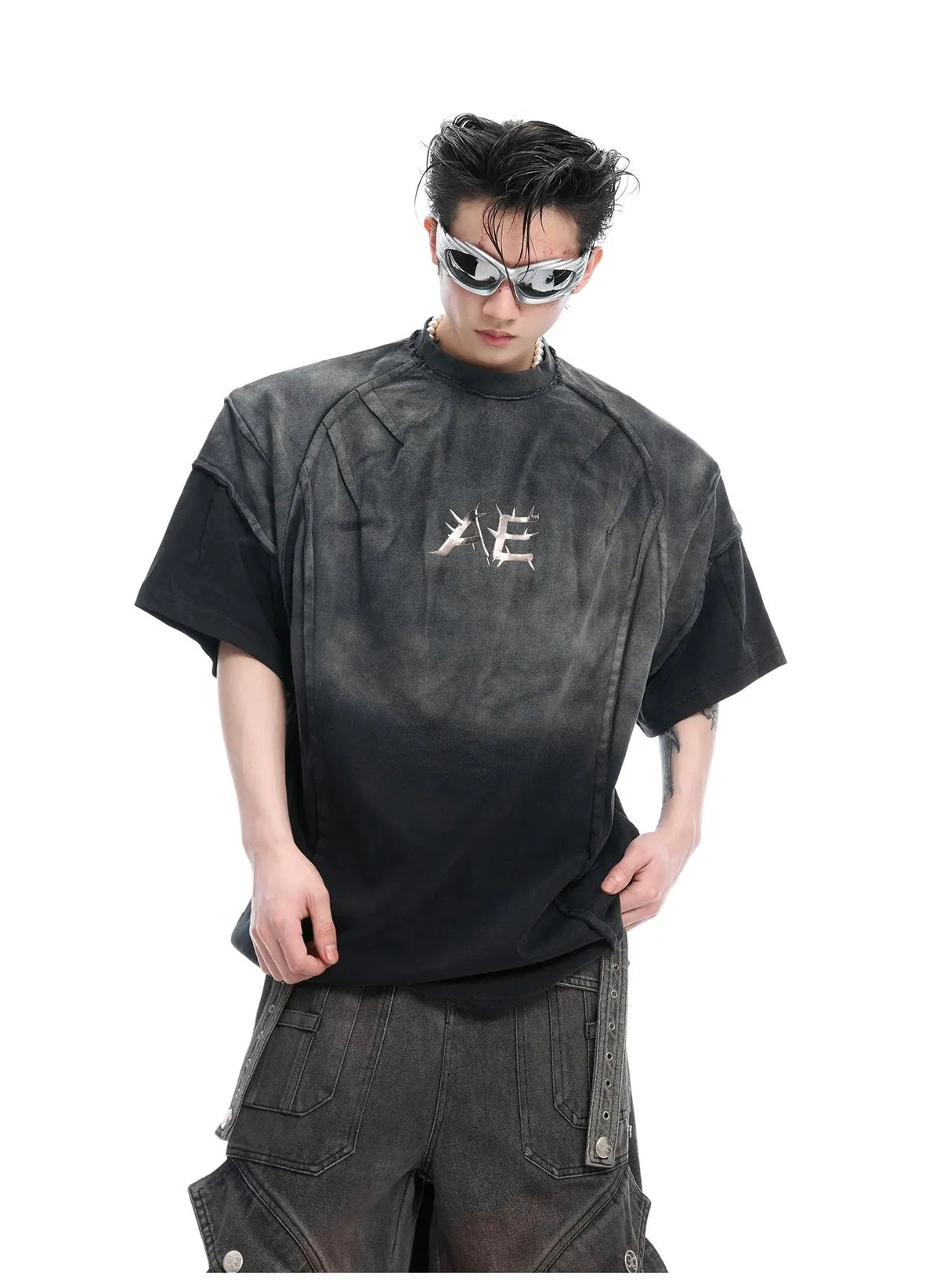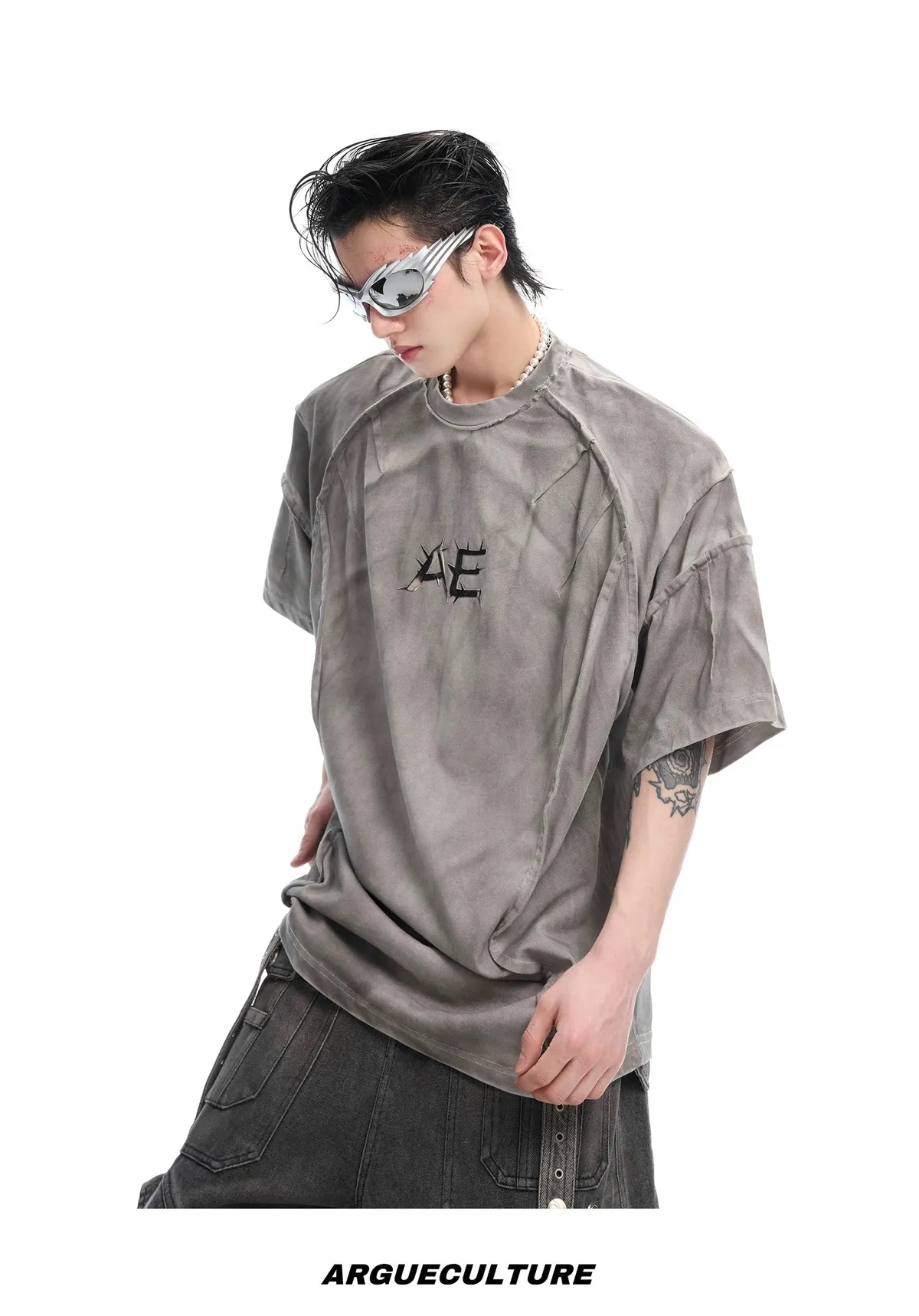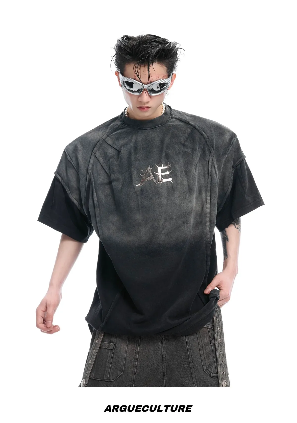 ARGUE 漸層做舊 分割 壓褶 短袖(黑/灰)