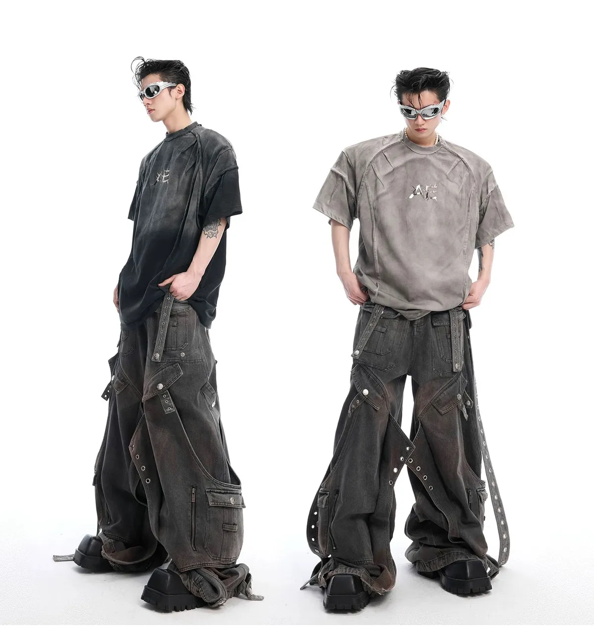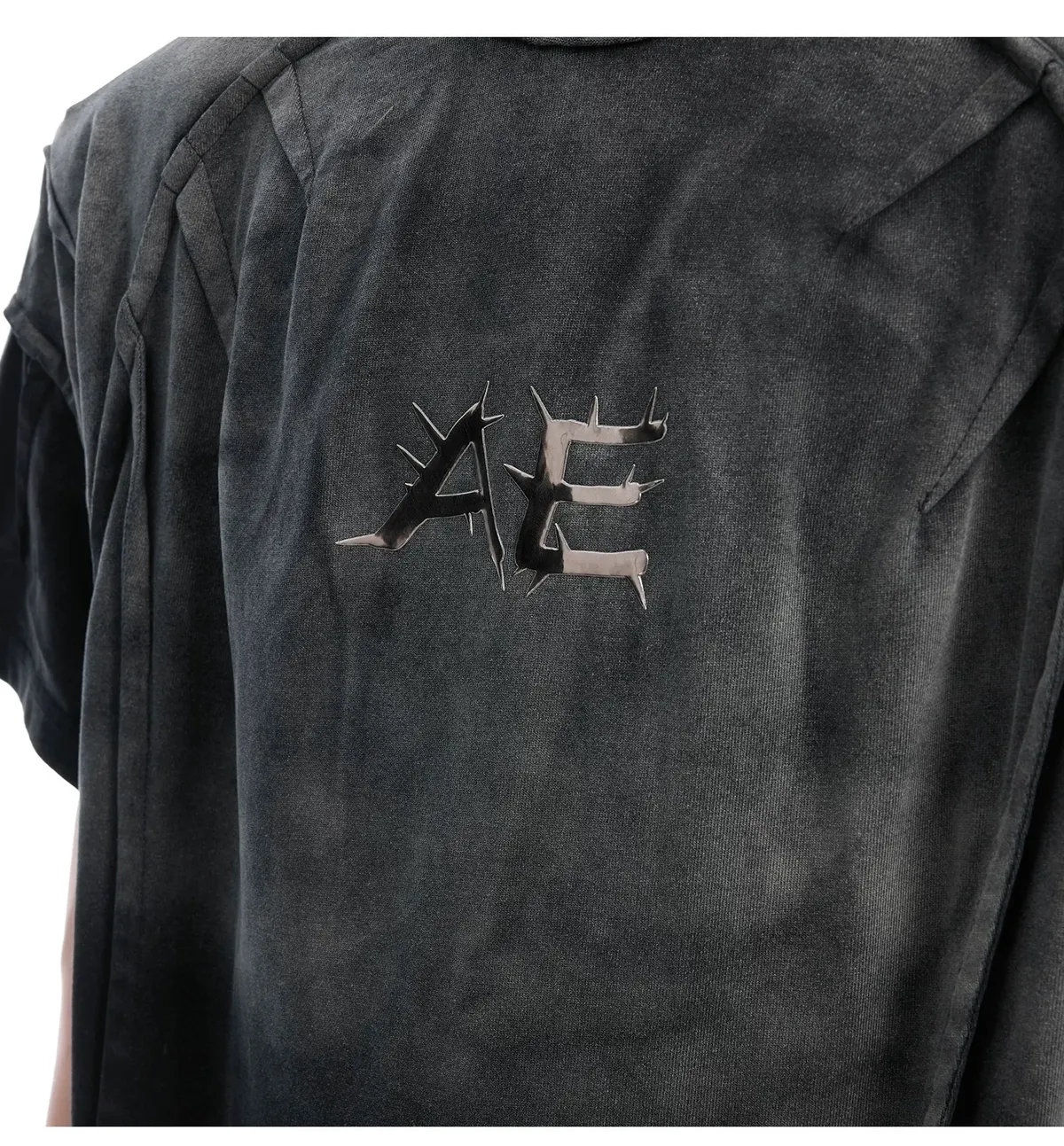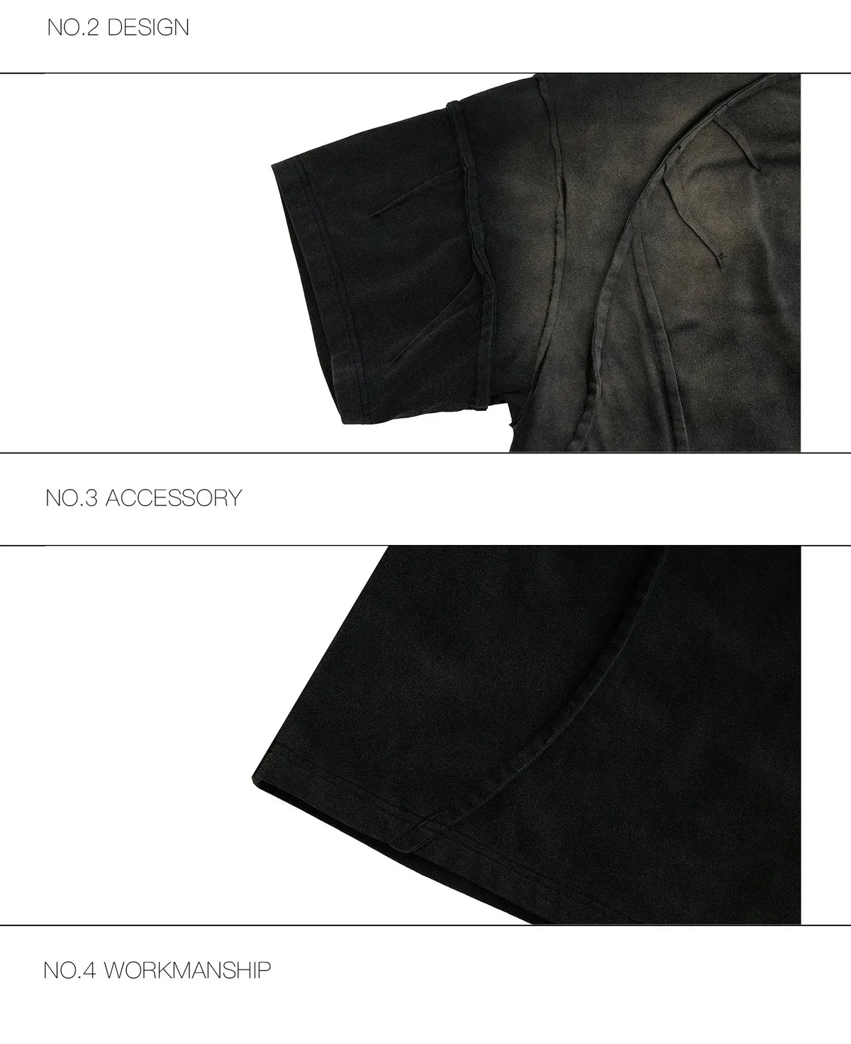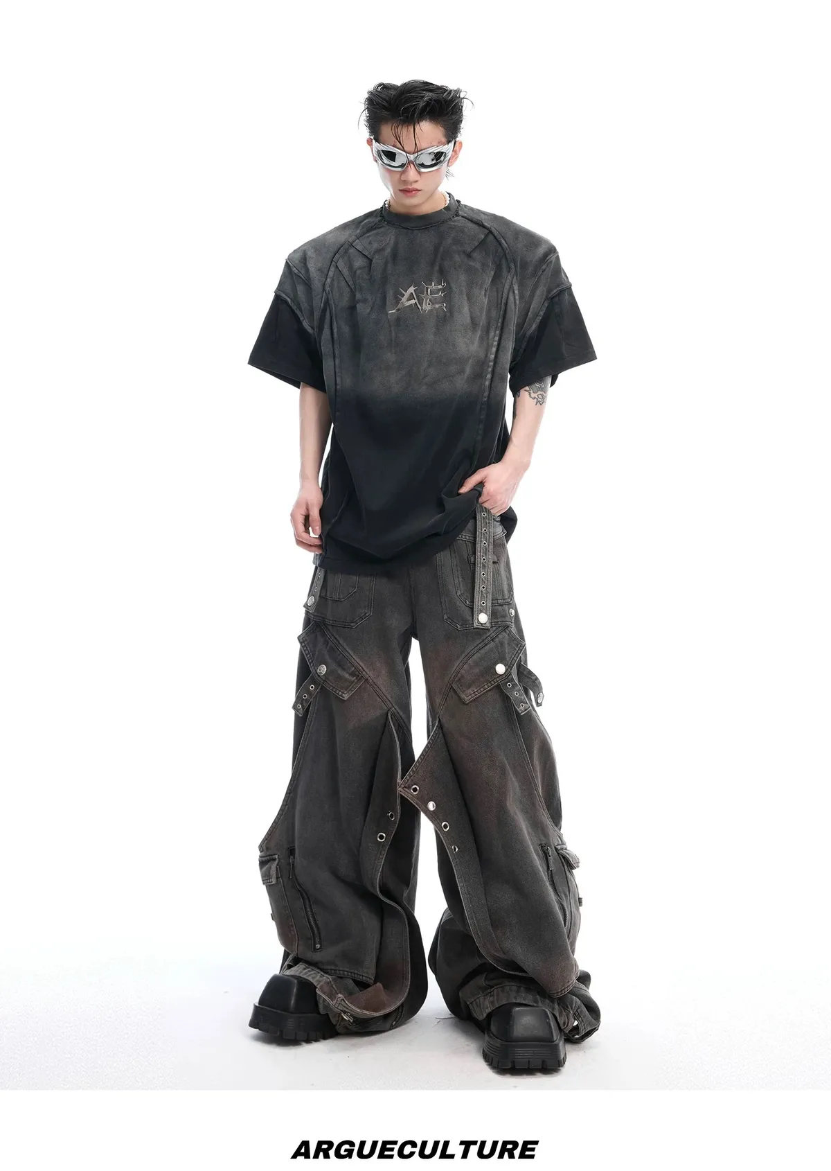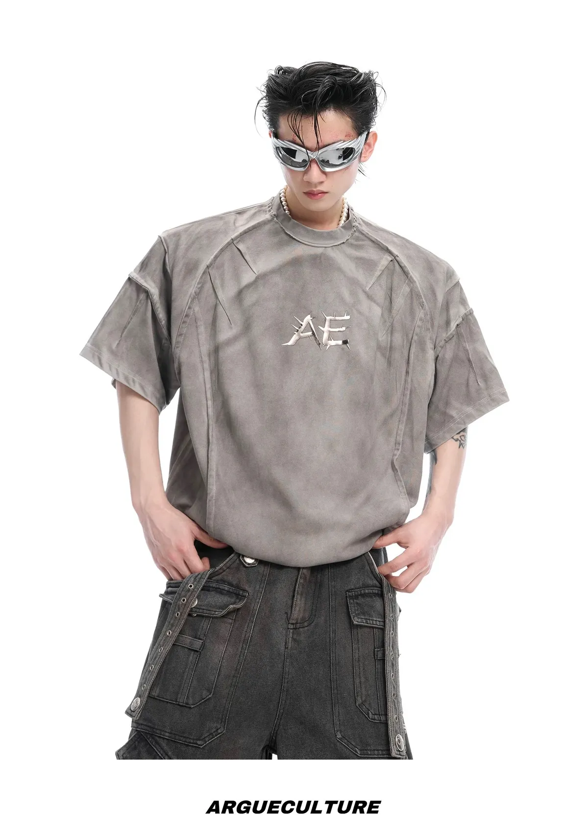 ARGUE 漸層做舊 分割 壓褶 短袖(黑/灰)