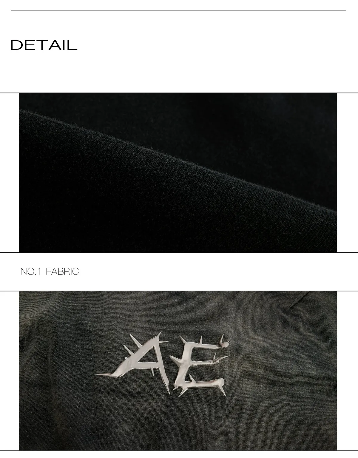 ARGUE 設計感 多重飄帶 金屬標 帽踢 棉褲 套裝(黑/灰)