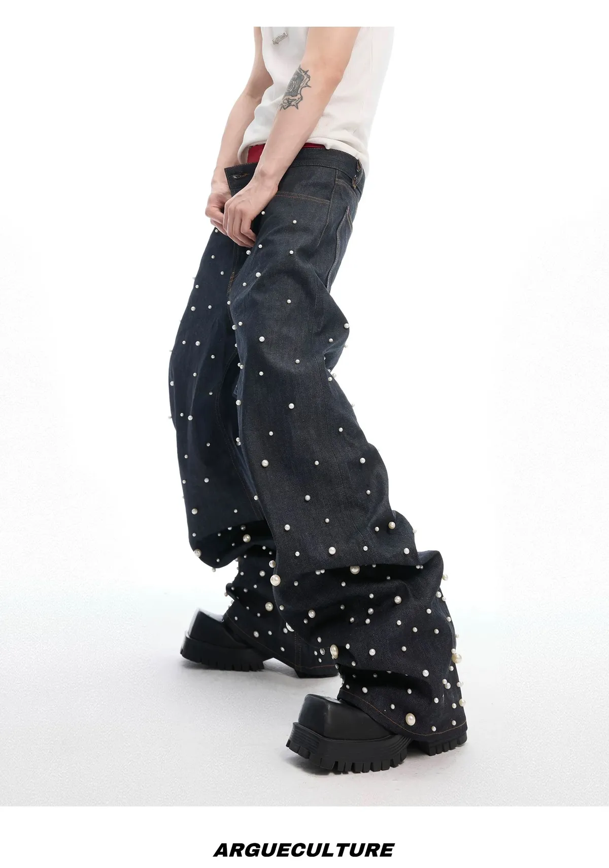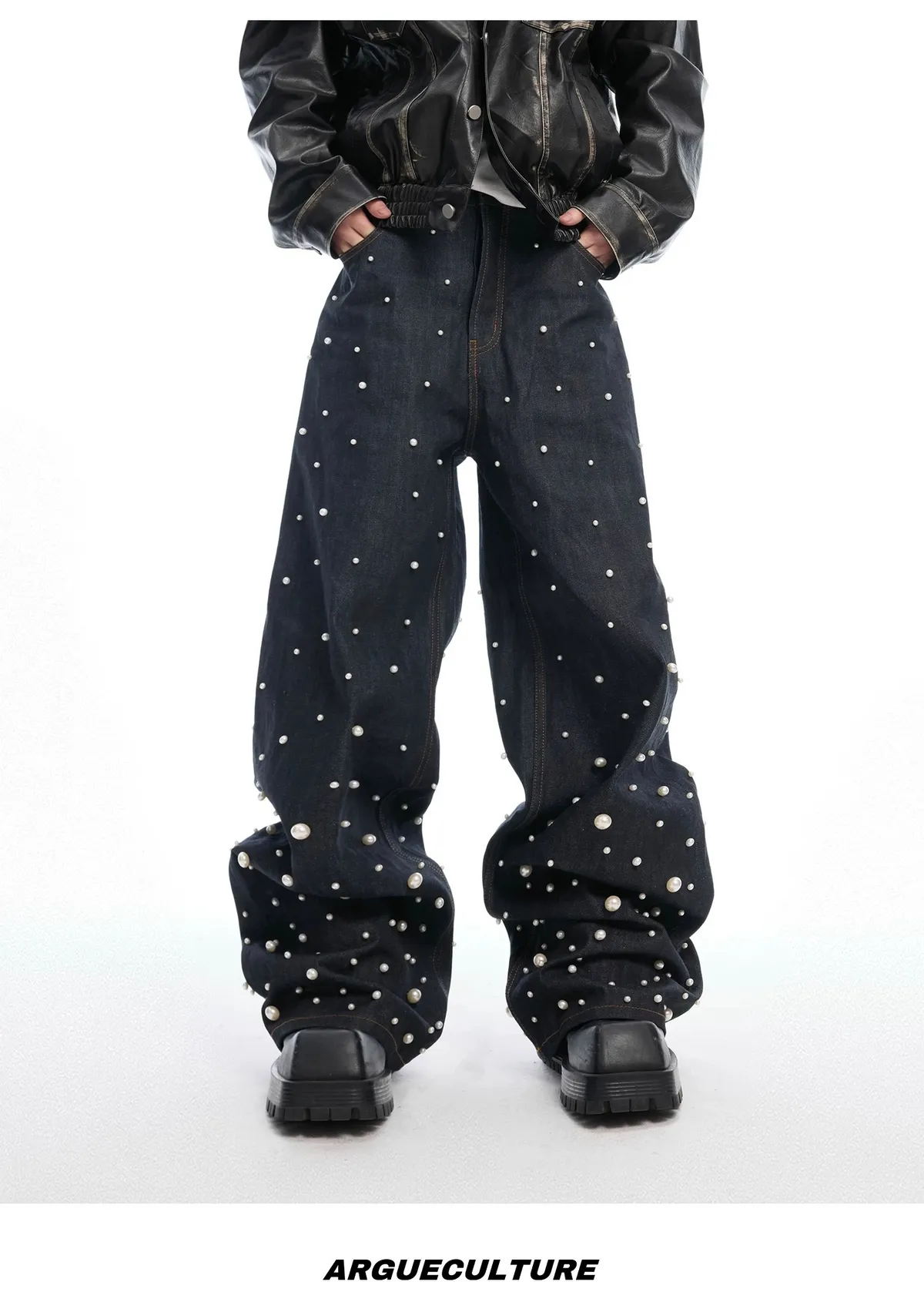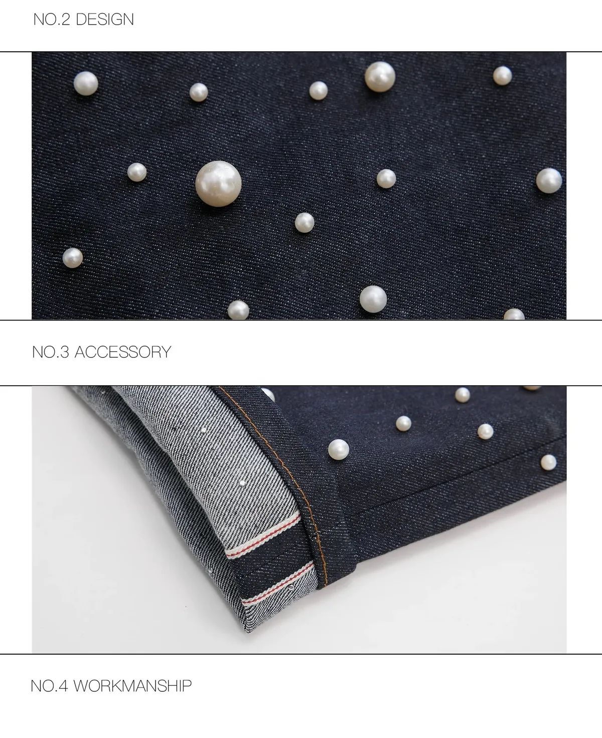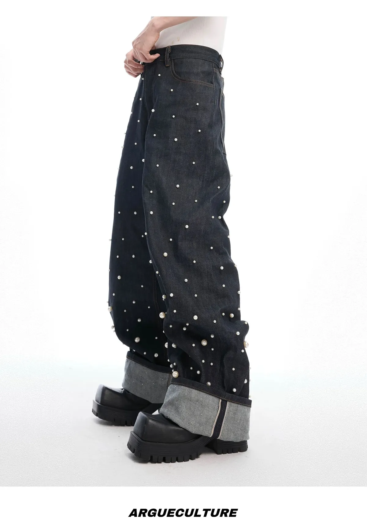 ARGUE 手縫珍珠 13.5盎司 原牛 牛仔褲(深藍)