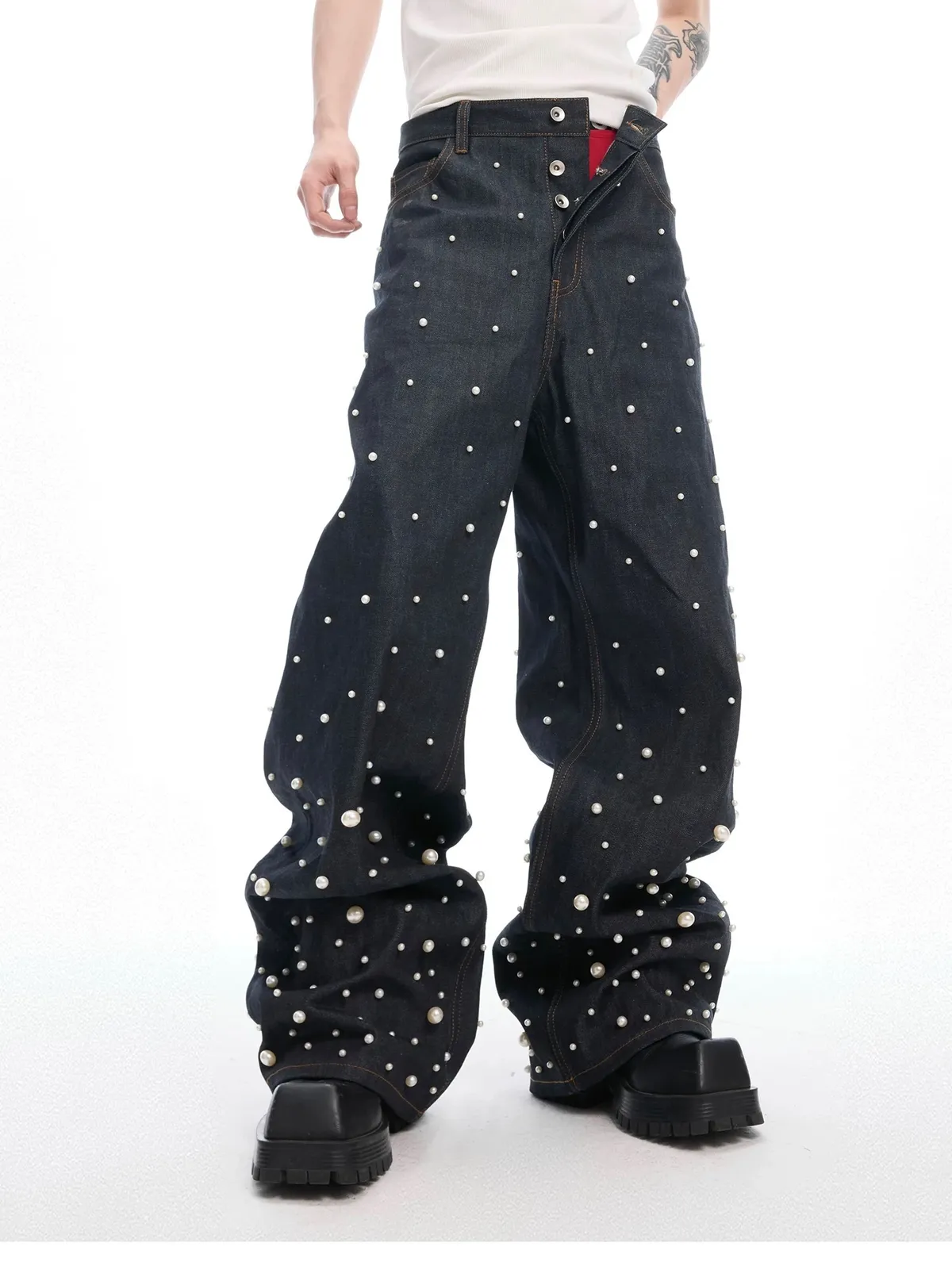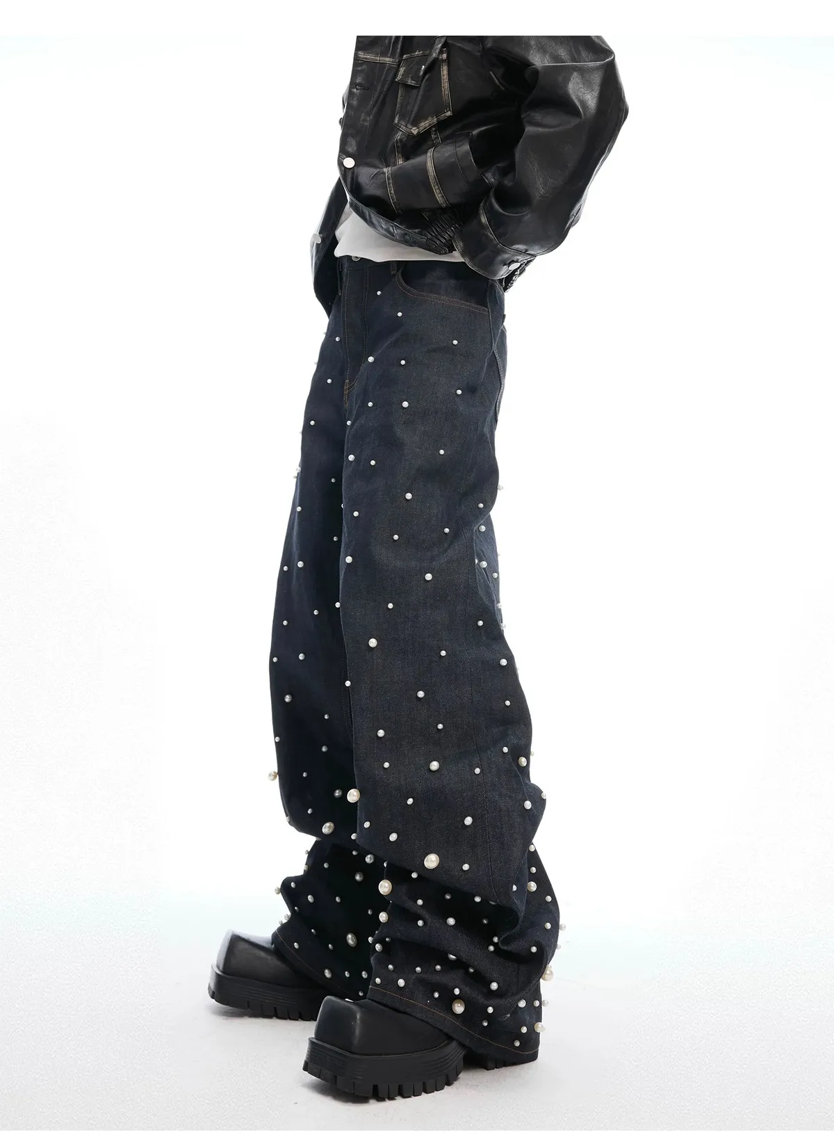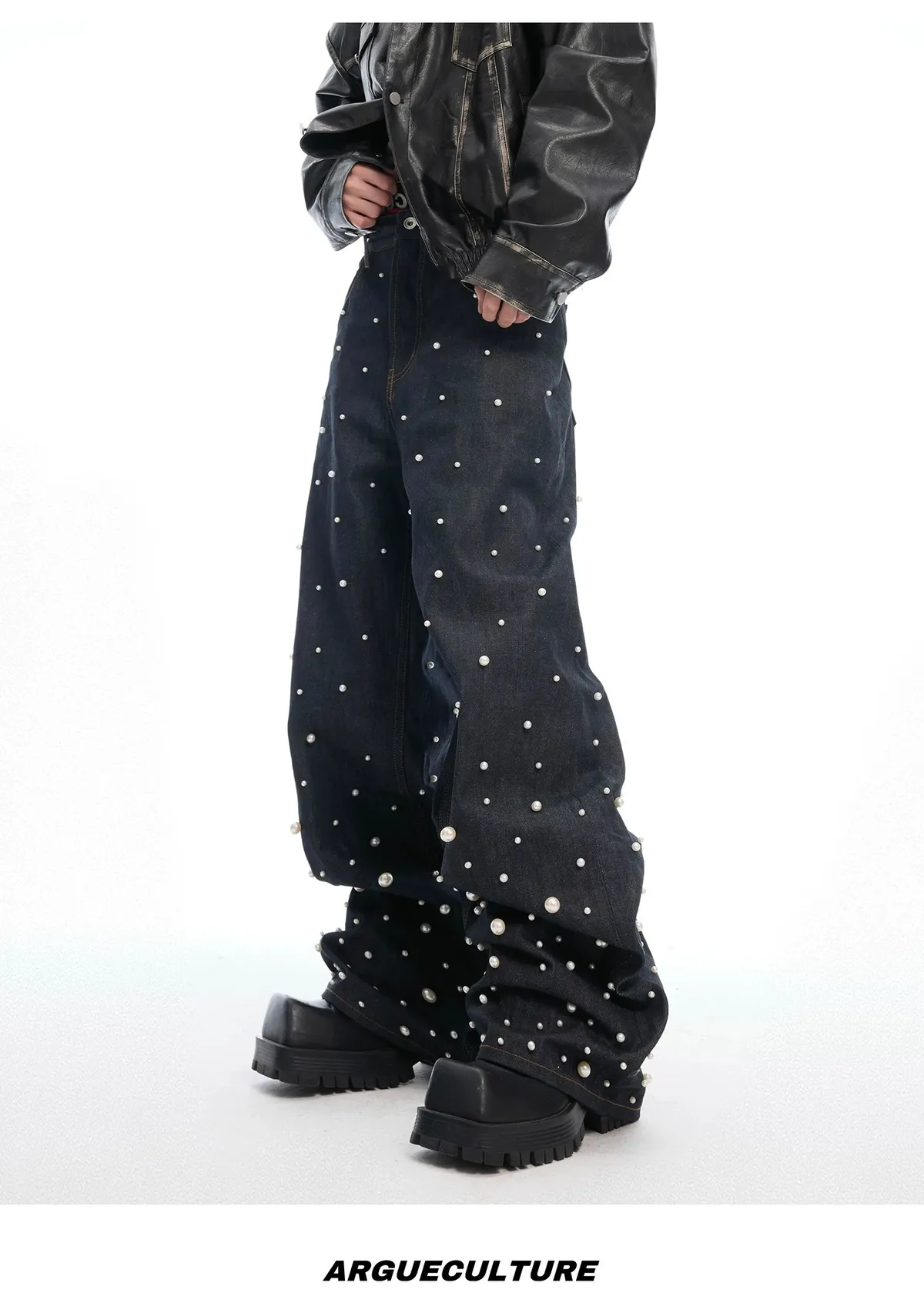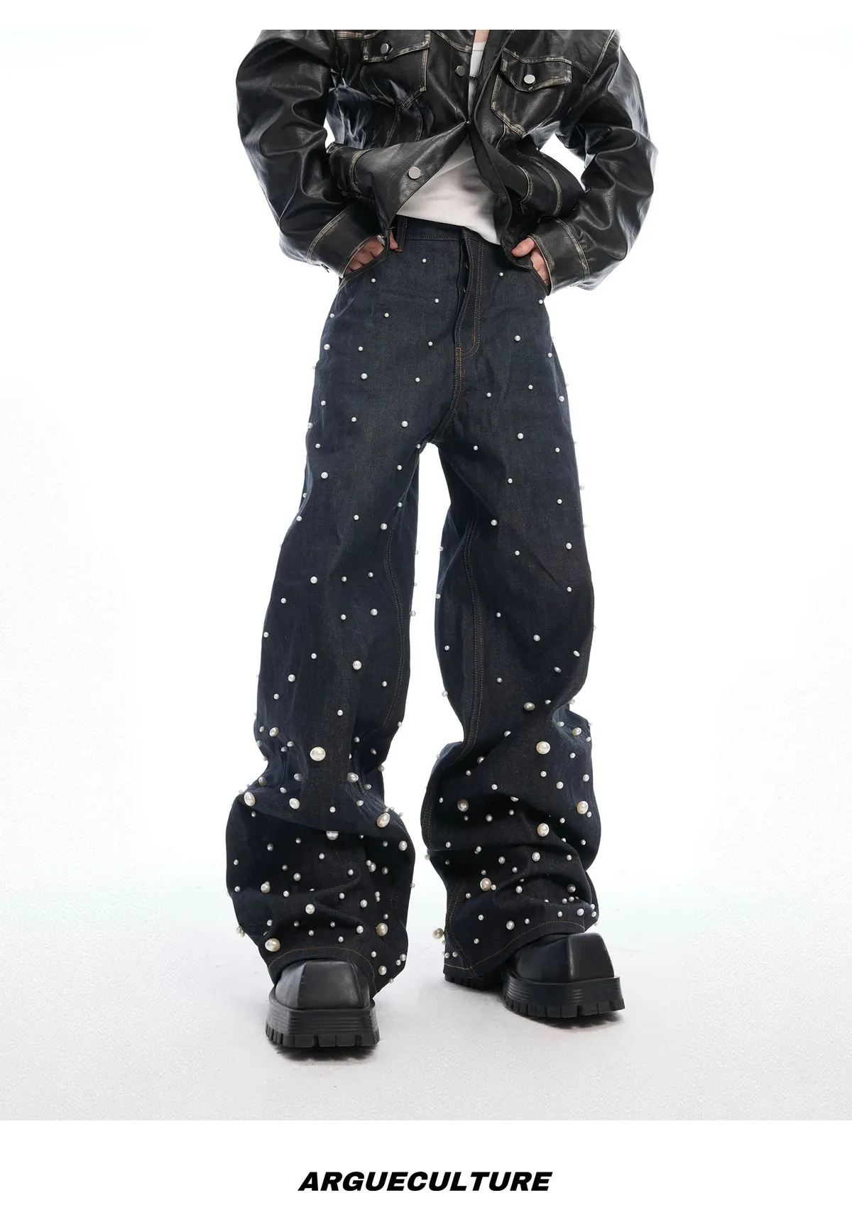 ARGUE 手縫珍珠 13.5盎司 原牛 牛仔褲(深藍)