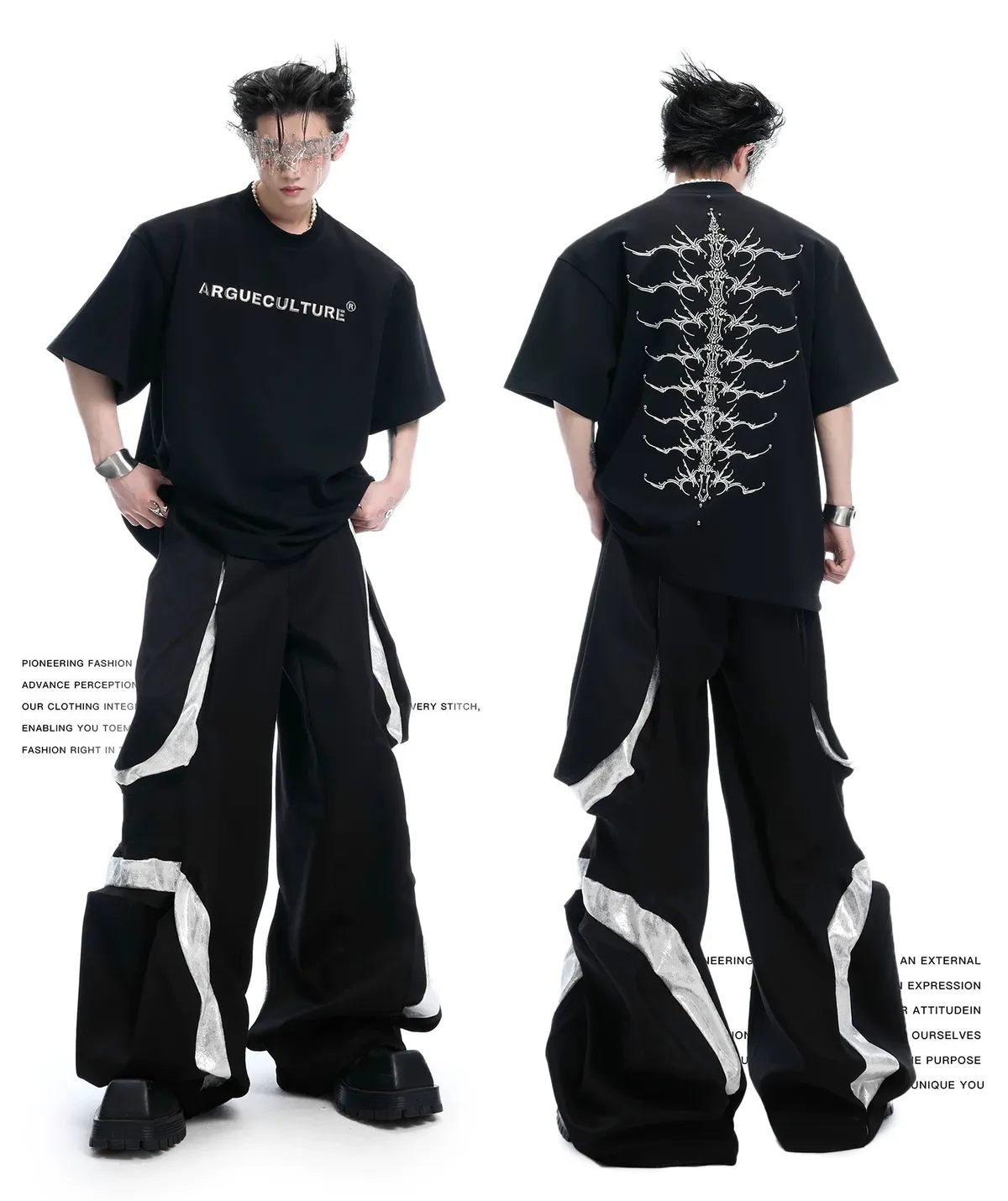 ARGUE 漸層做舊 分割 壓褶 短袖(黑/灰)