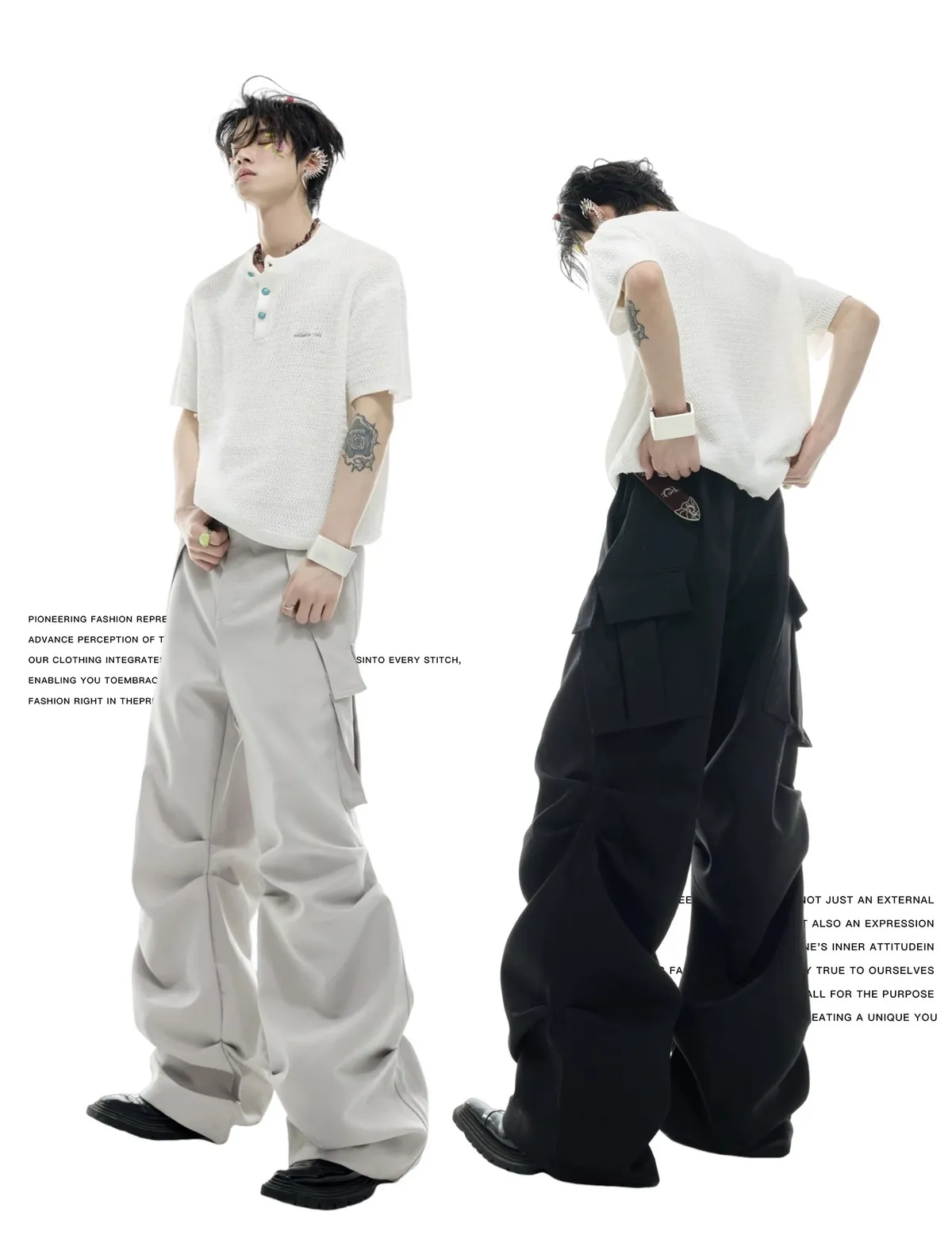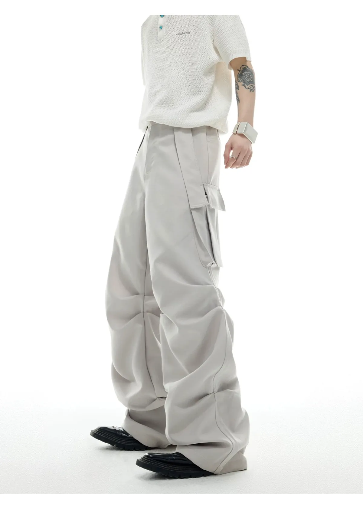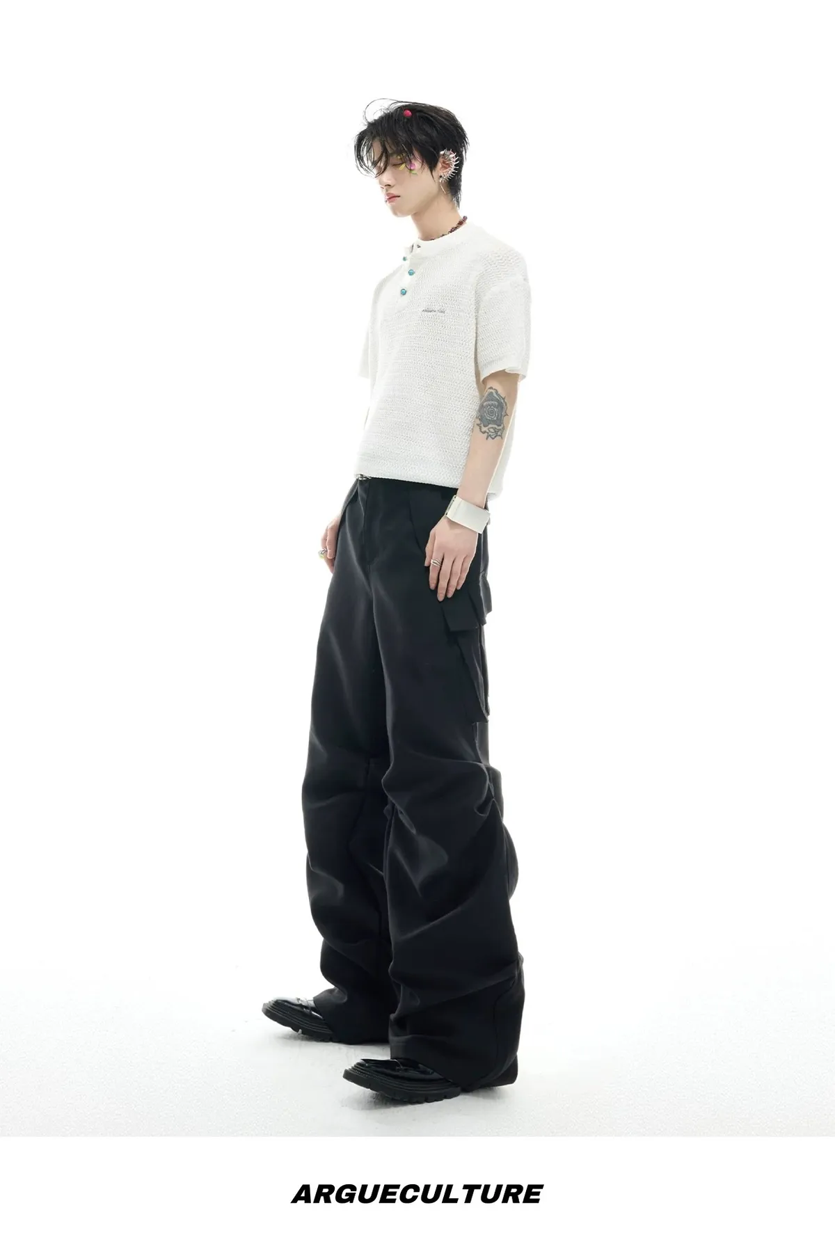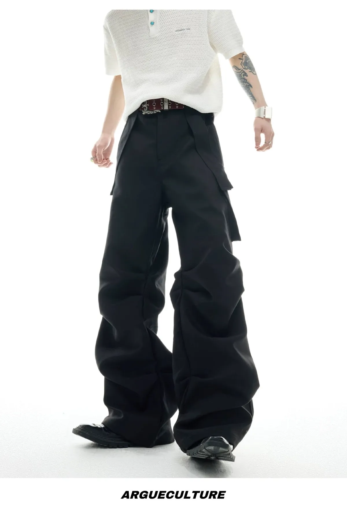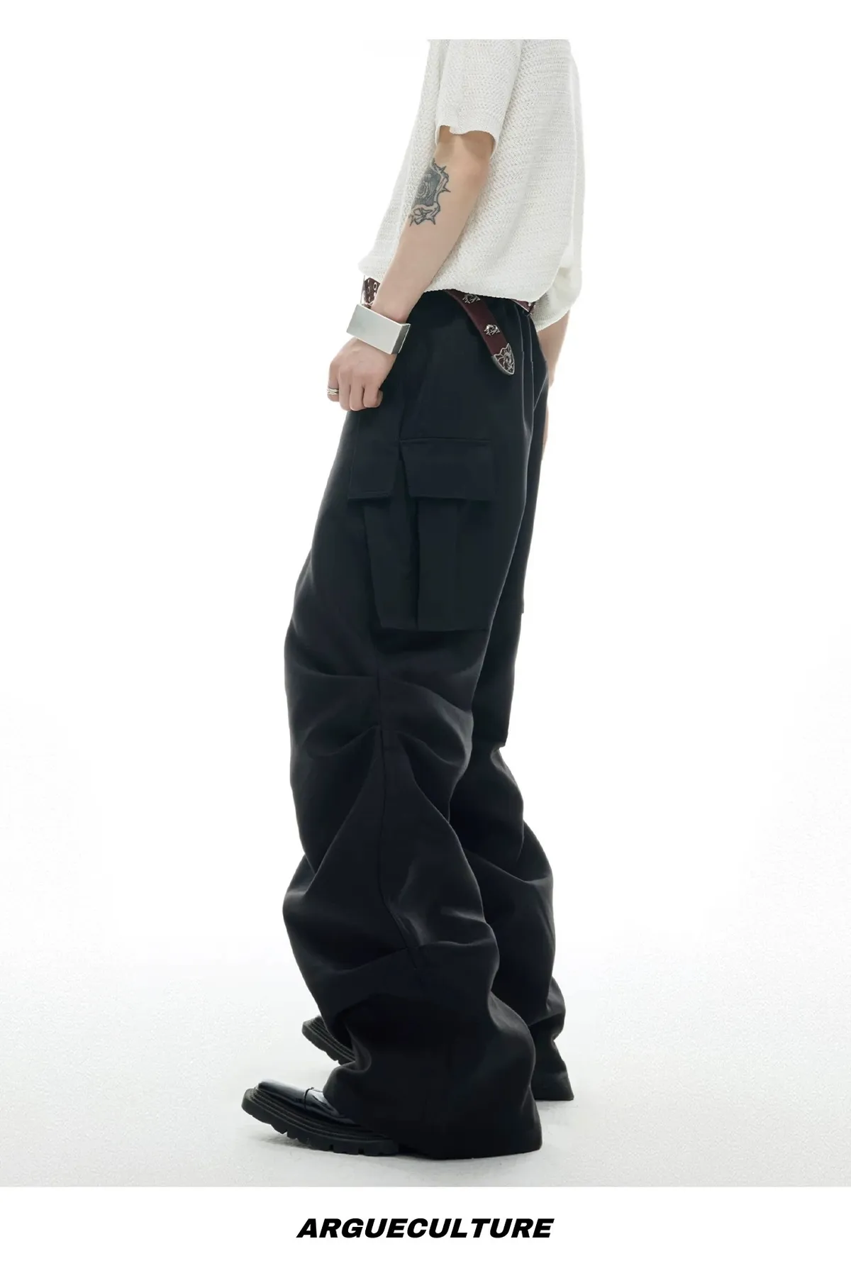 [LAX STUDIO] ARGUE 皺褶立體 口袋 工裝褲 長褲(黑/灰)