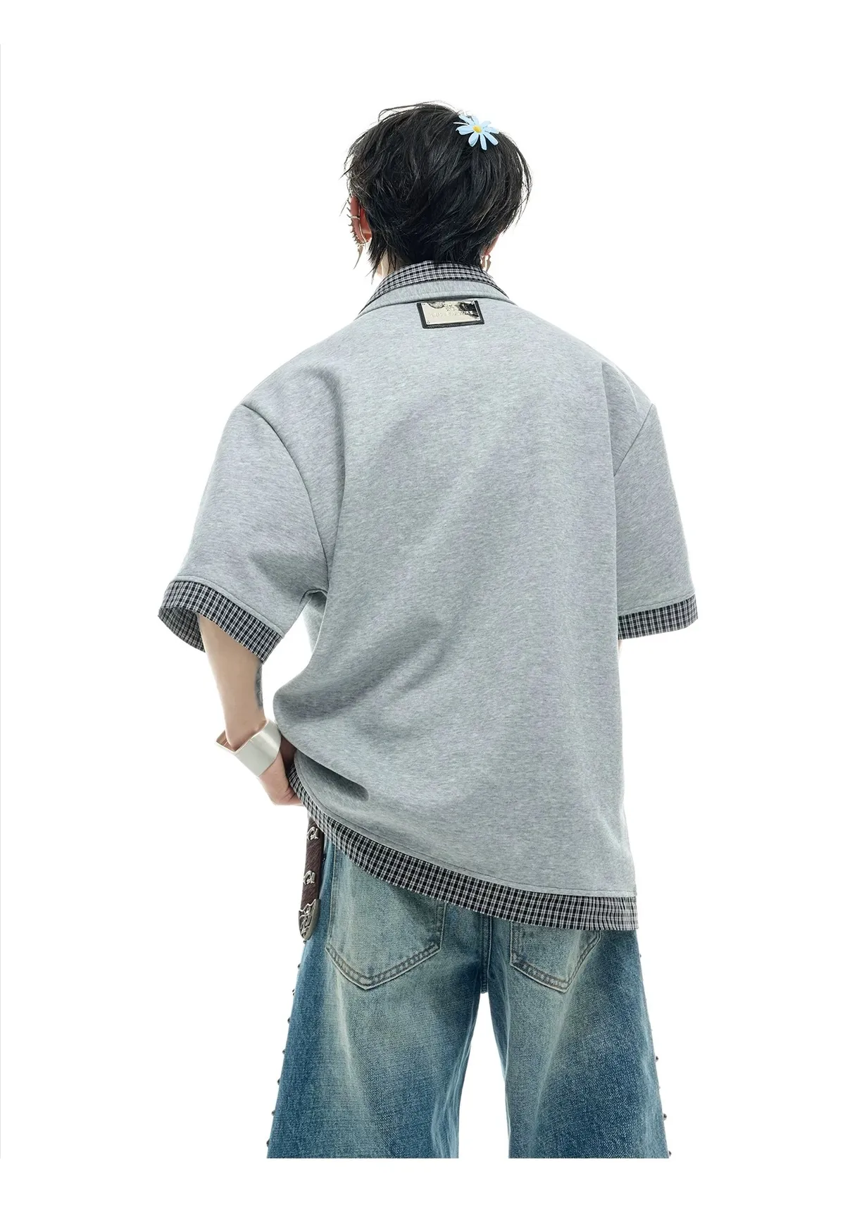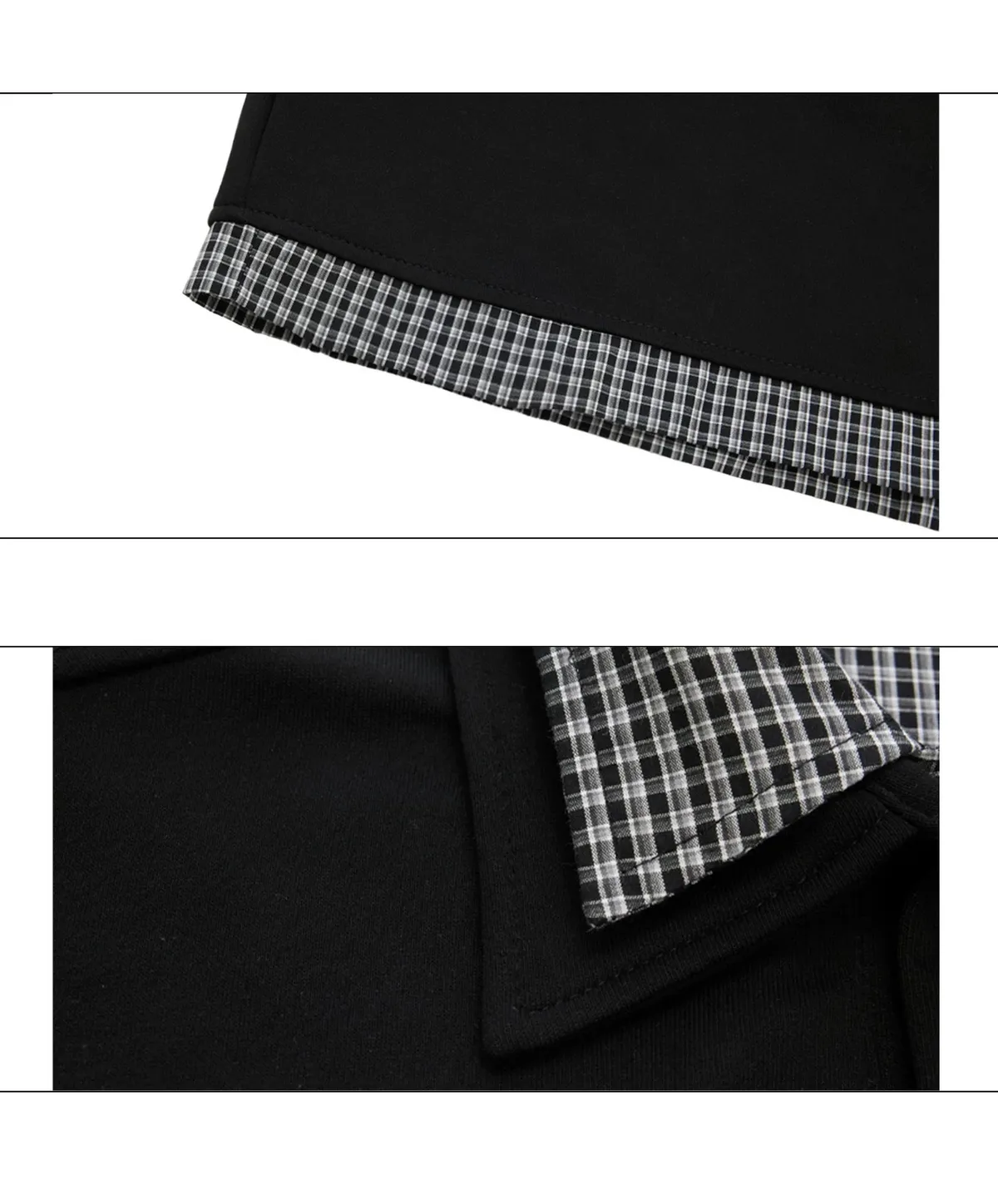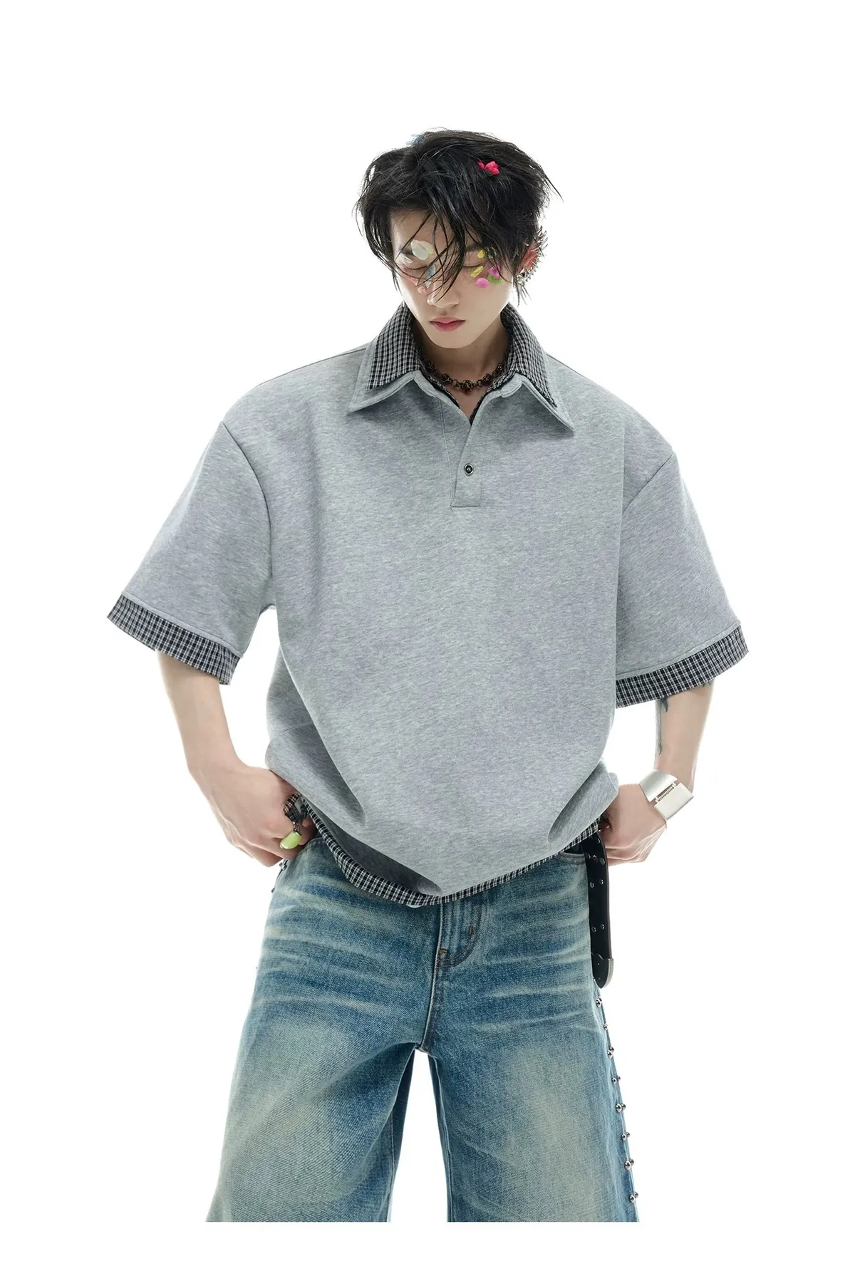ARGUE 復古假兩件 格紋 POLO 短袖(黑/灰)