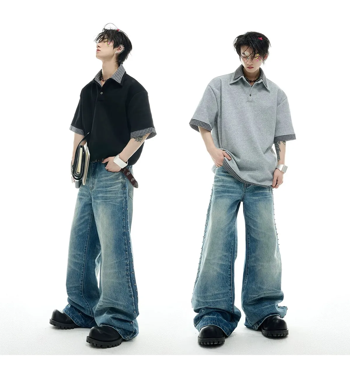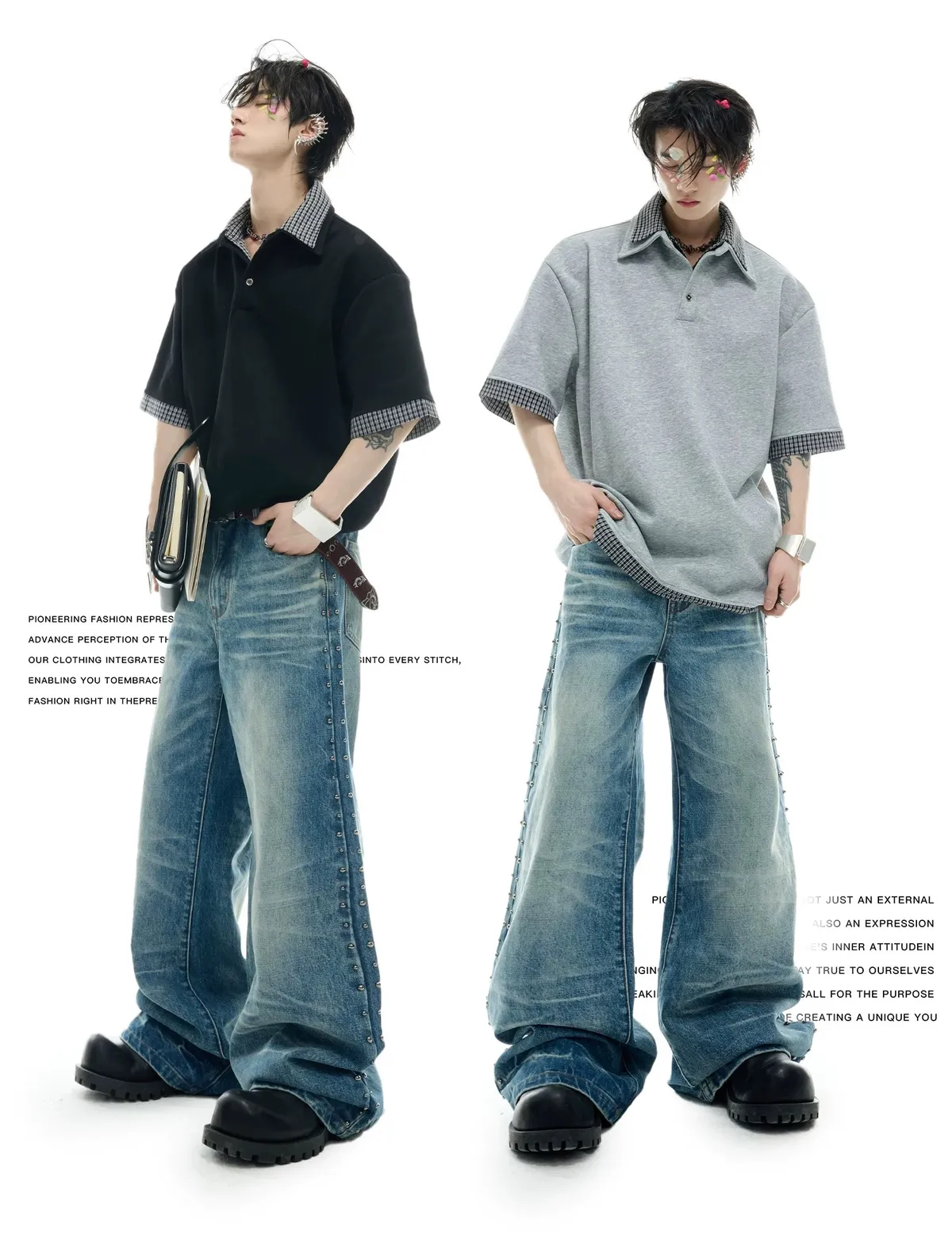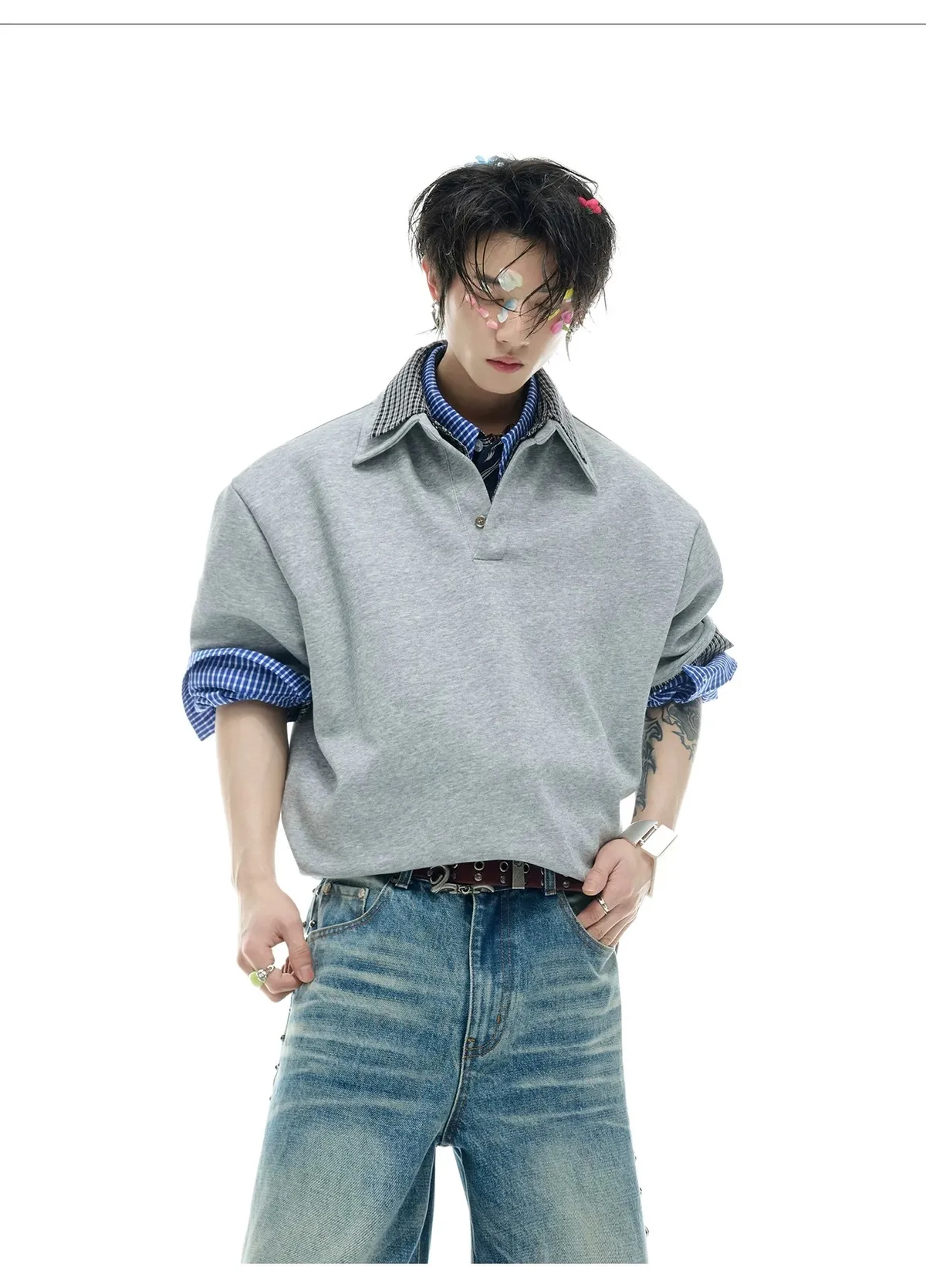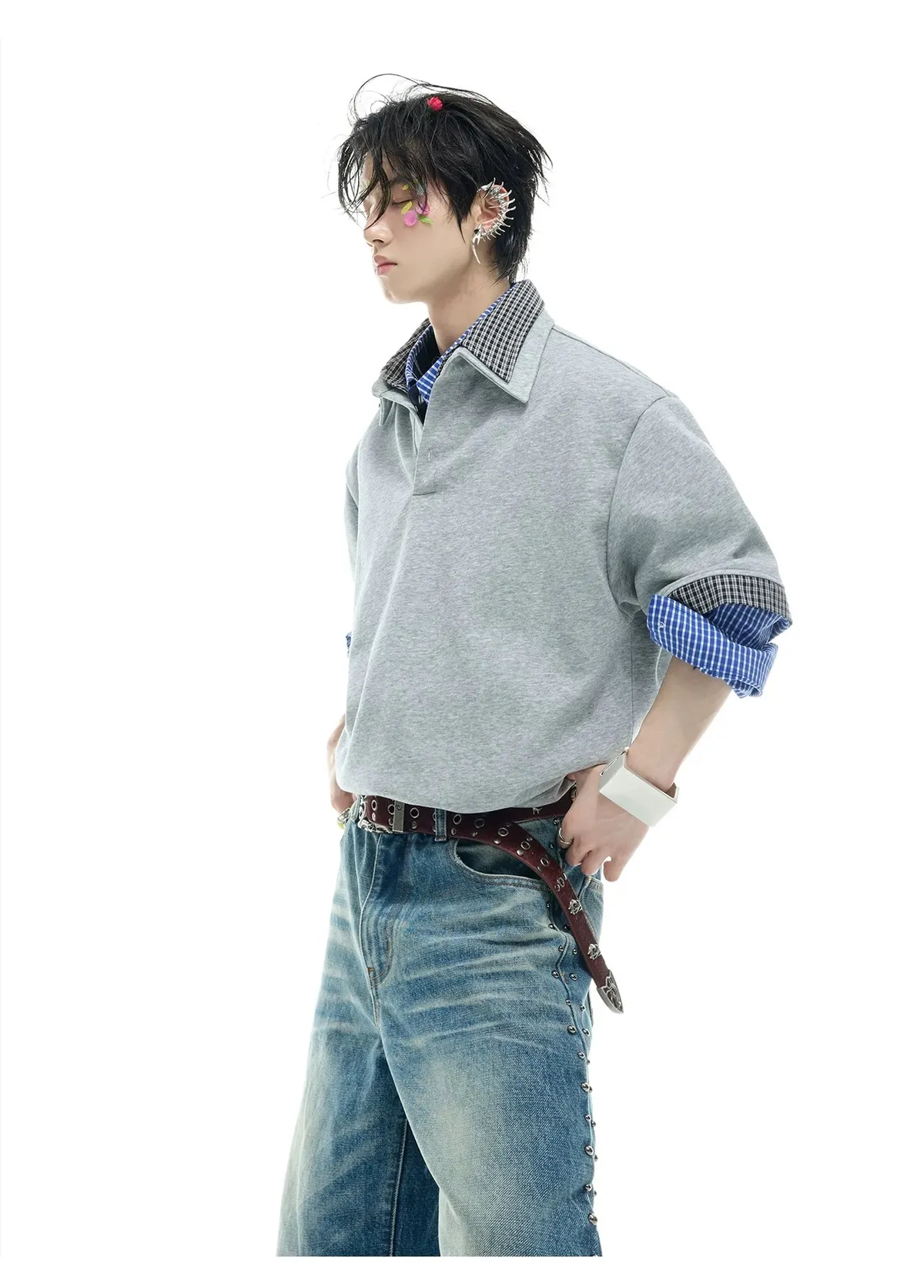 ARGUE 復古假兩件 格紋 POLO 短袖(黑/灰)