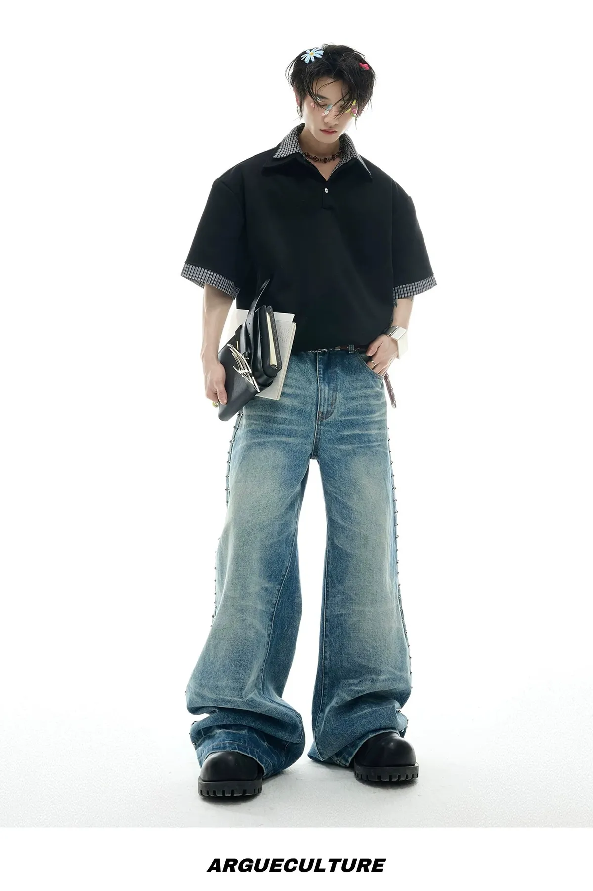 ARGUE 鑲邊卯釘 設計感 POLO 短袖(黑/白)