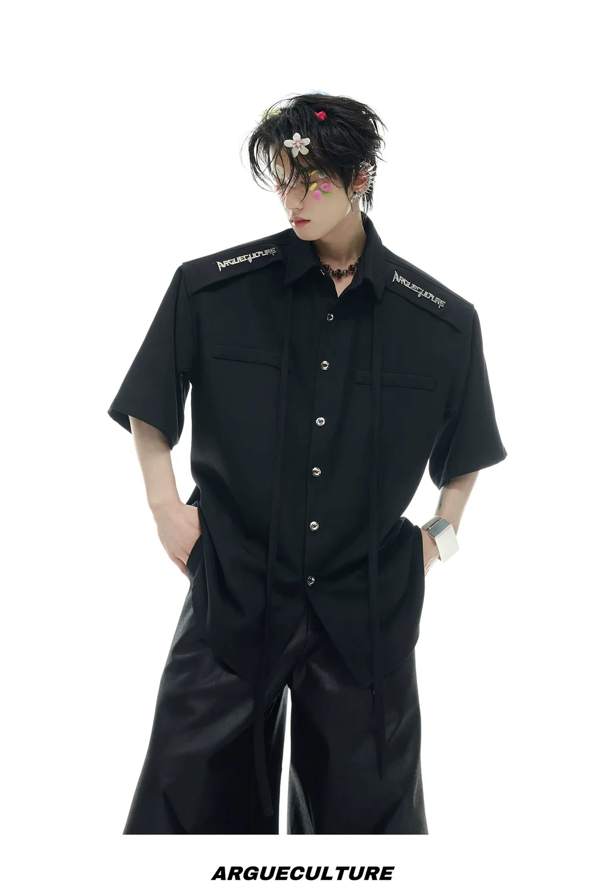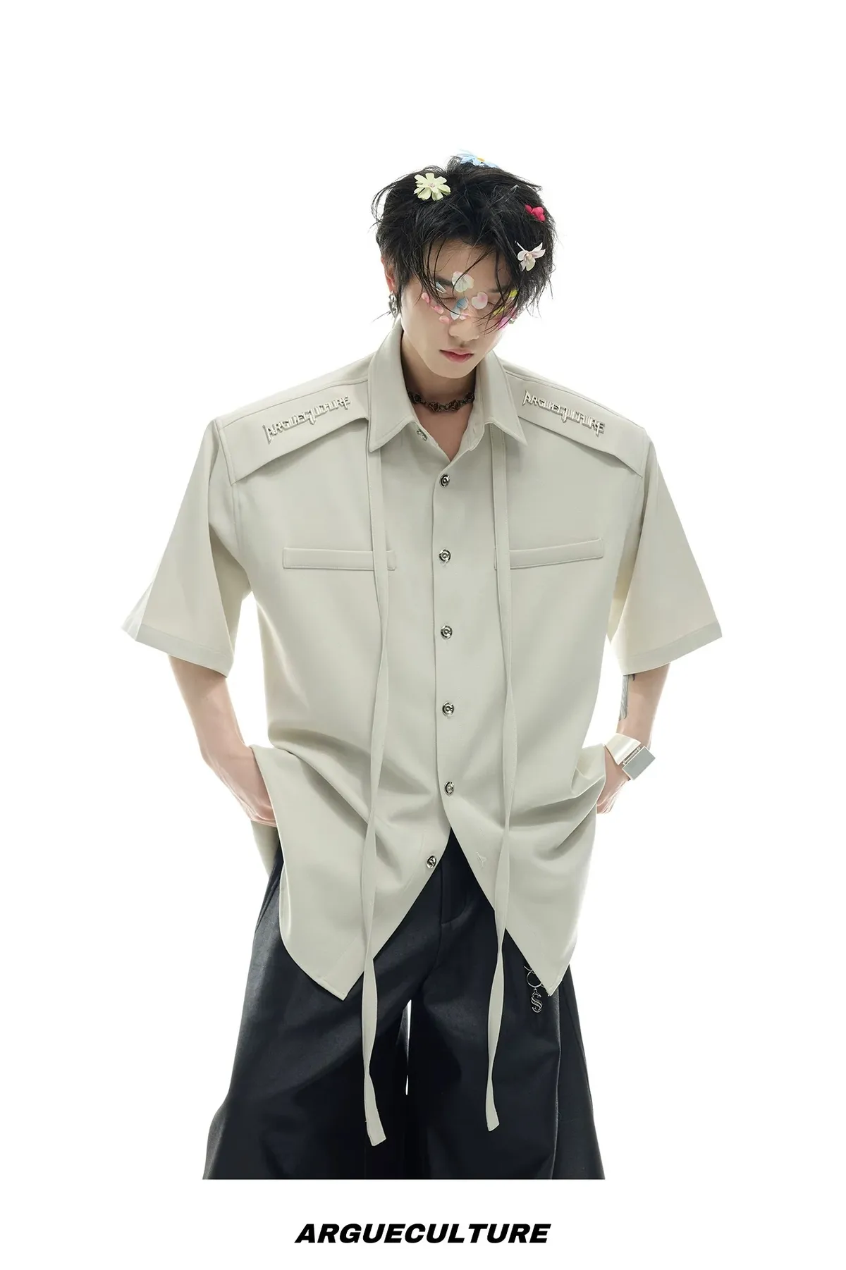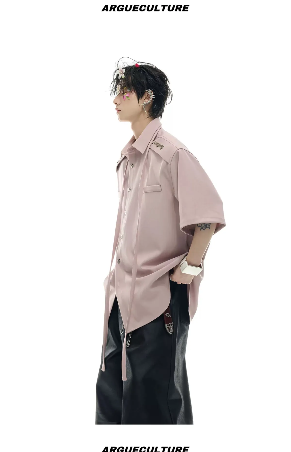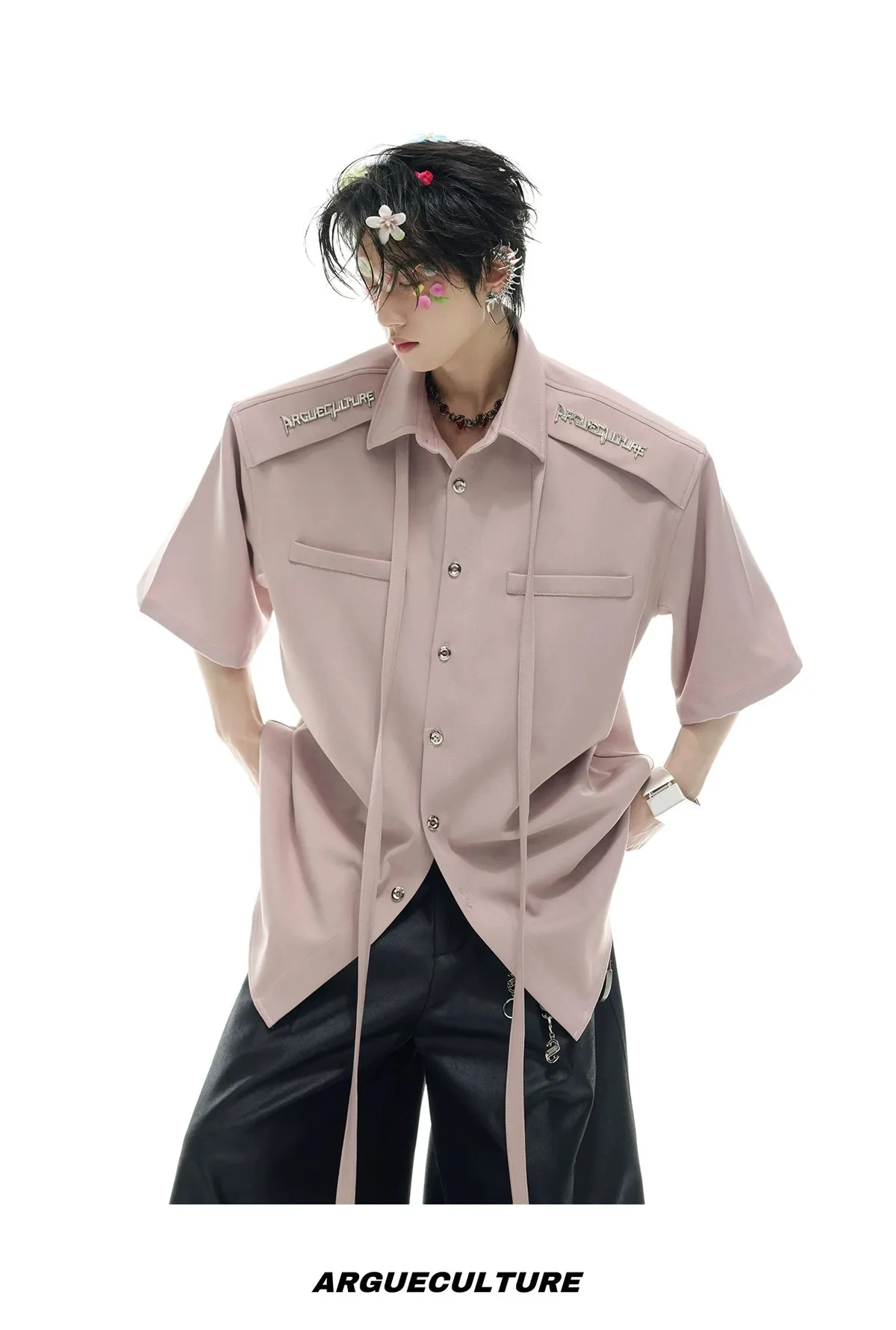 ARGUE 飄帶設計 簡約 襯衫(黑/白/灰杏/粉)