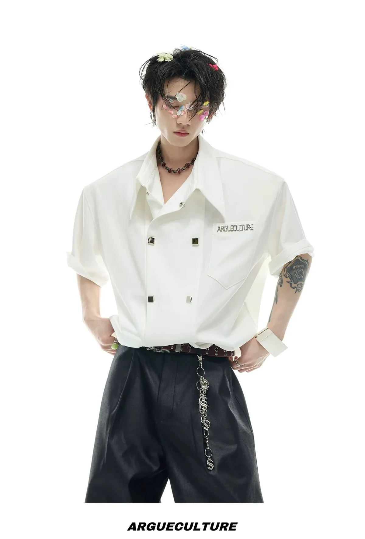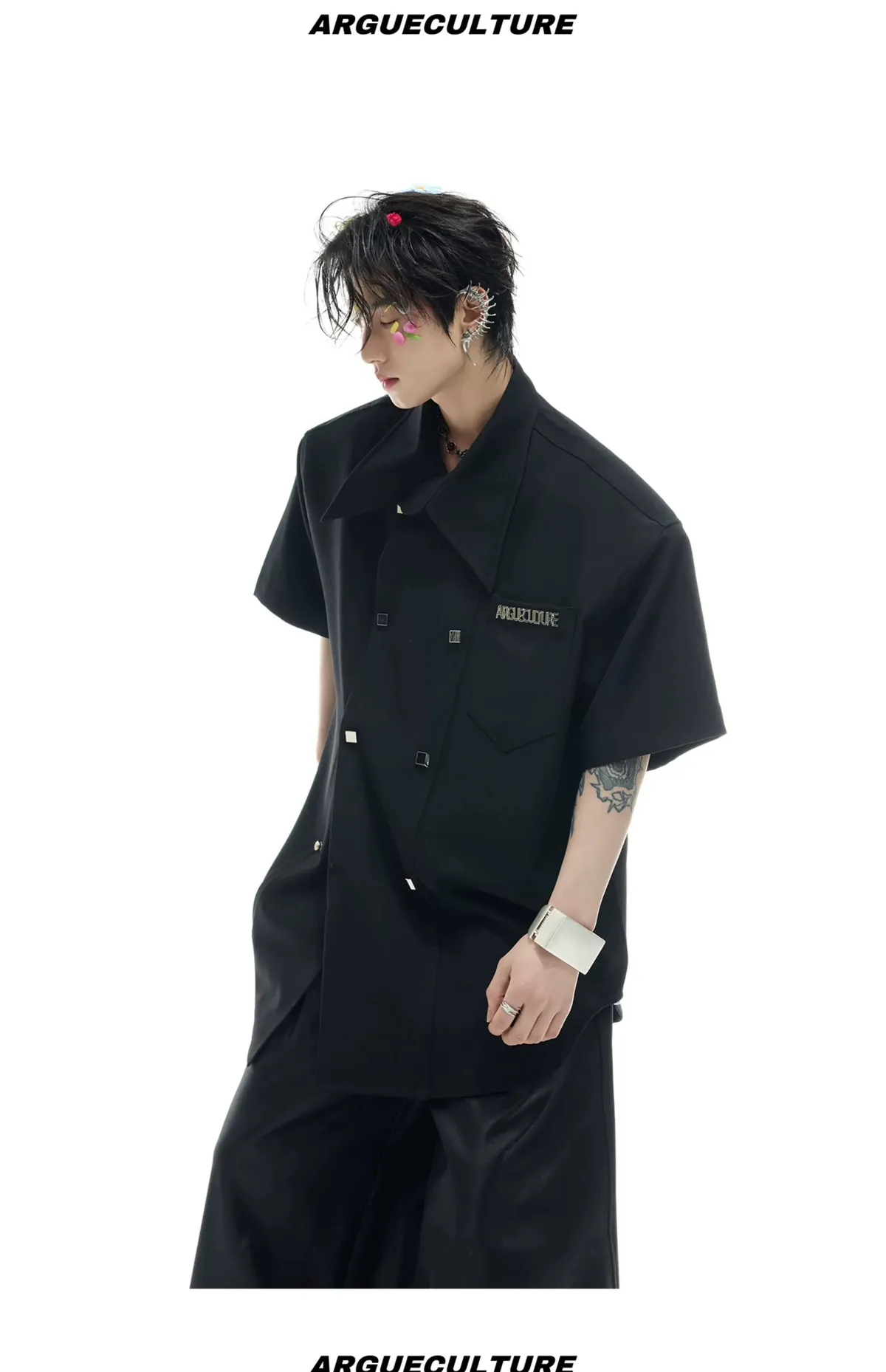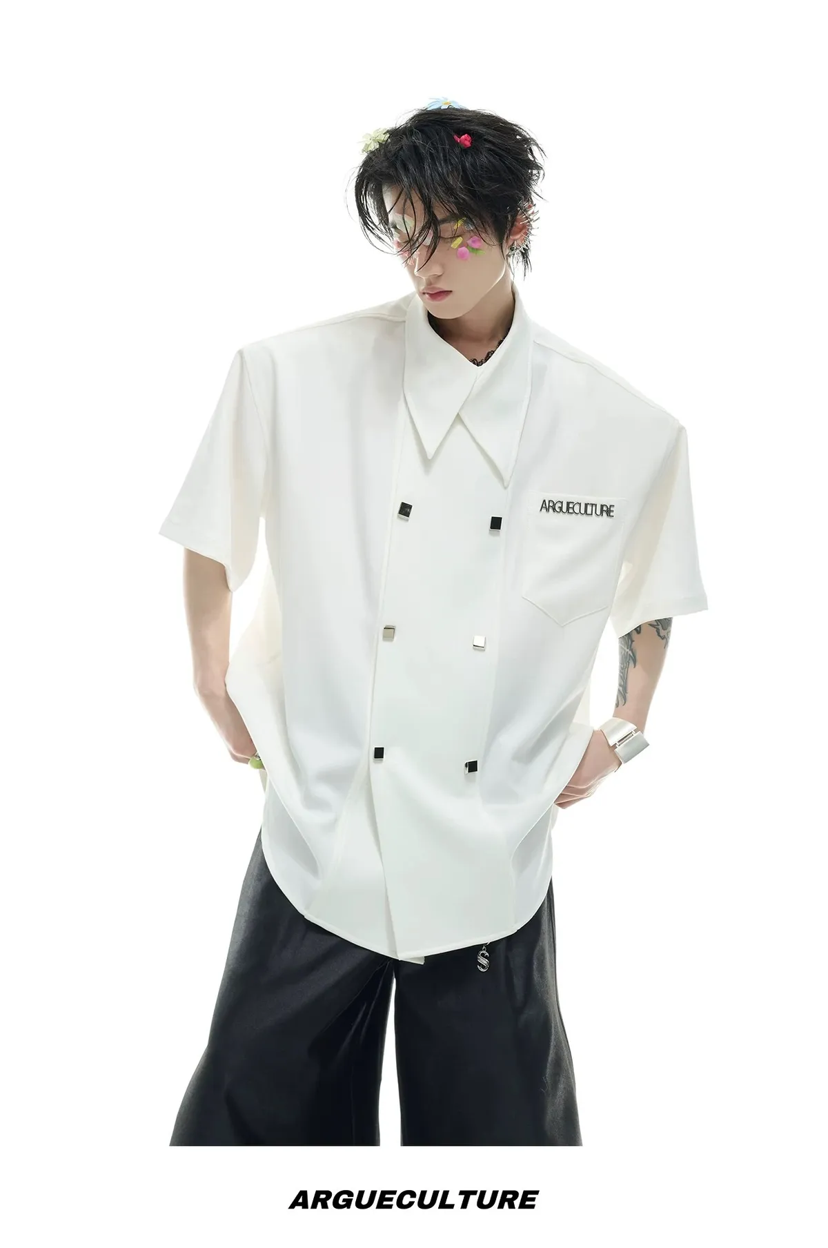 ARGUE 夏季涼感 雙排扣 尖領 襯衫(黑/白/藍)