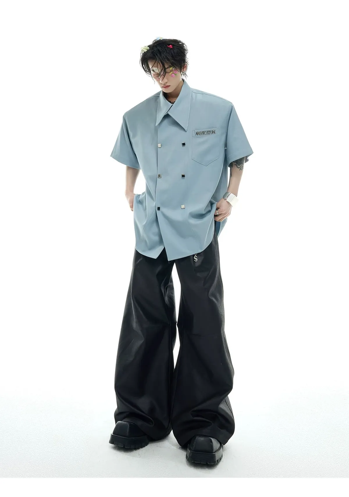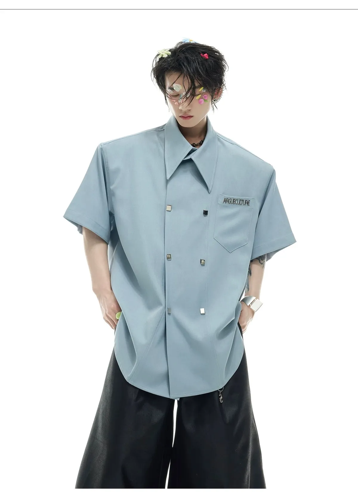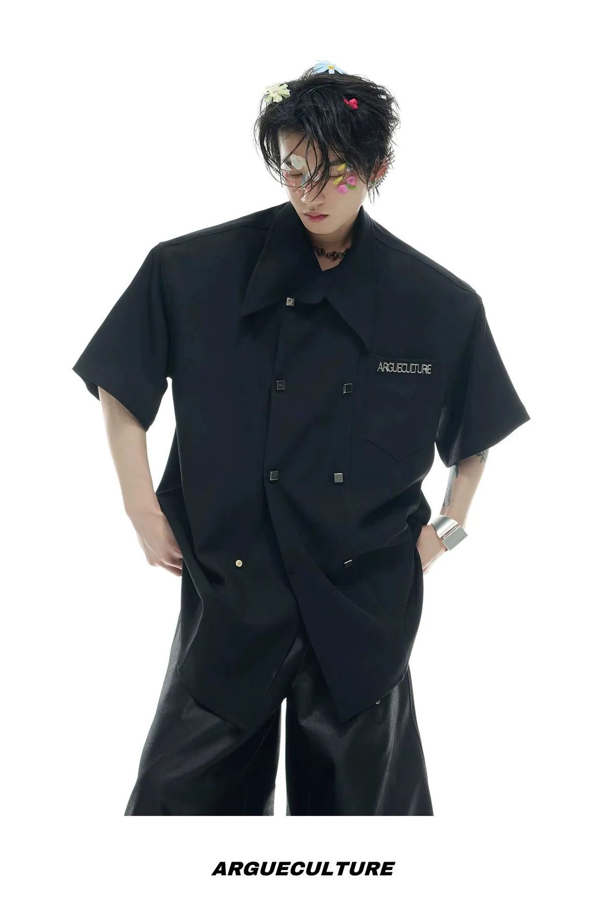 ARGUE 夏季涼感 雙排扣 尖領 襯衫(黑/白/藍)