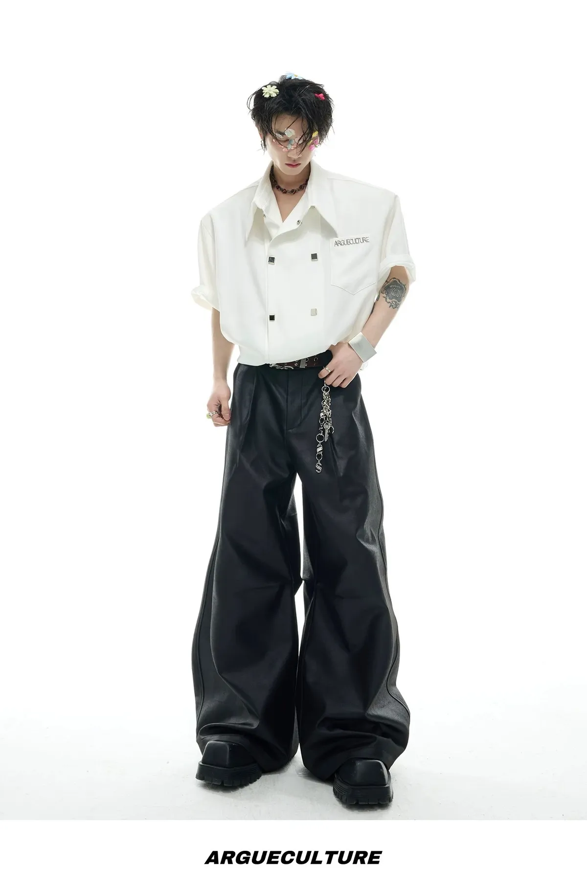 ARGUE 解構雙層 皮革 七分褲 短褲(黑色)