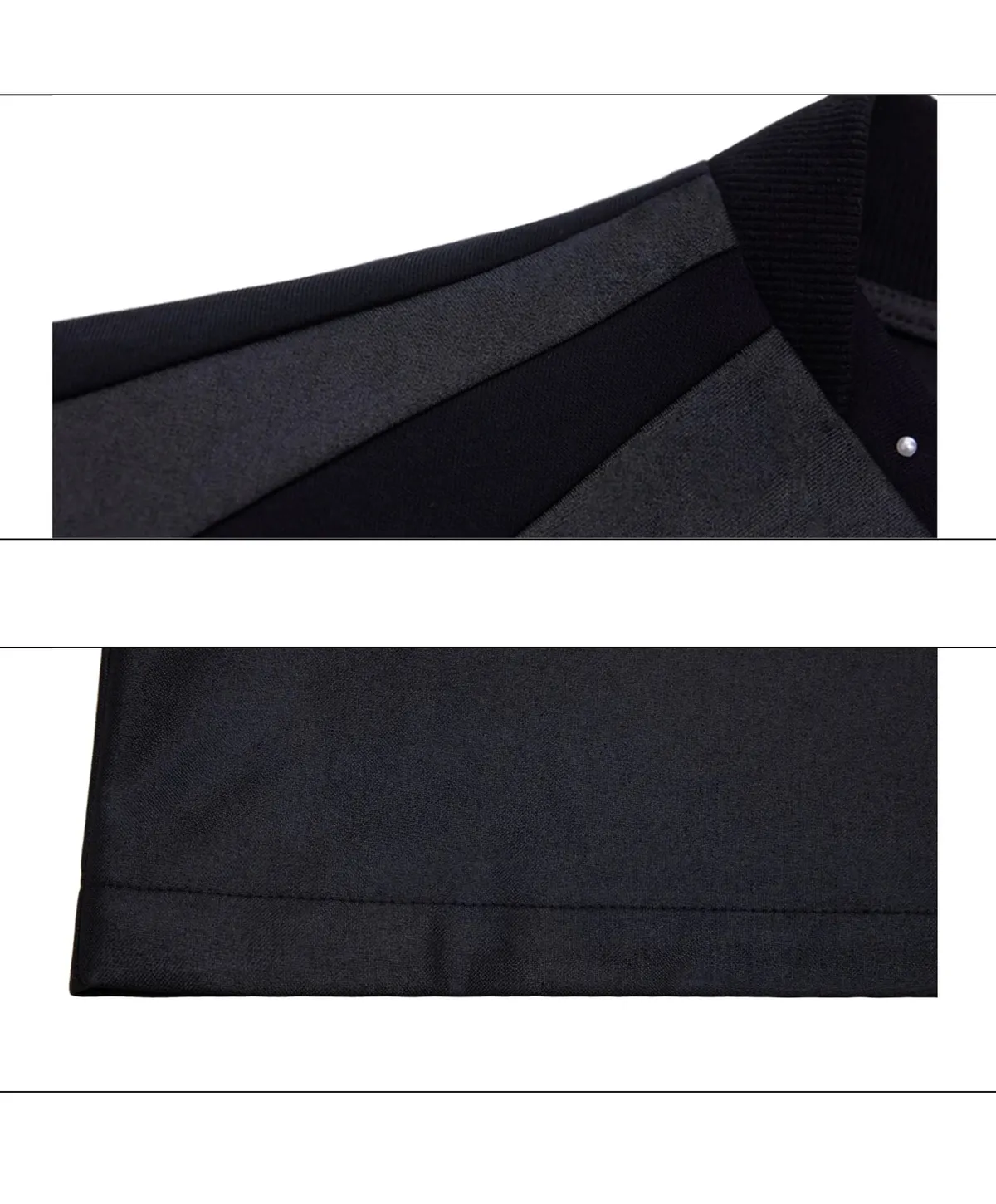 ARGUE 哈靈頓 皮革拼接 卯釘 拉鍊短袖 長褲 套裝(黑/灰杏)
