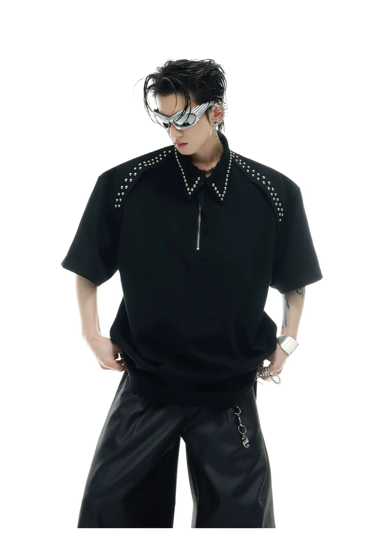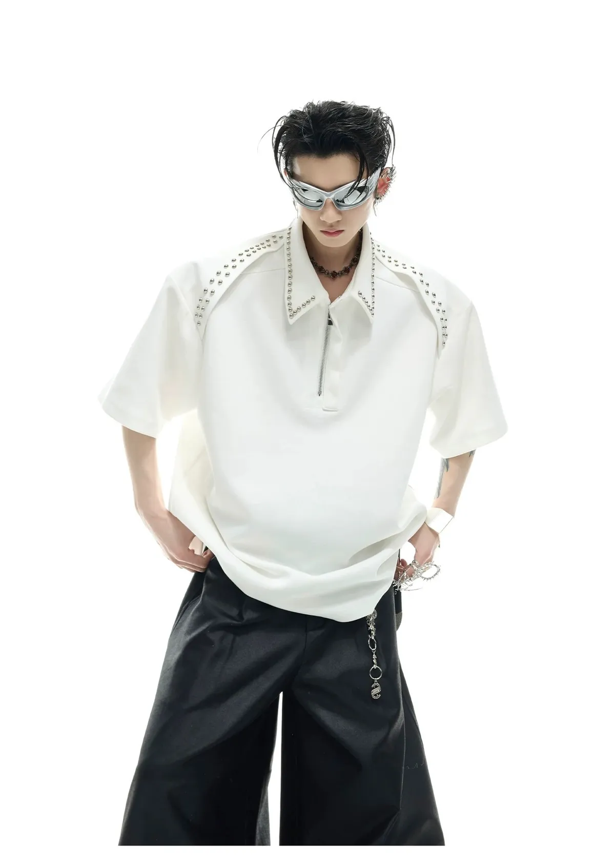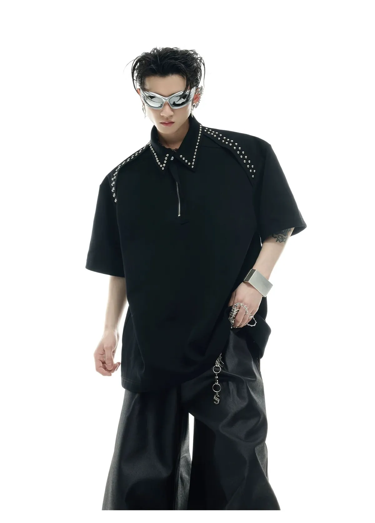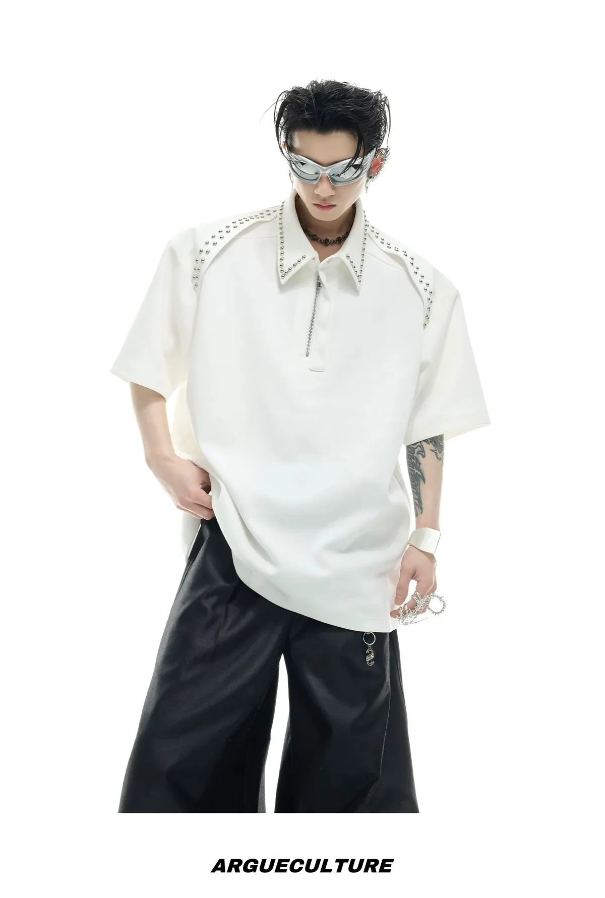 ARGUE 鑲邊卯釘 設計感 POLO 短袖(黑/白)