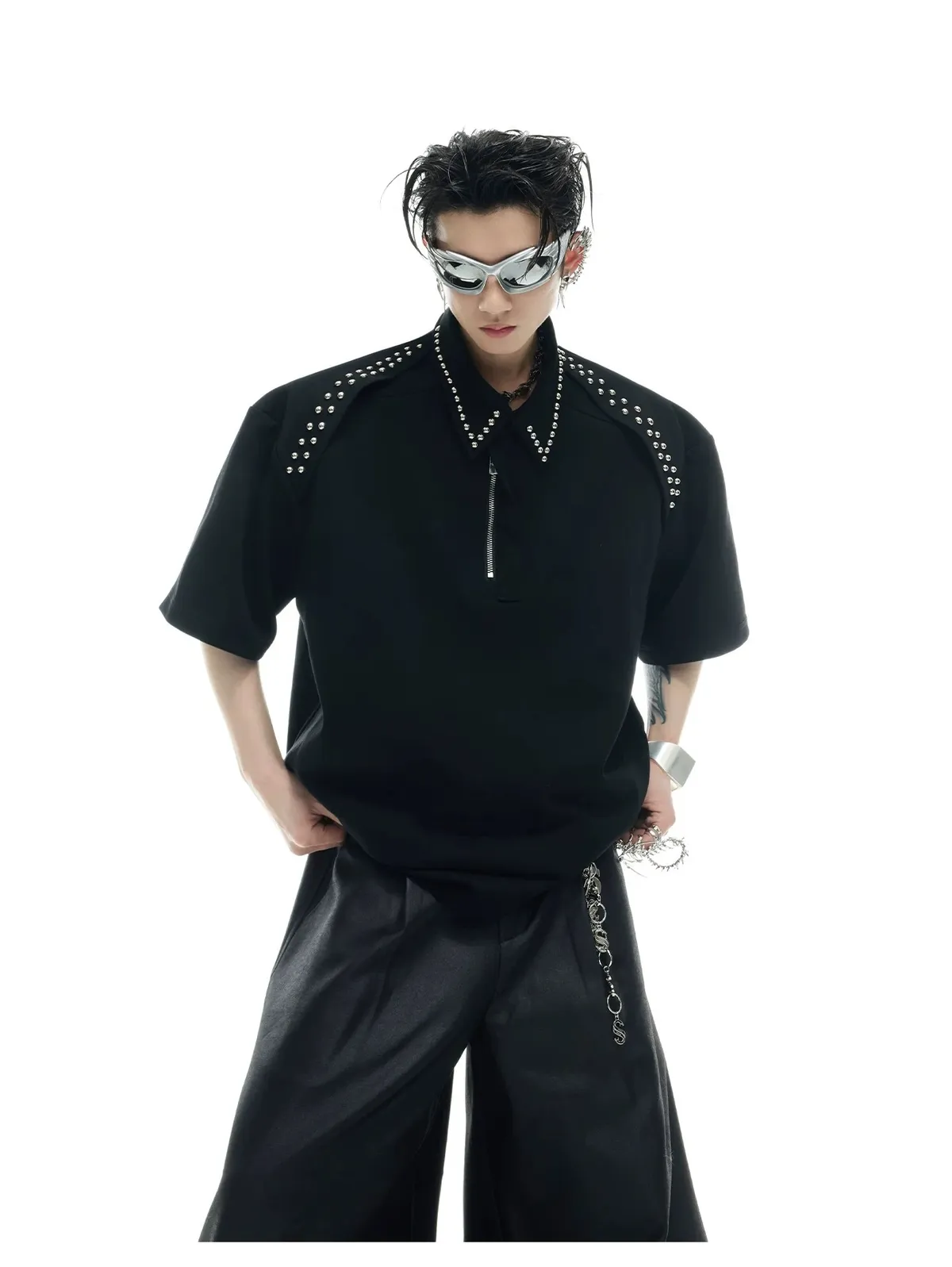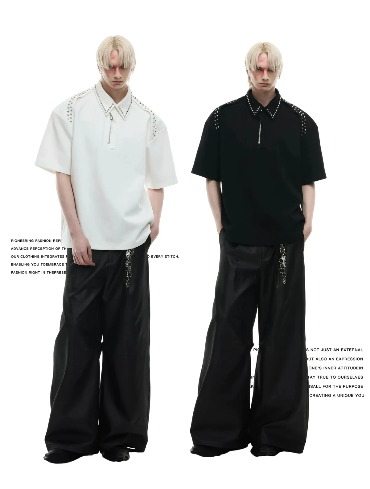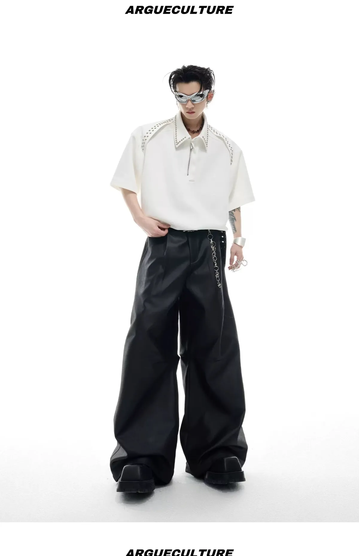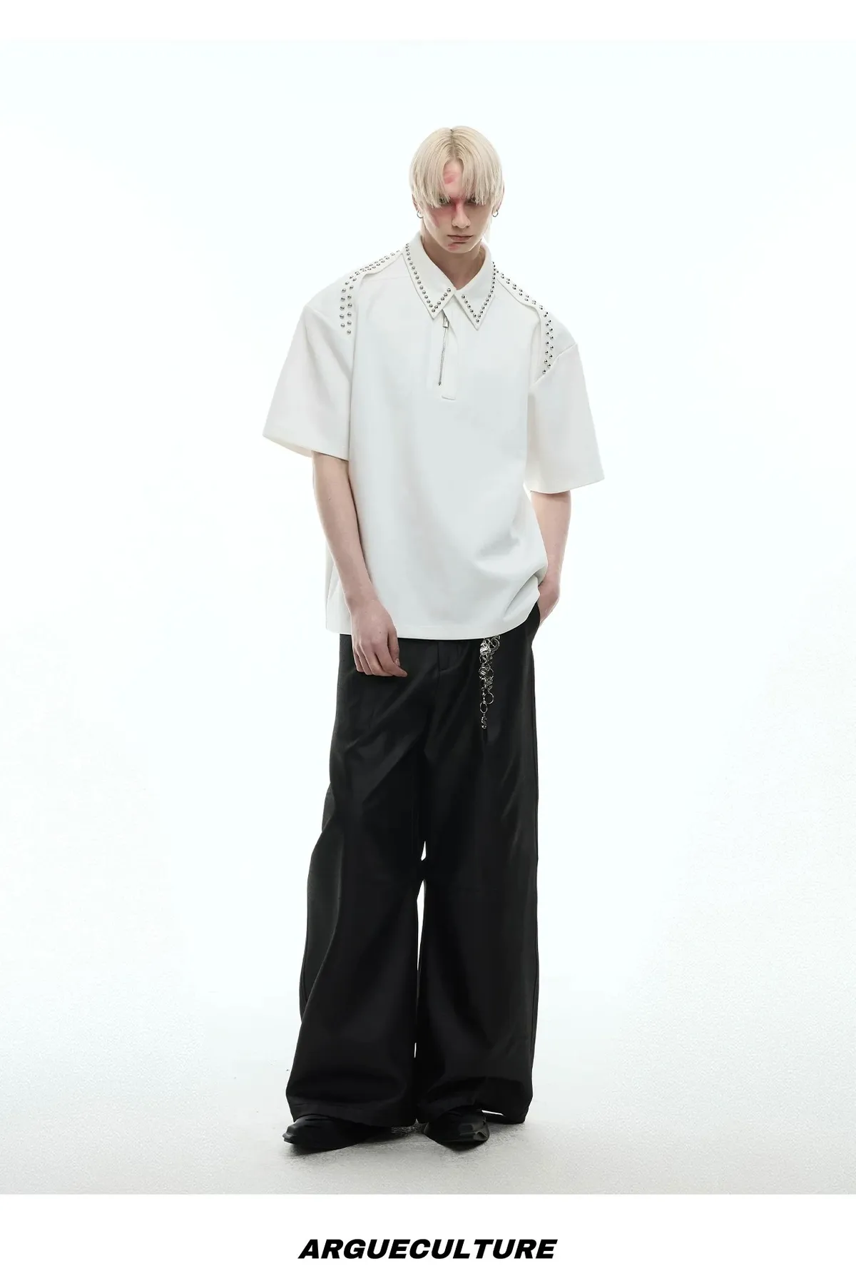 ARGUE 鑲邊卯釘 設計感 POLO 短袖(黑/白)