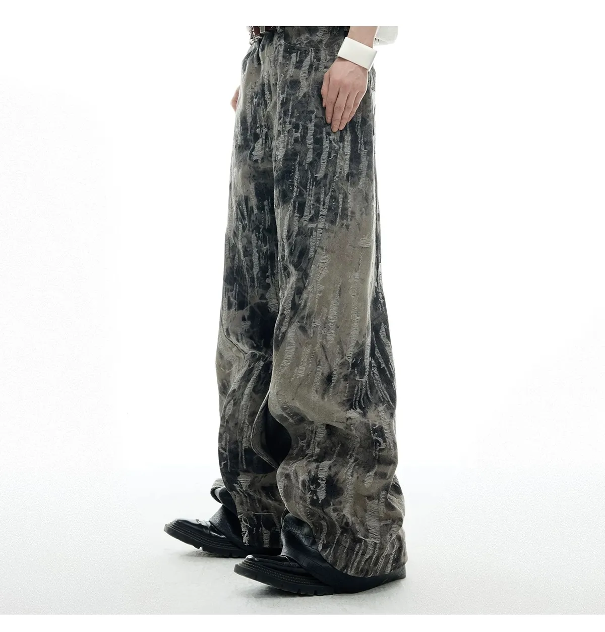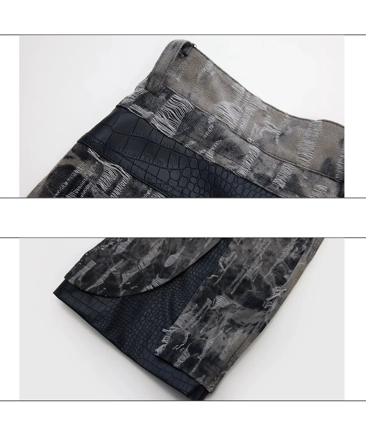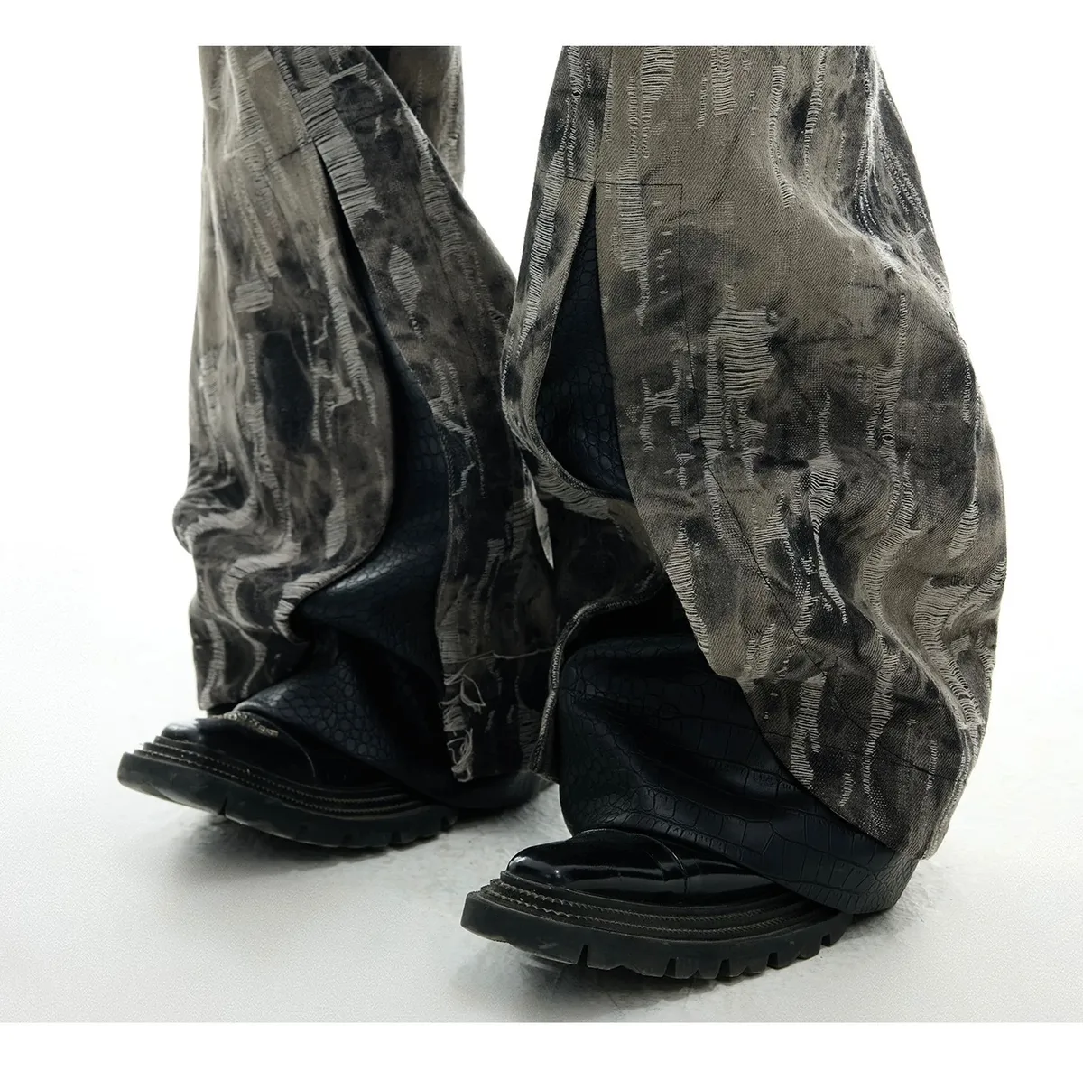 ARGUE 復古潑墨 微喇叭 皮革拼接 牛仔褲(黑色)