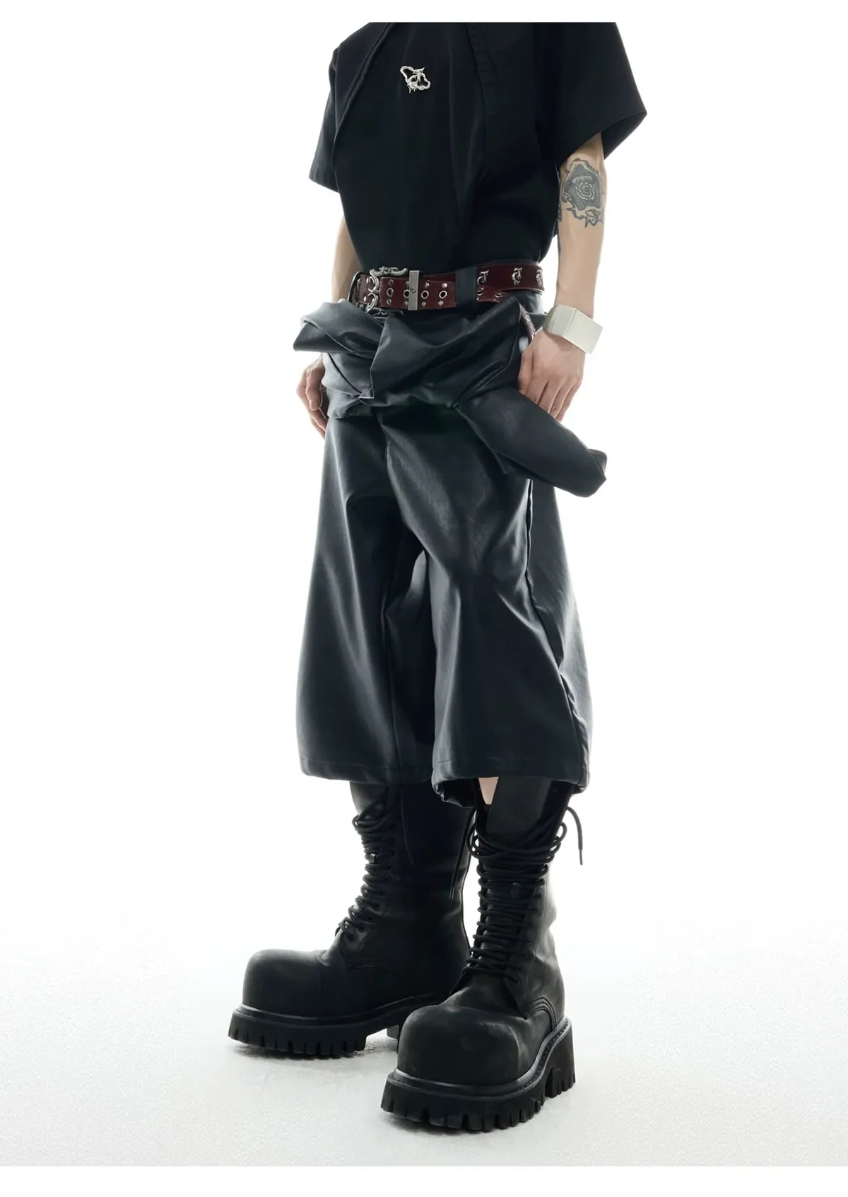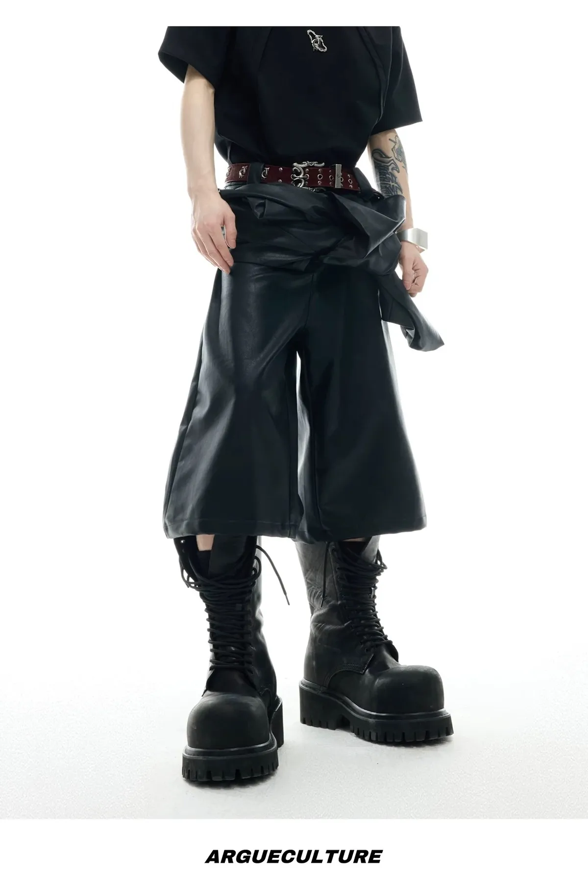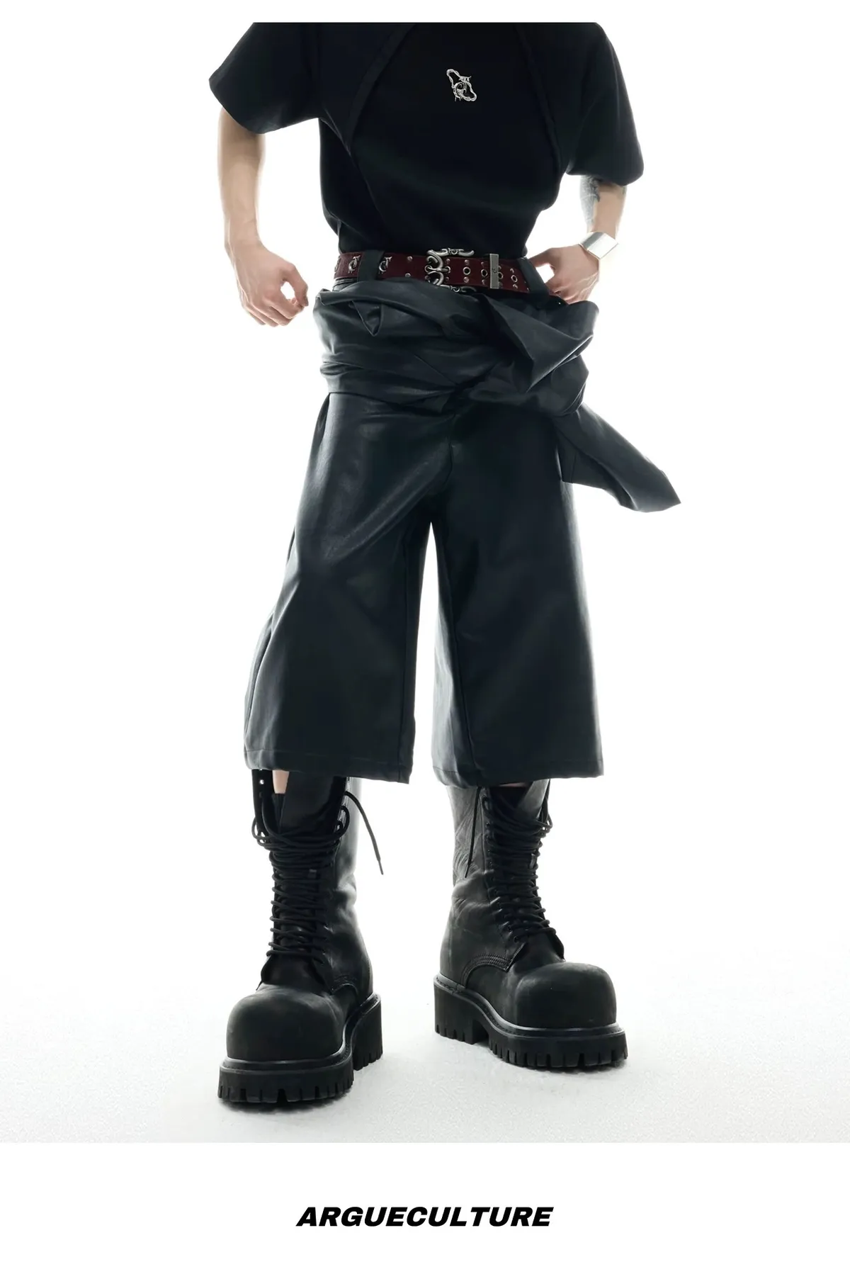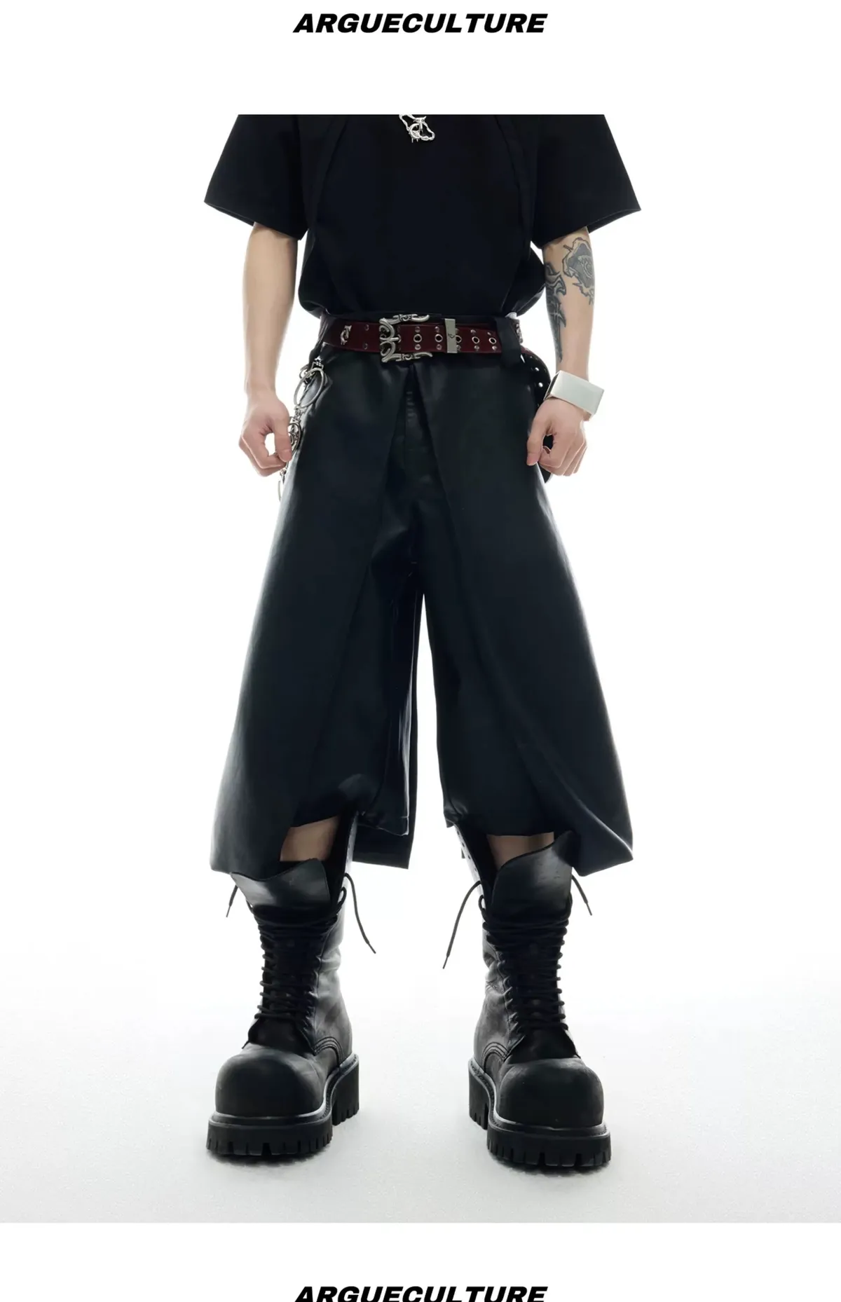 ARGUE 解構雙層 皮革 七分褲 短褲(黑色)