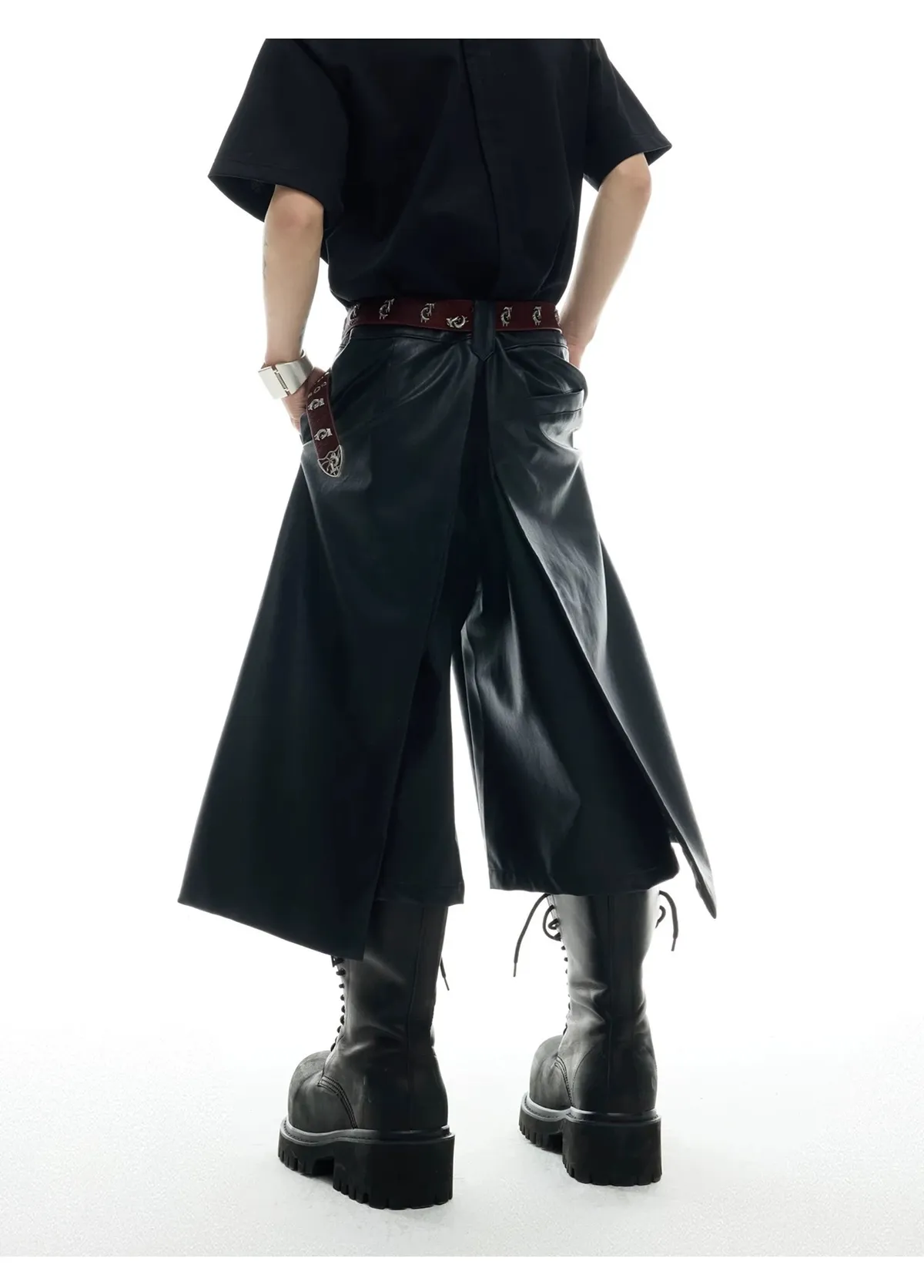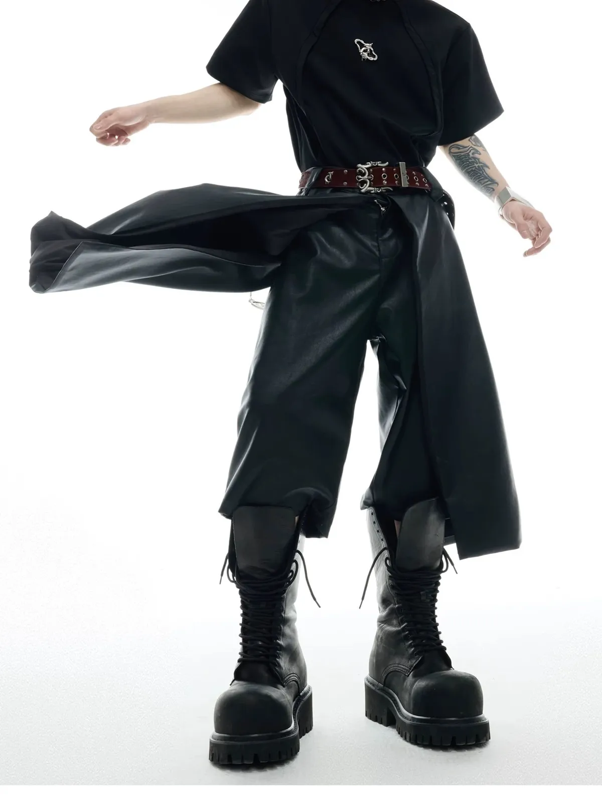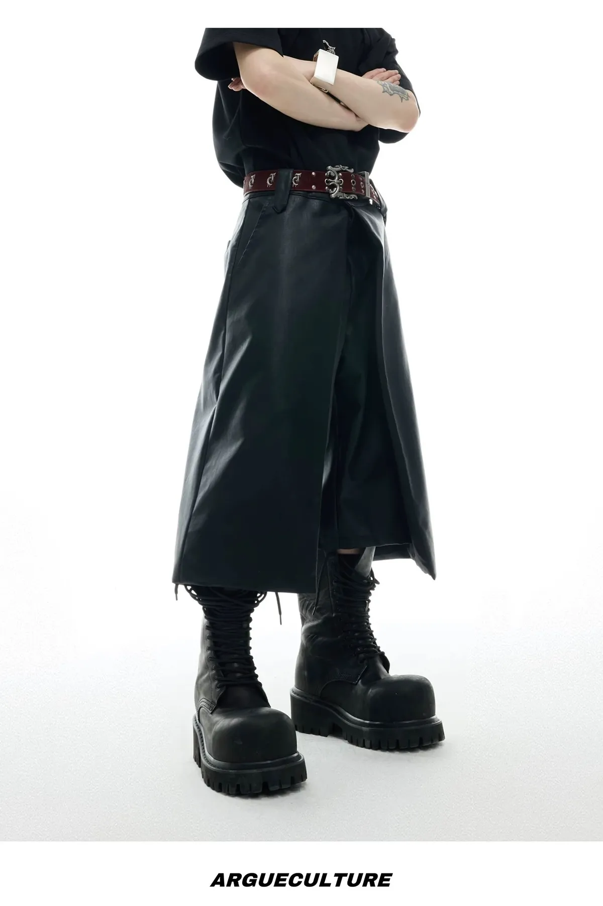 ARGUE 解構雙層 皮革 七分褲 短褲(黑色)