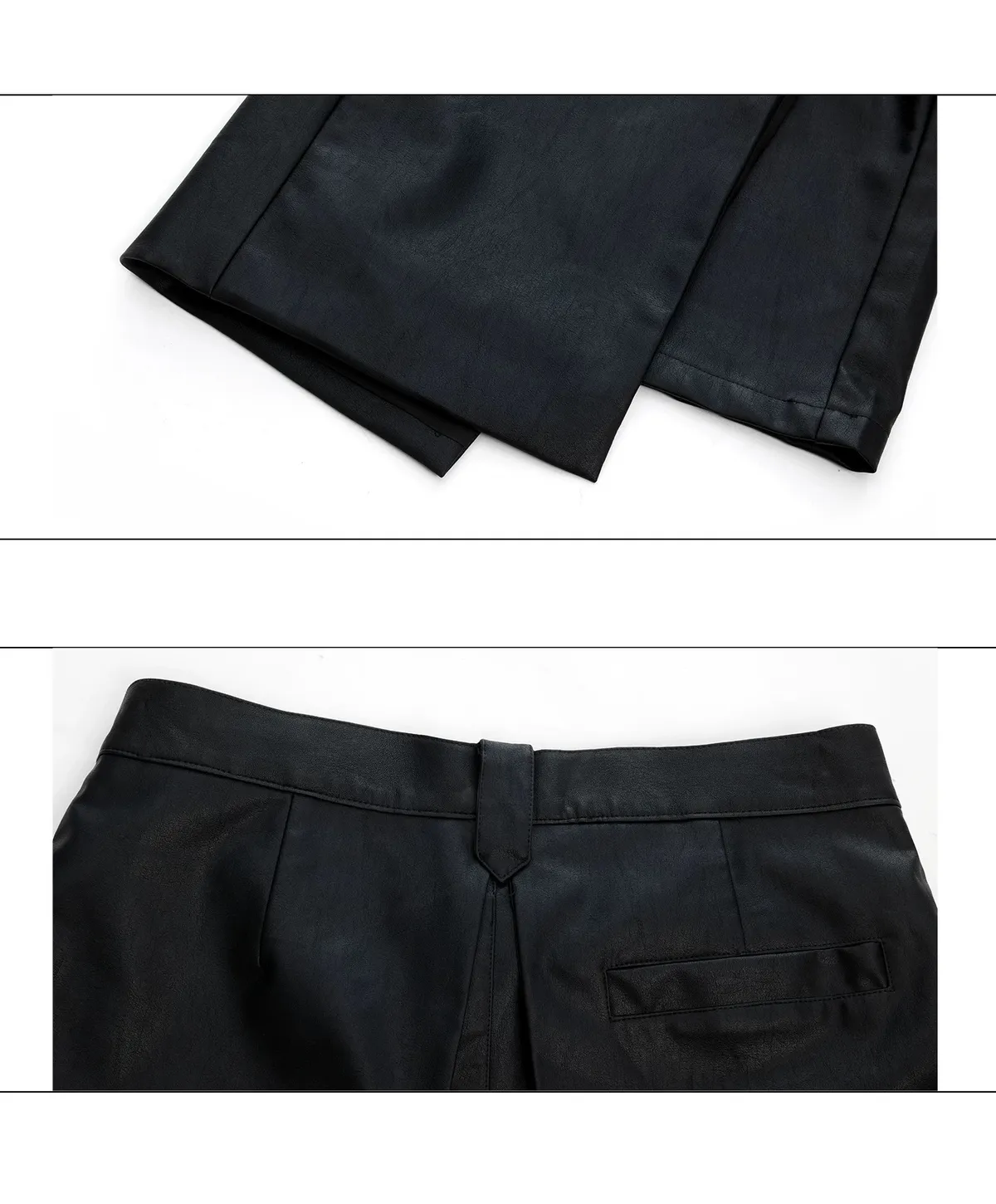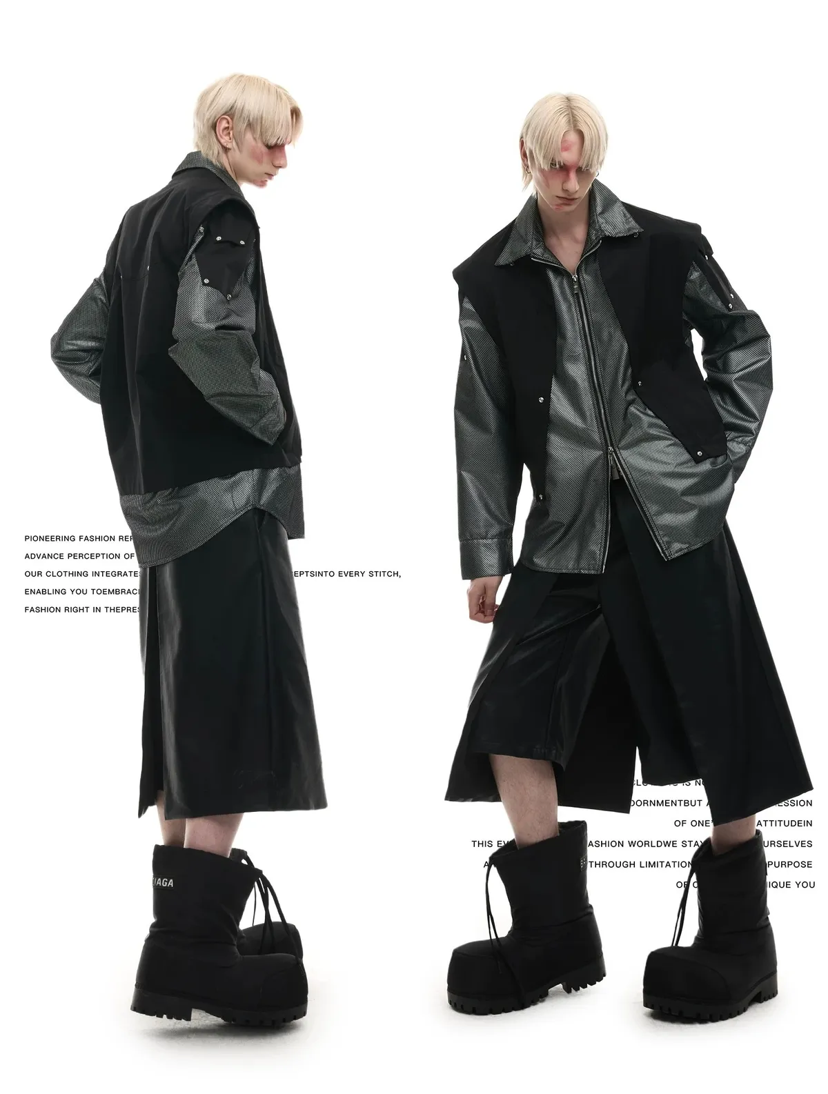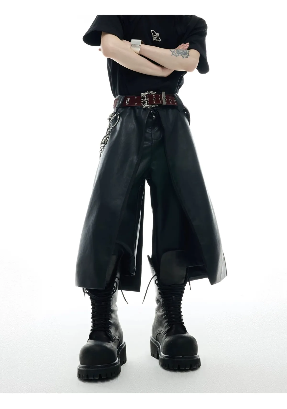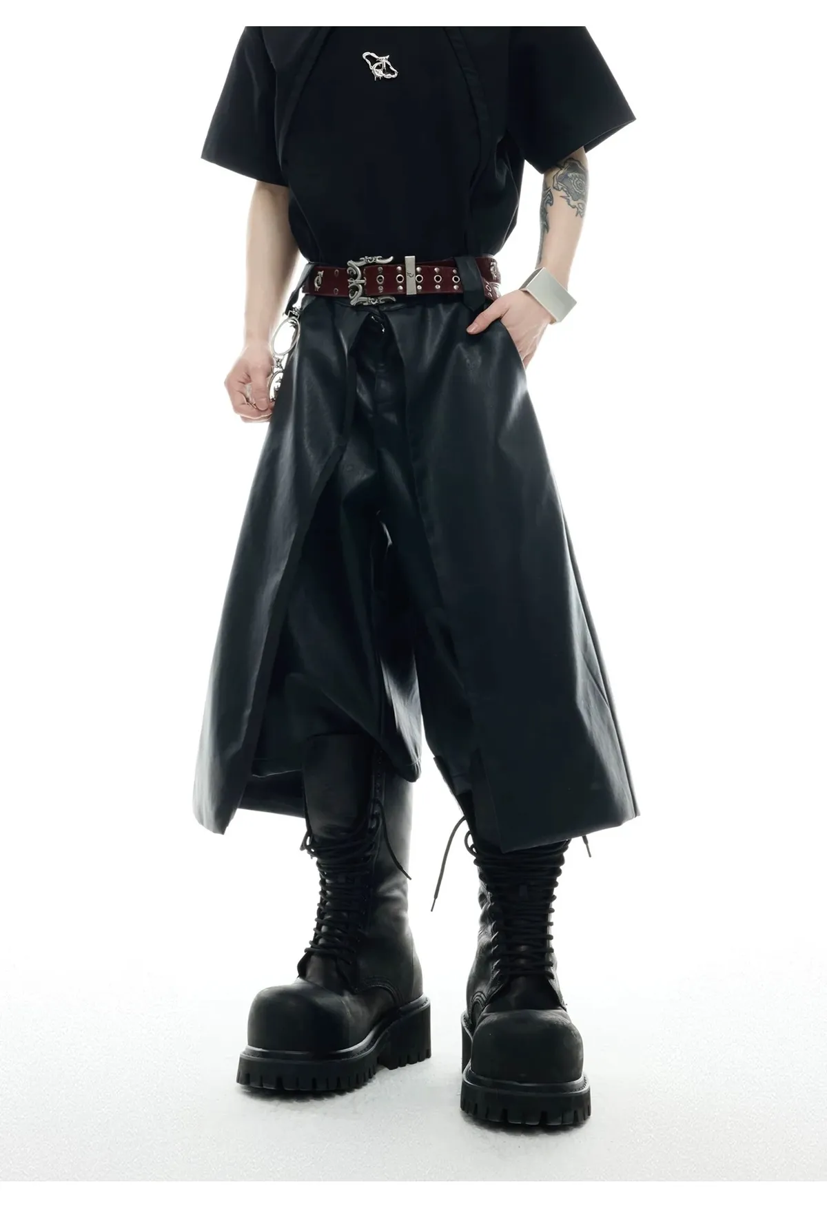 ARGUE 解構雙層 皮革 七分褲 短褲(黑色)