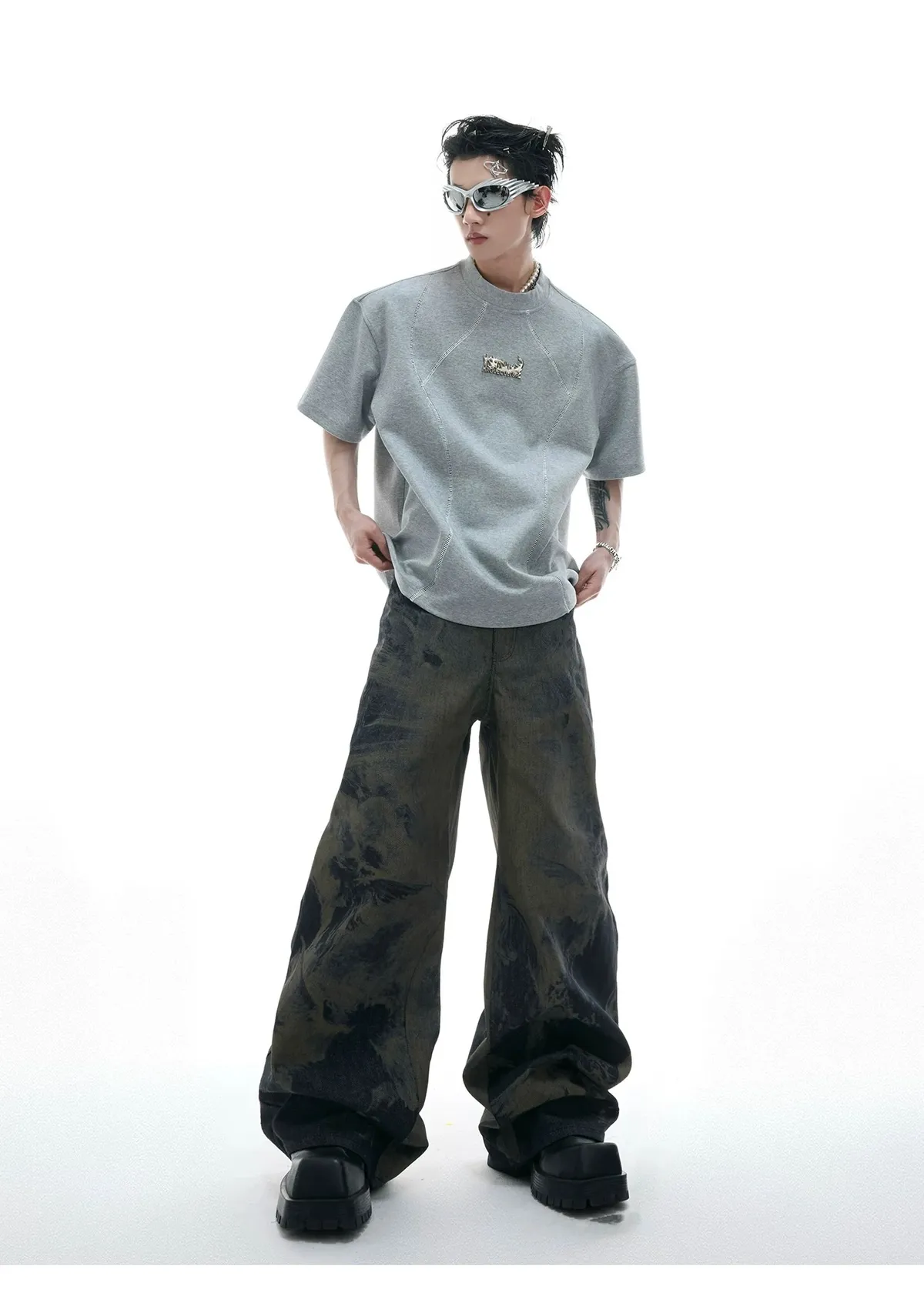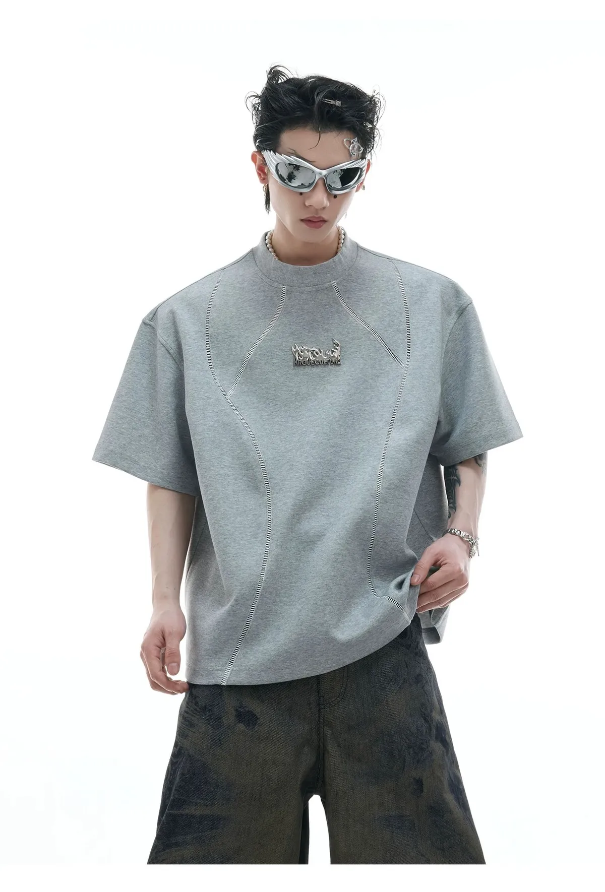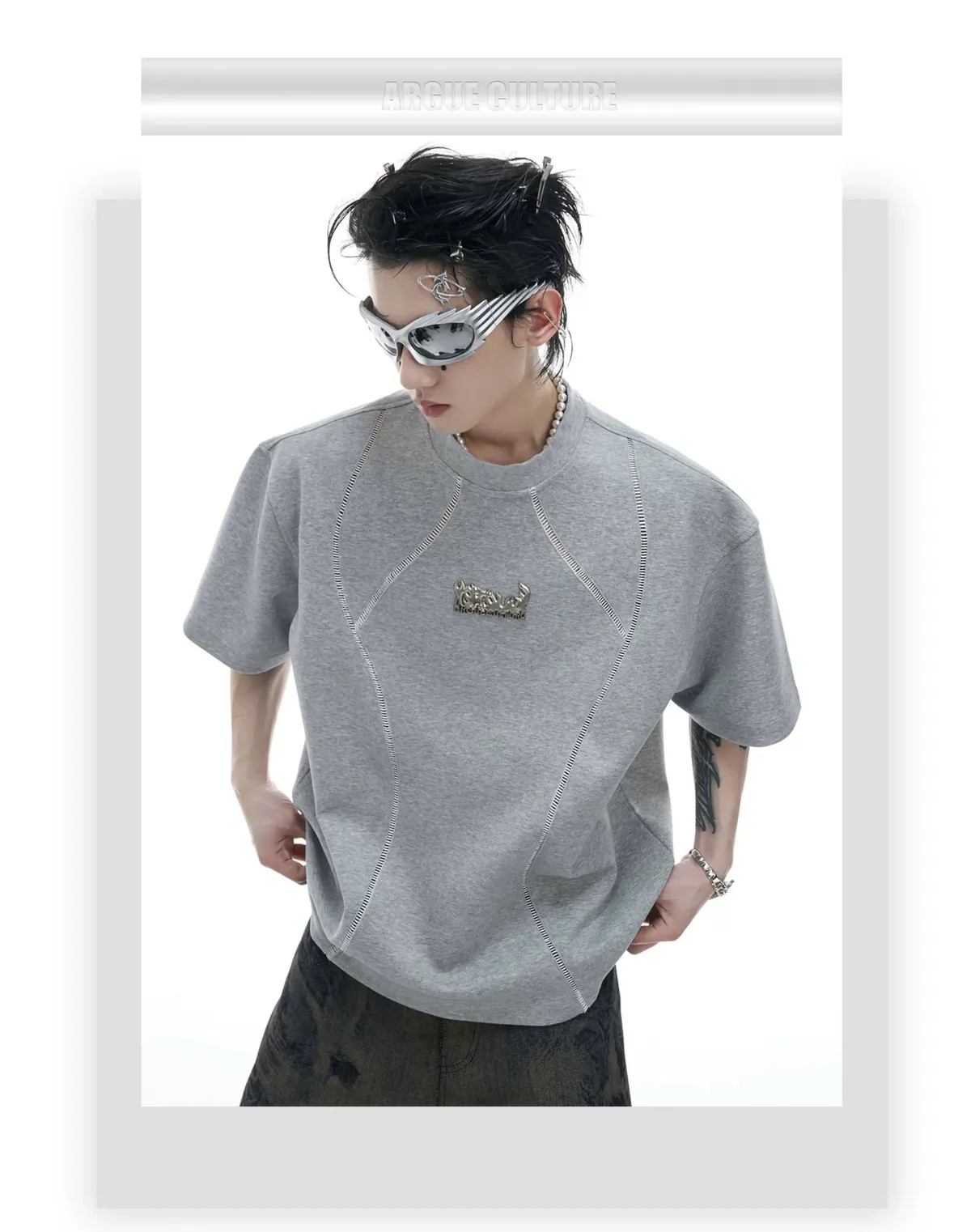 ARGUE 做舊LOGO 剪裁球衣 短袖(灰/白)