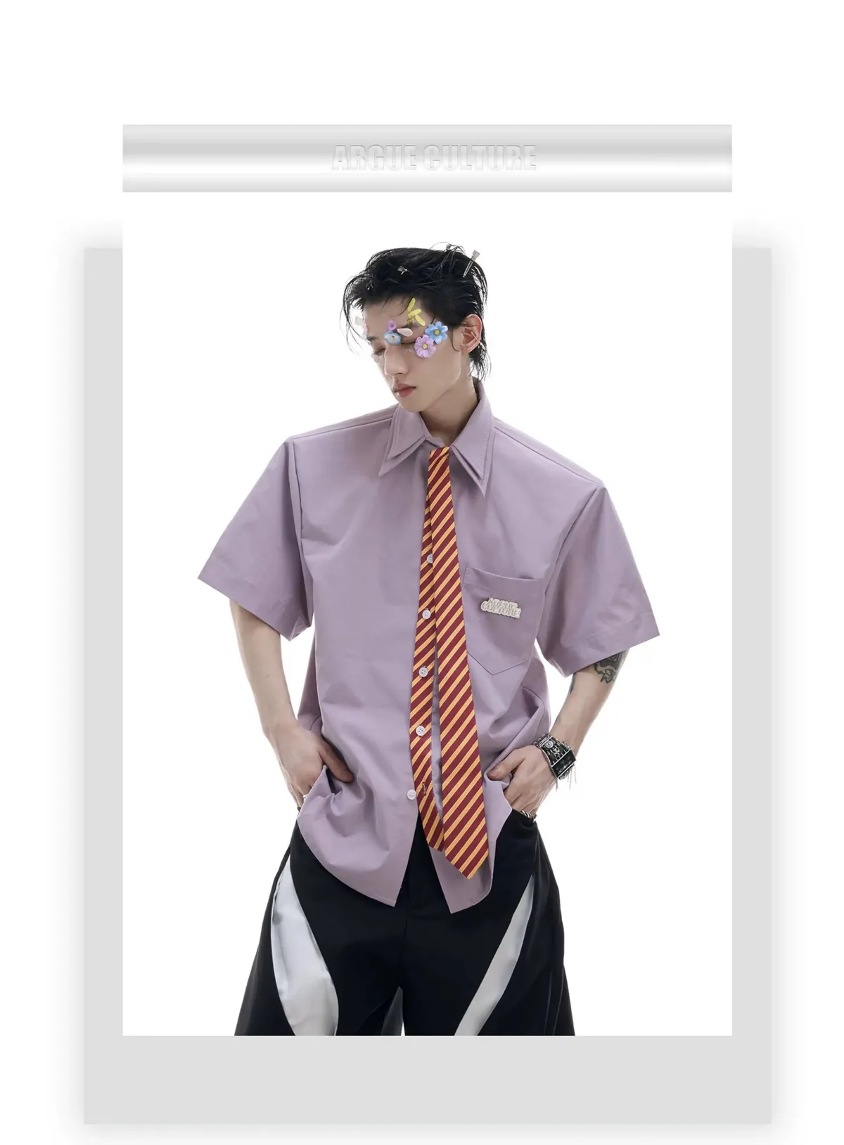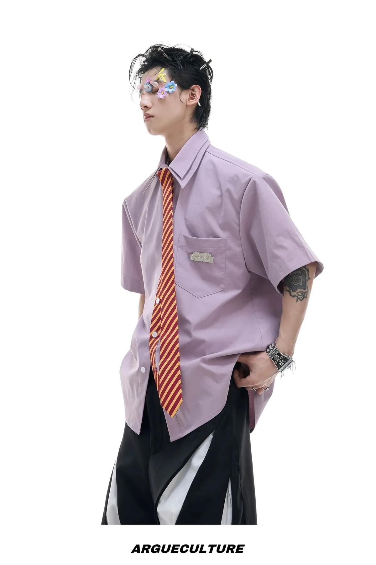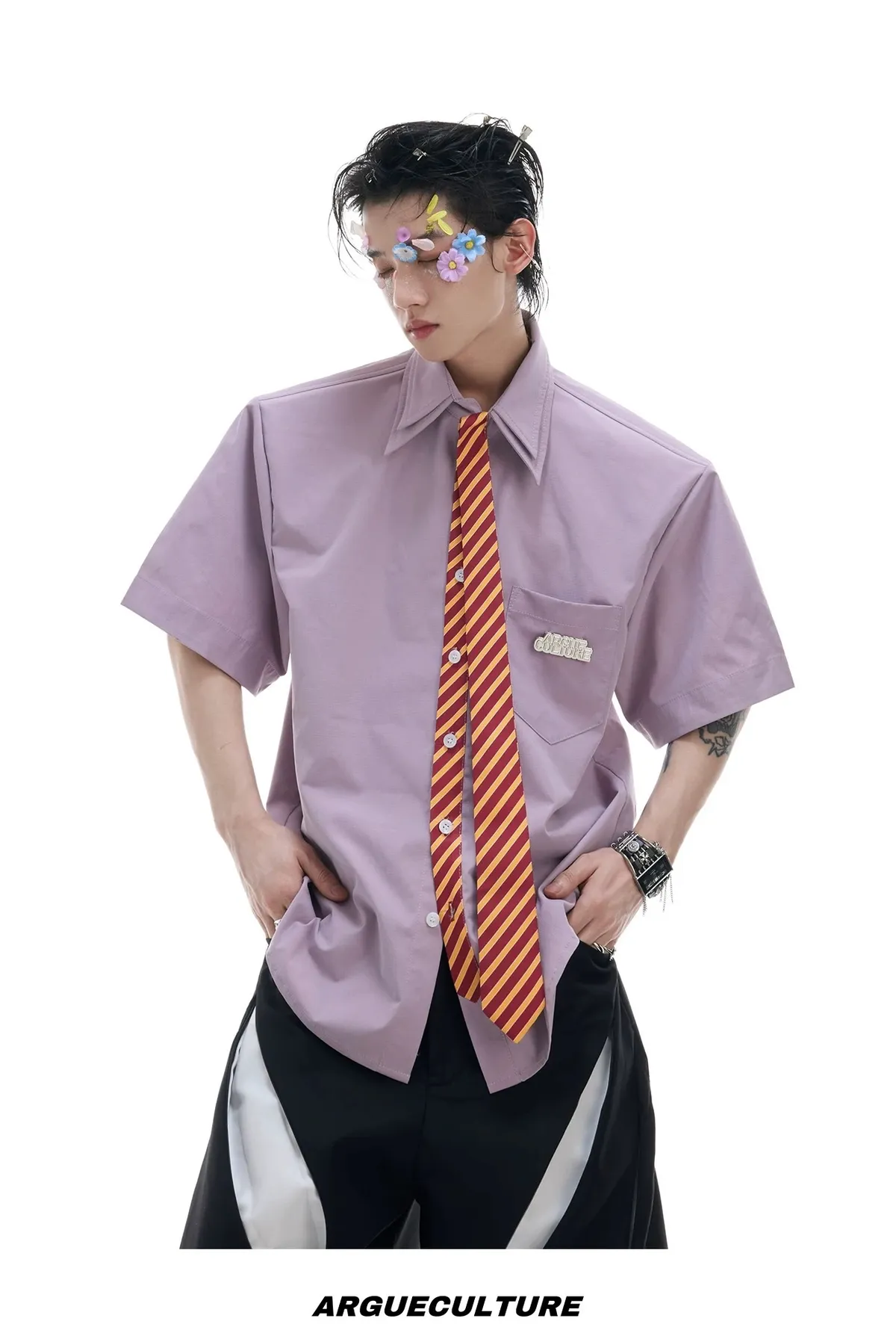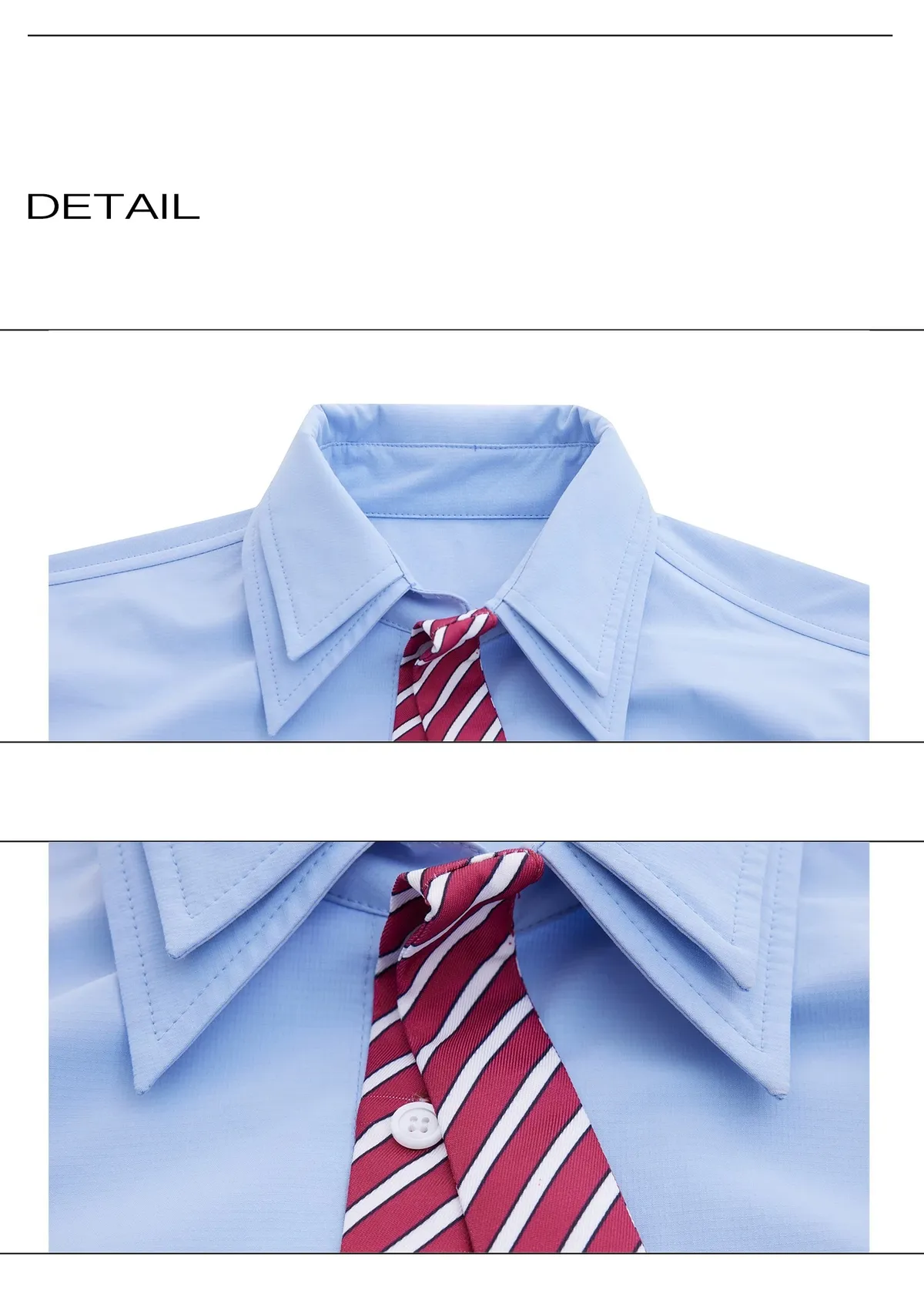 ARGUE 夏季小眾 復古領帶 雙層 襯衫(藍/白/紫)