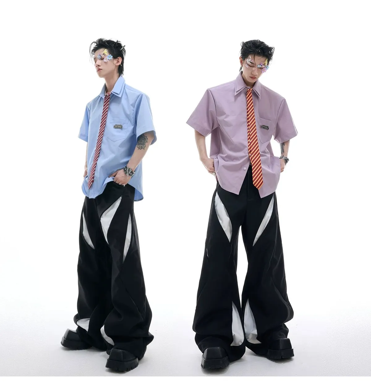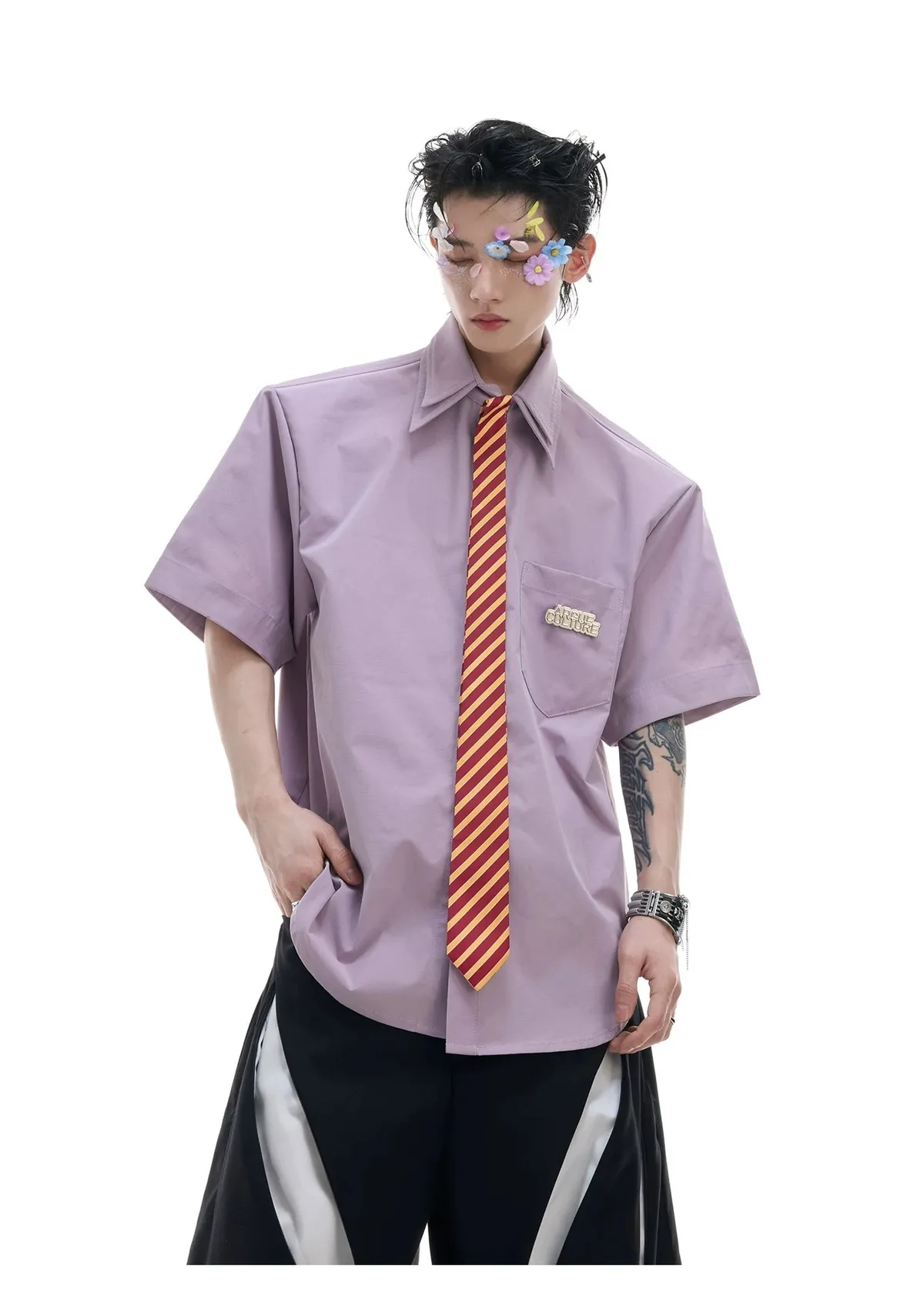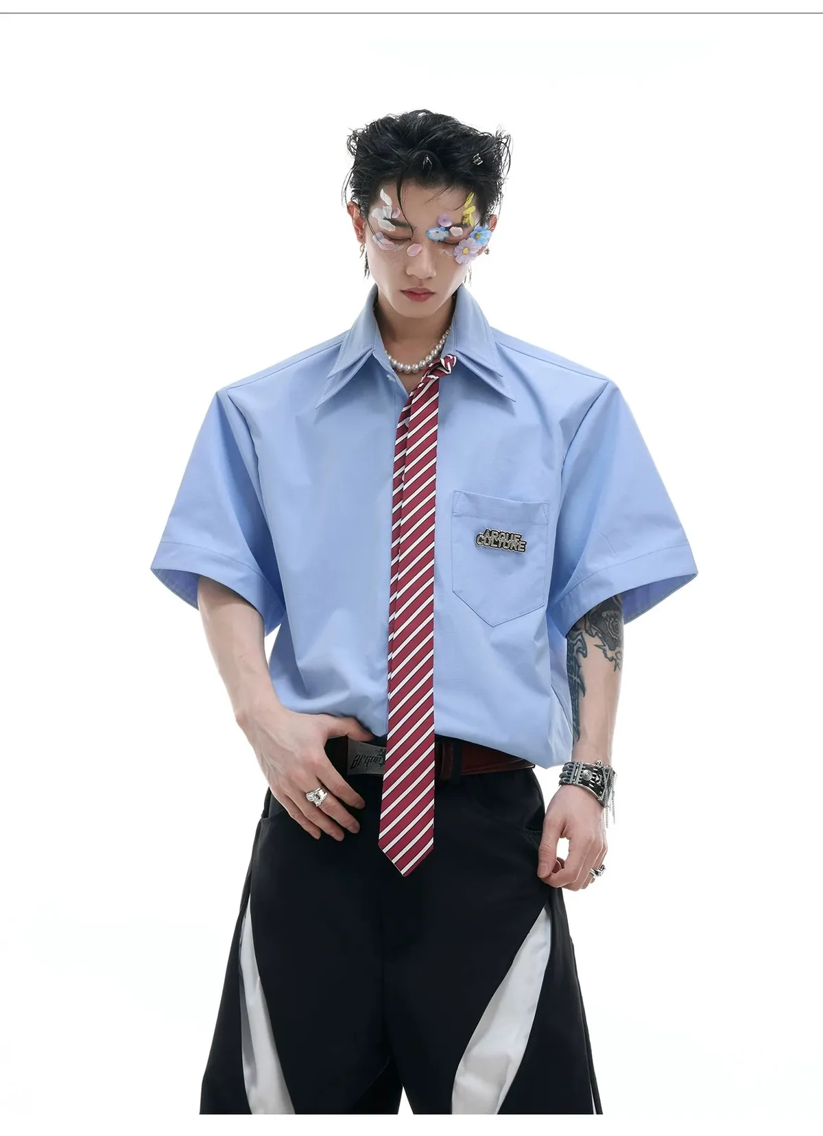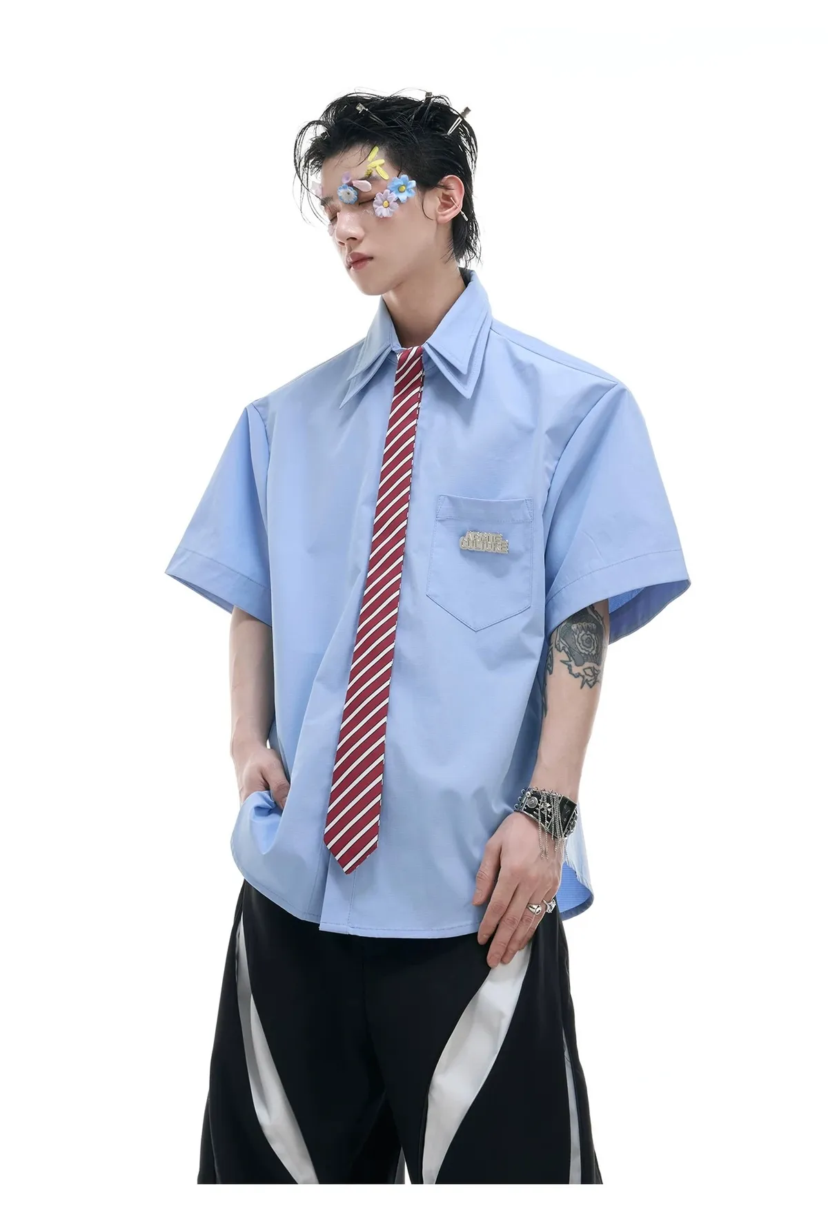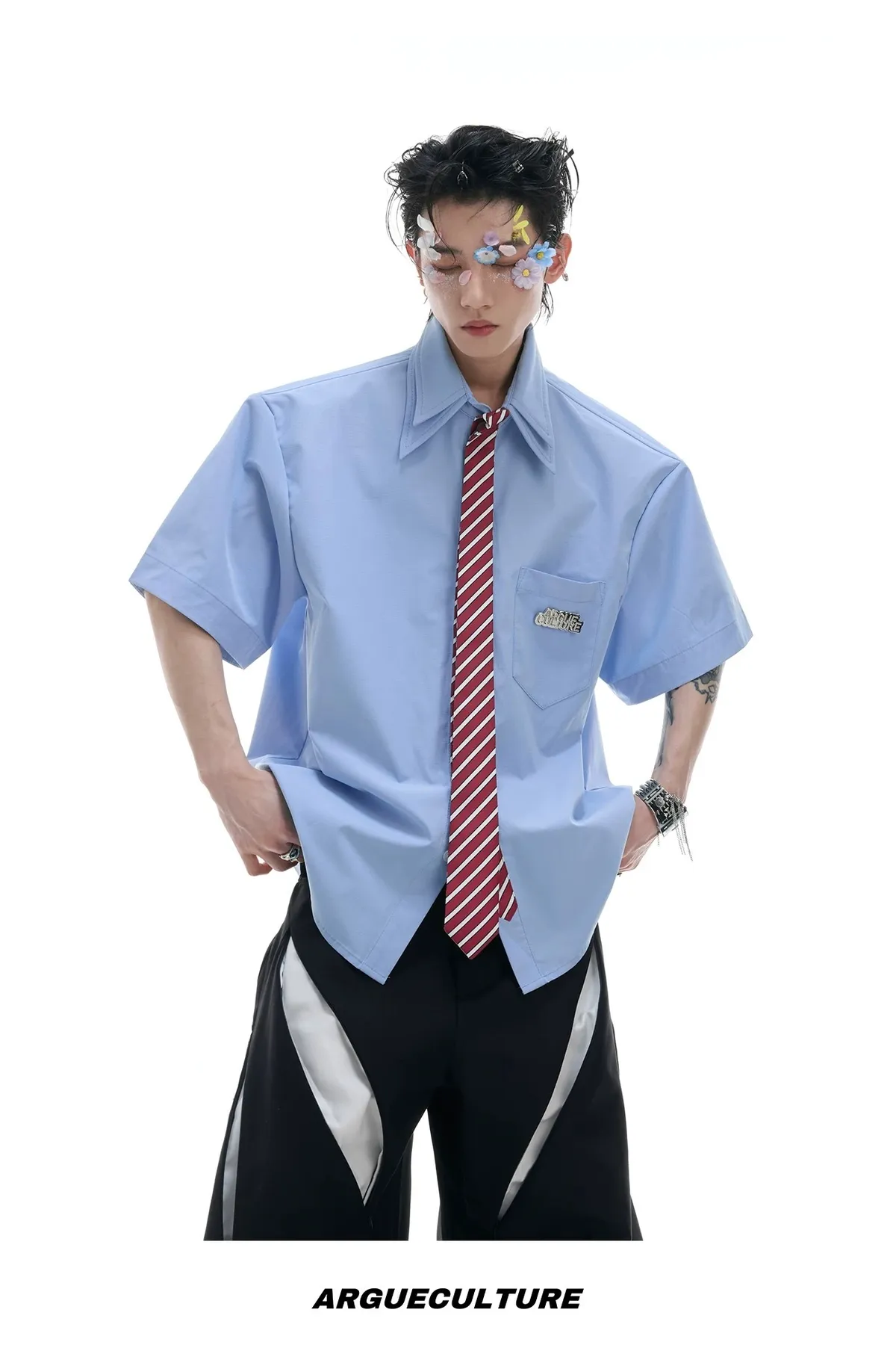 ARGUE 夏季小眾 復古領帶 雙層 襯衫(藍/白/紫)
