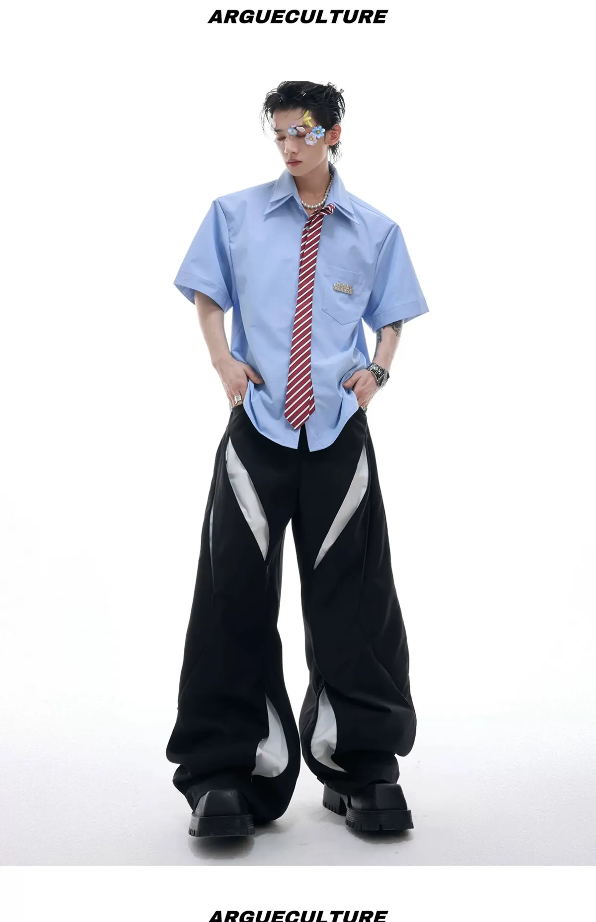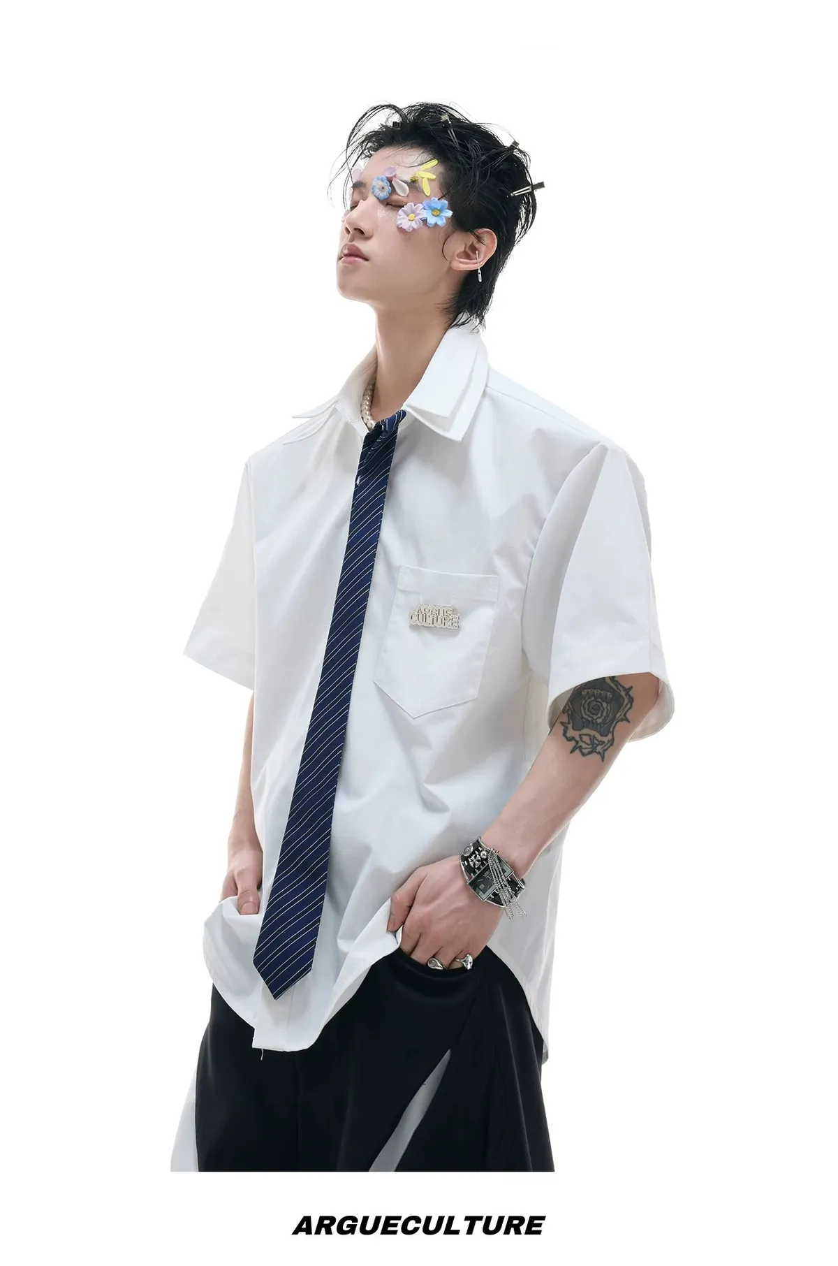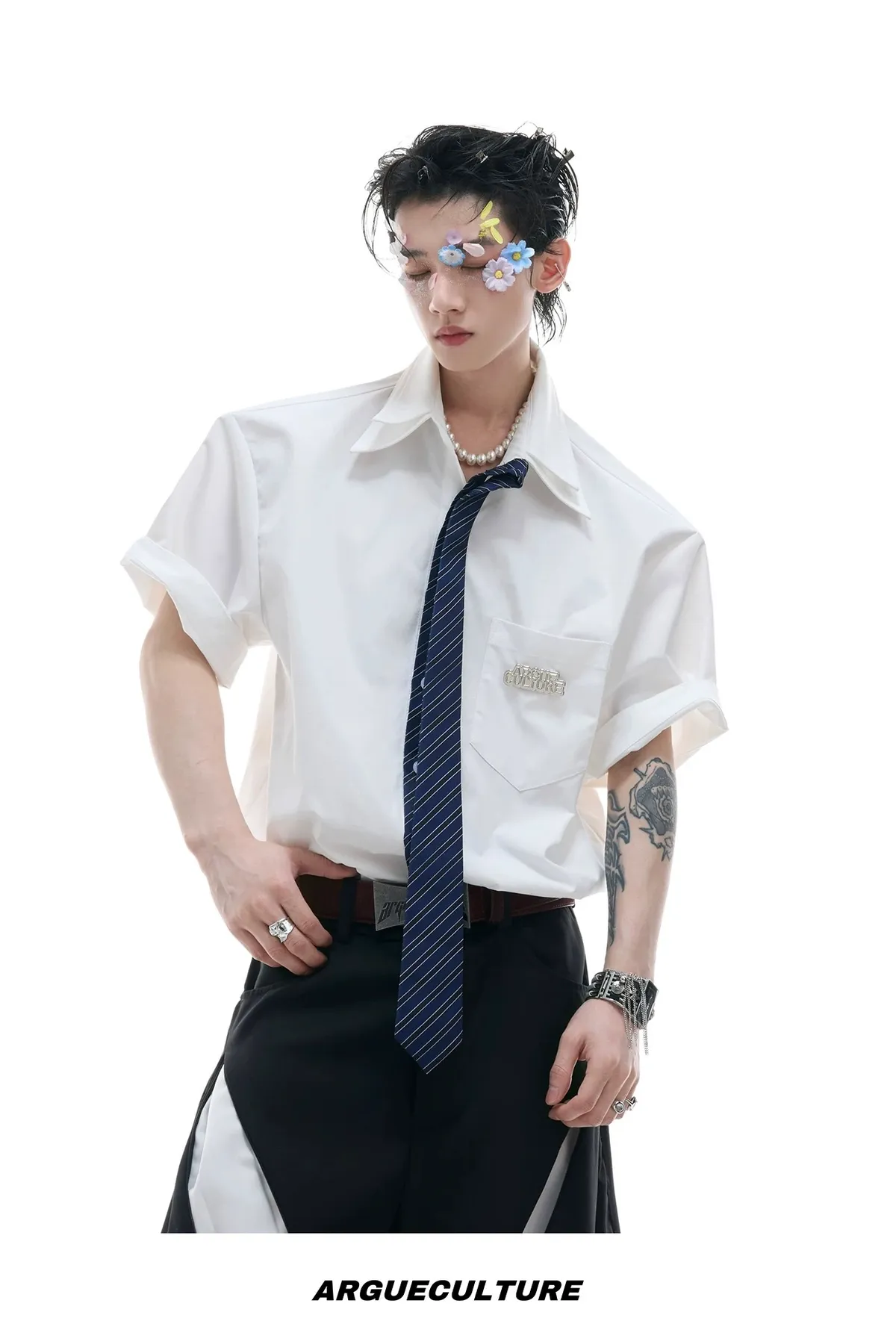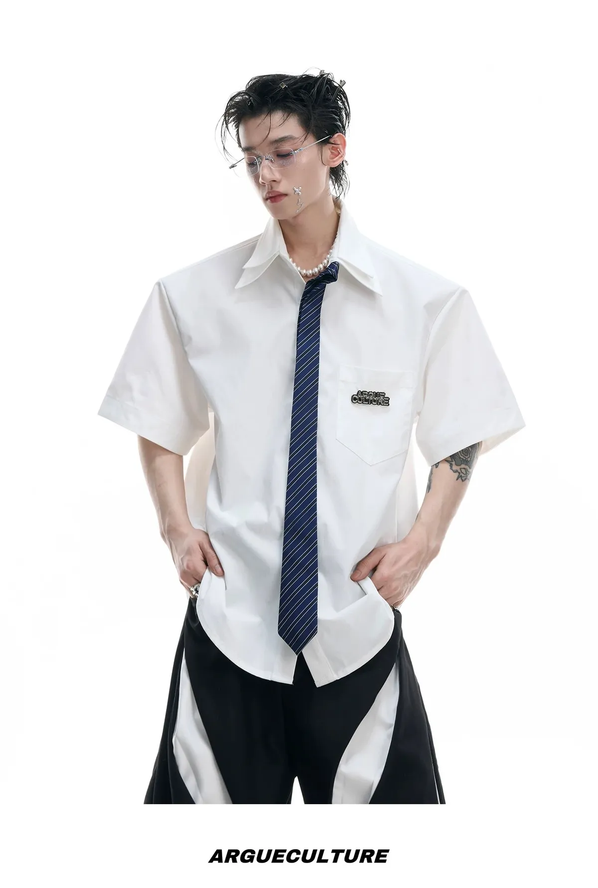 ARGUE 貴族感 假兩件拼接 襯衫短袖(黑/白/灰)