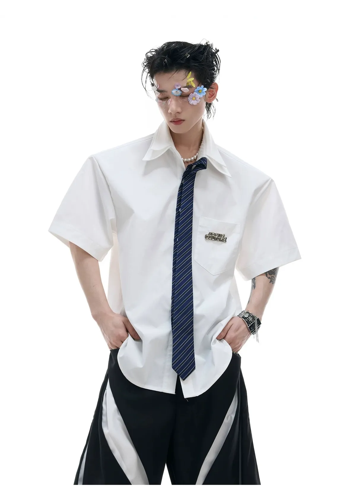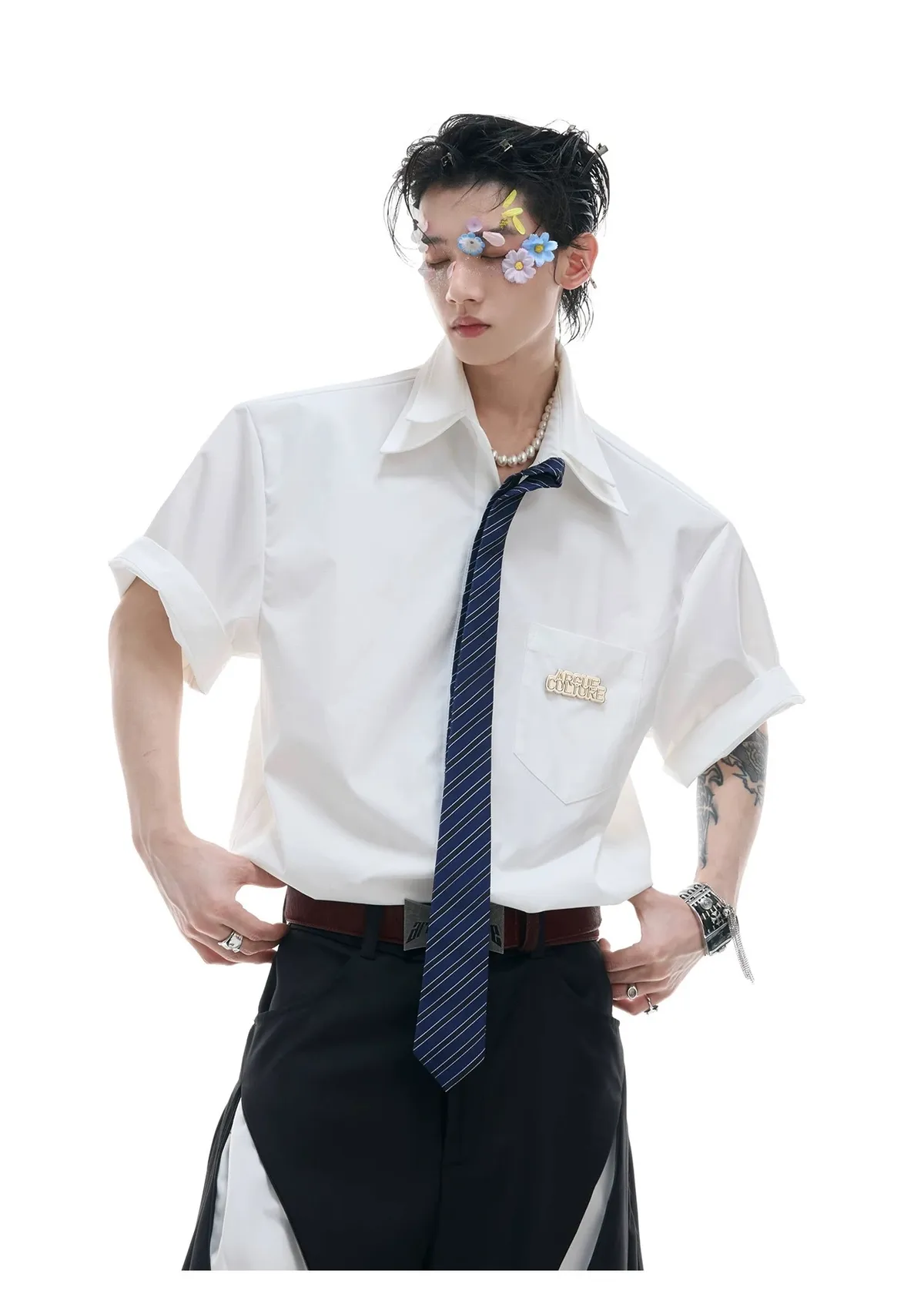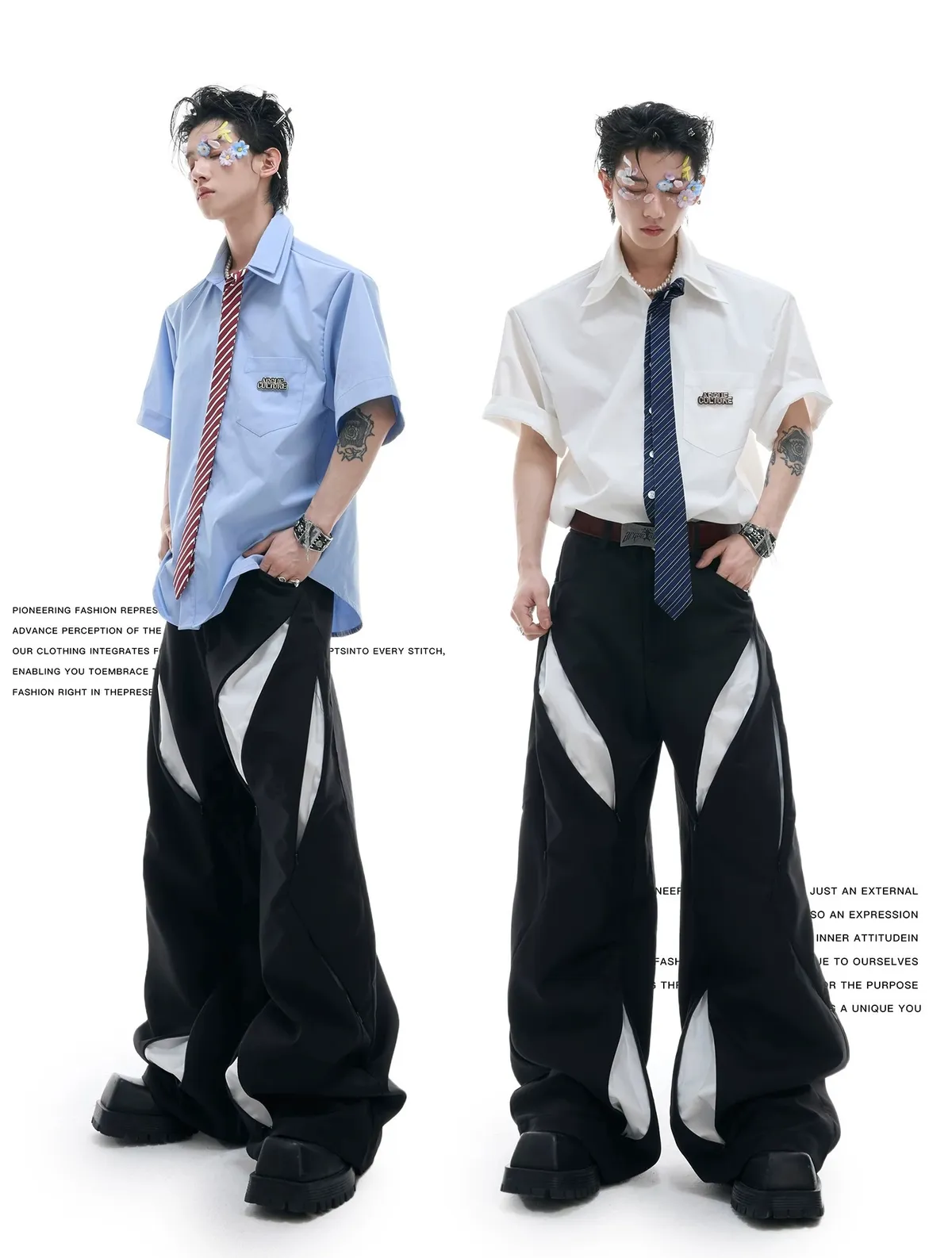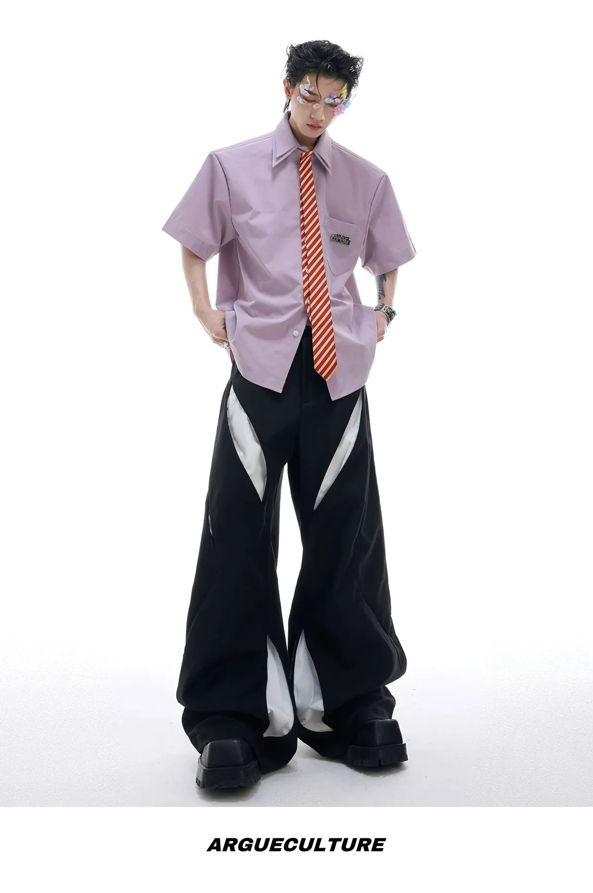 ARGUE 貴族感 假兩件拼接 襯衫短袖(黑/白/灰)