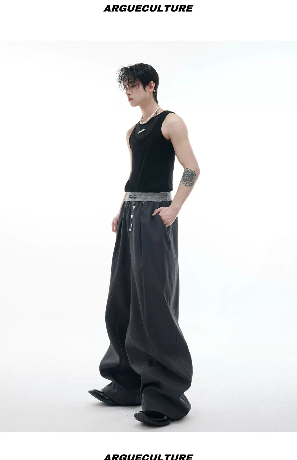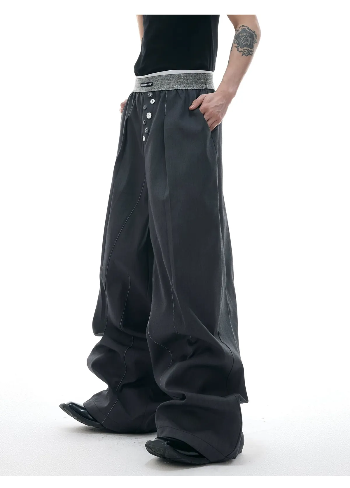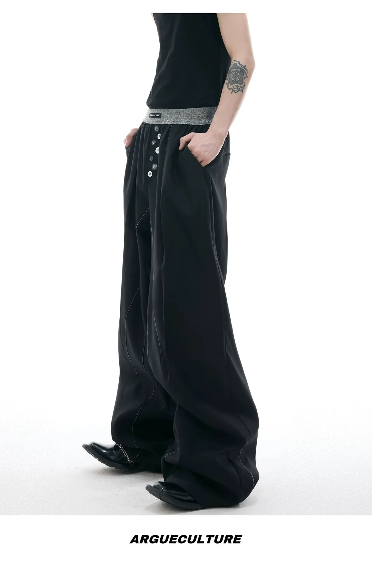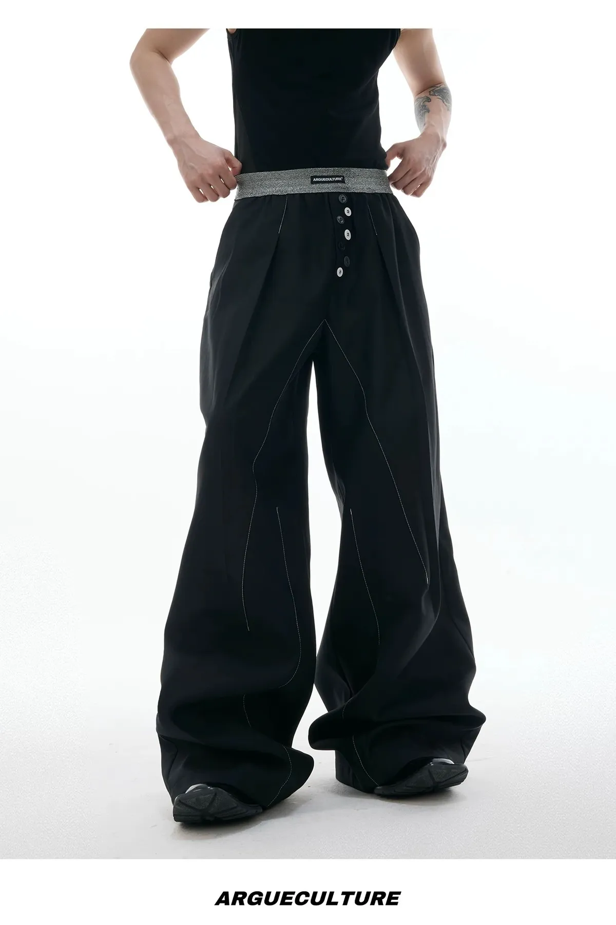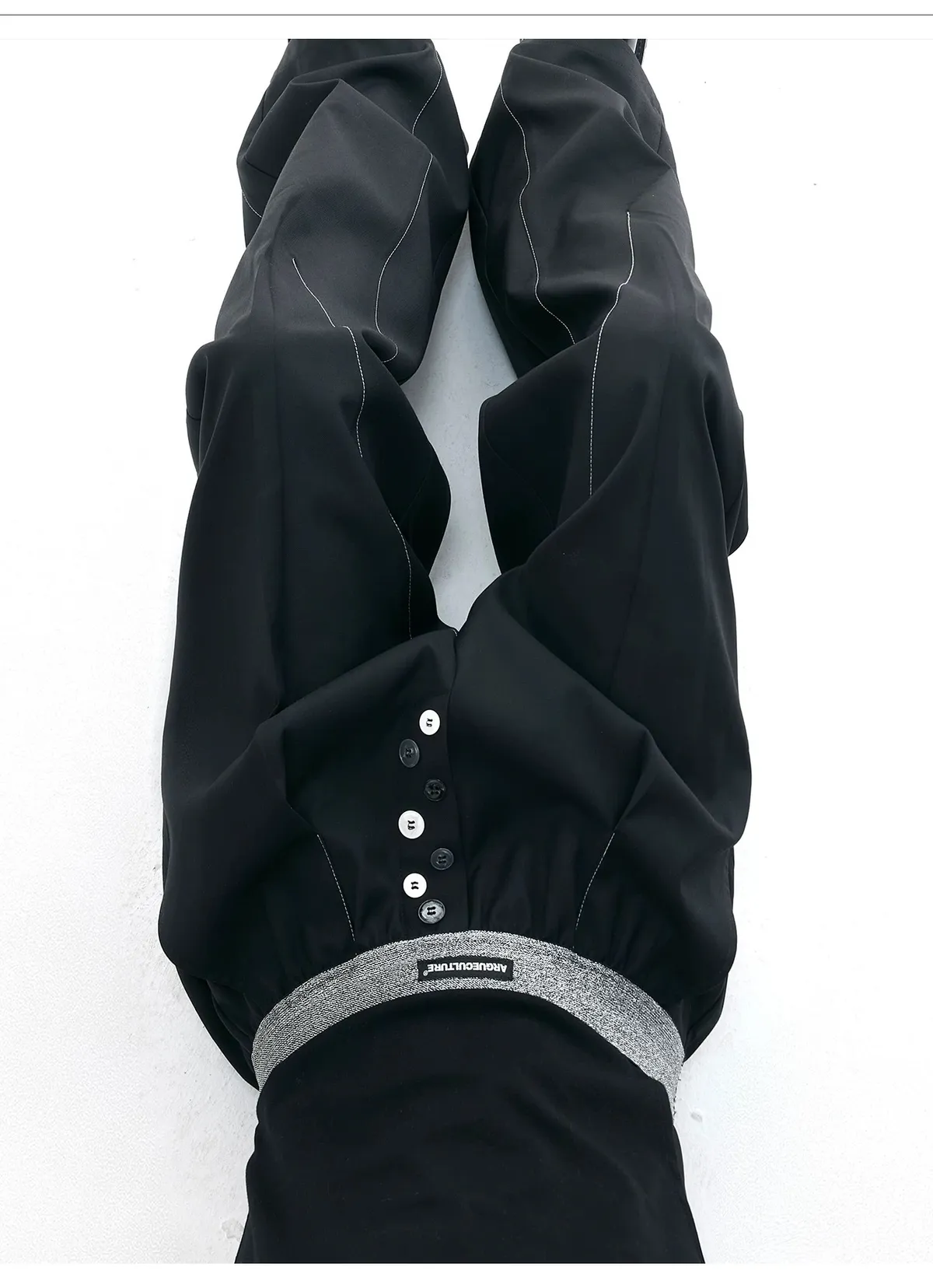 ARGUE 手工縫針 繩索垂墜 西裝褲(黑色)