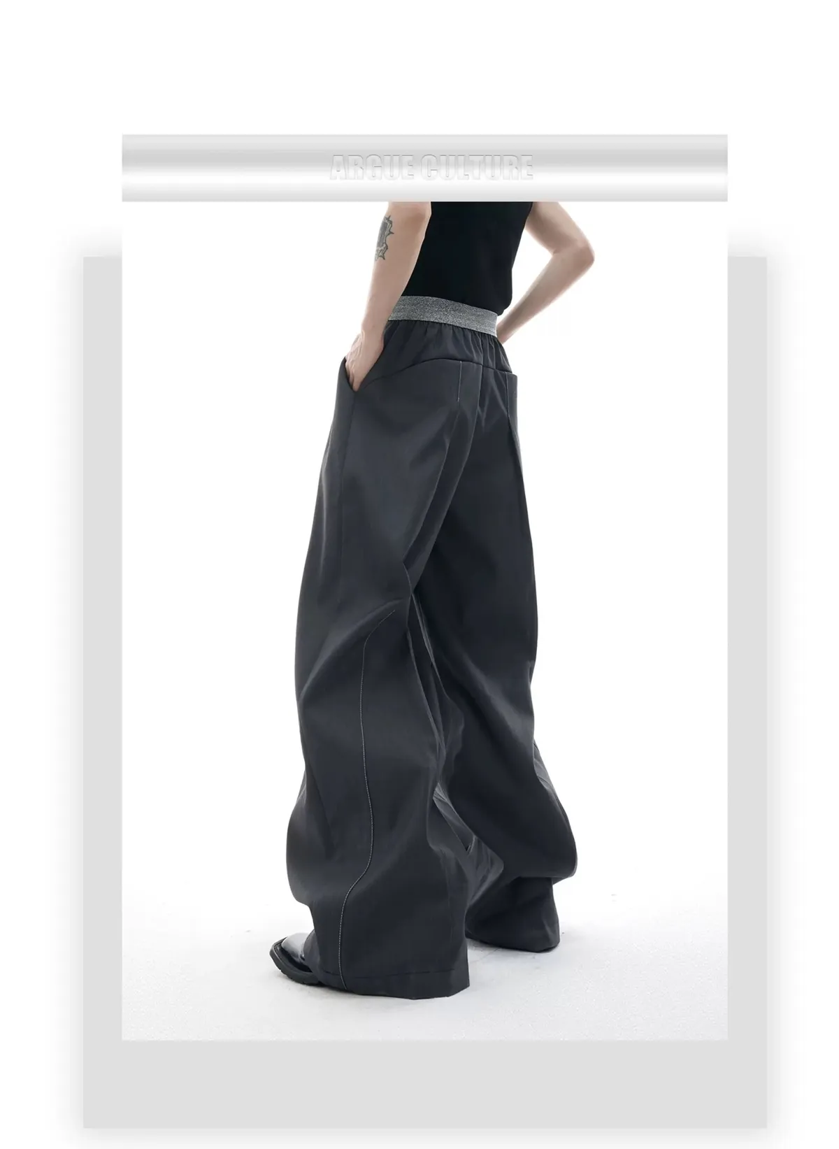 ARGUE 立體剪裁 撞色縫線 西裝褲(黑/灰)