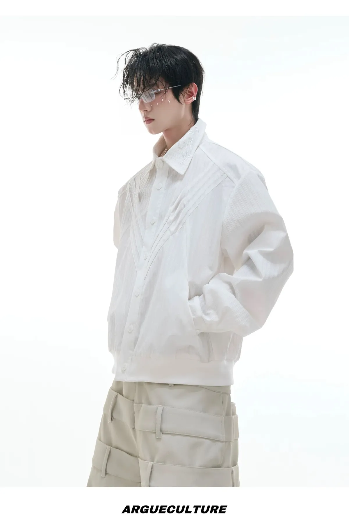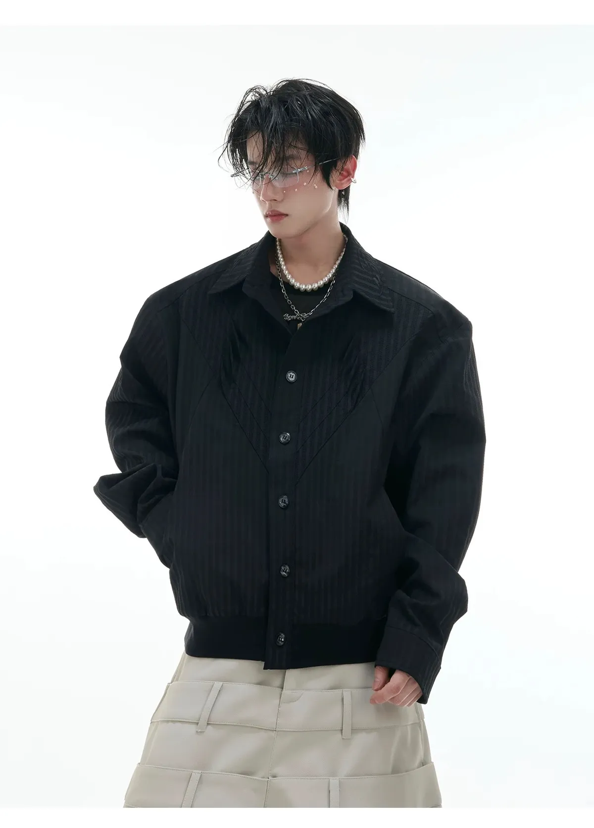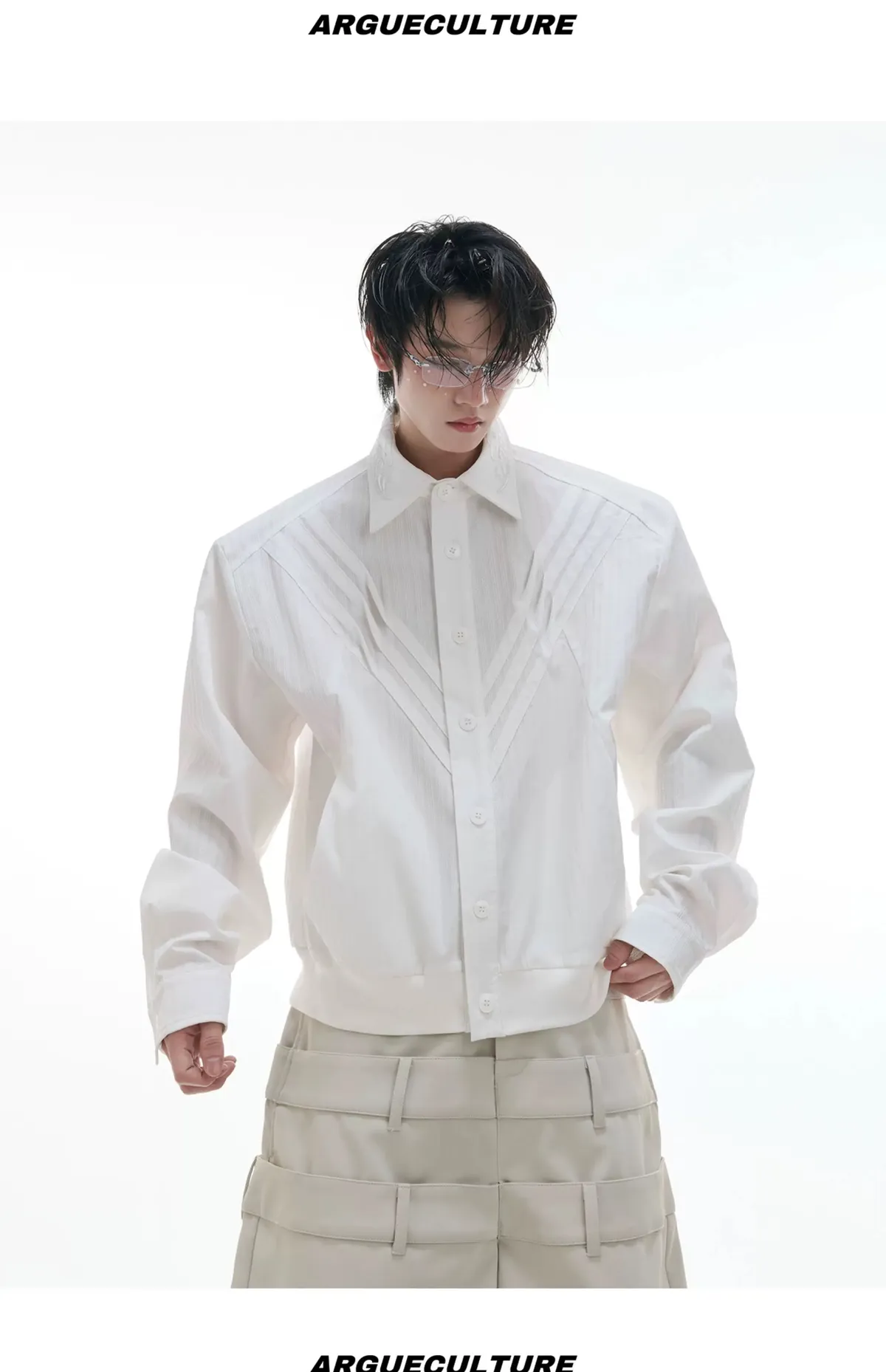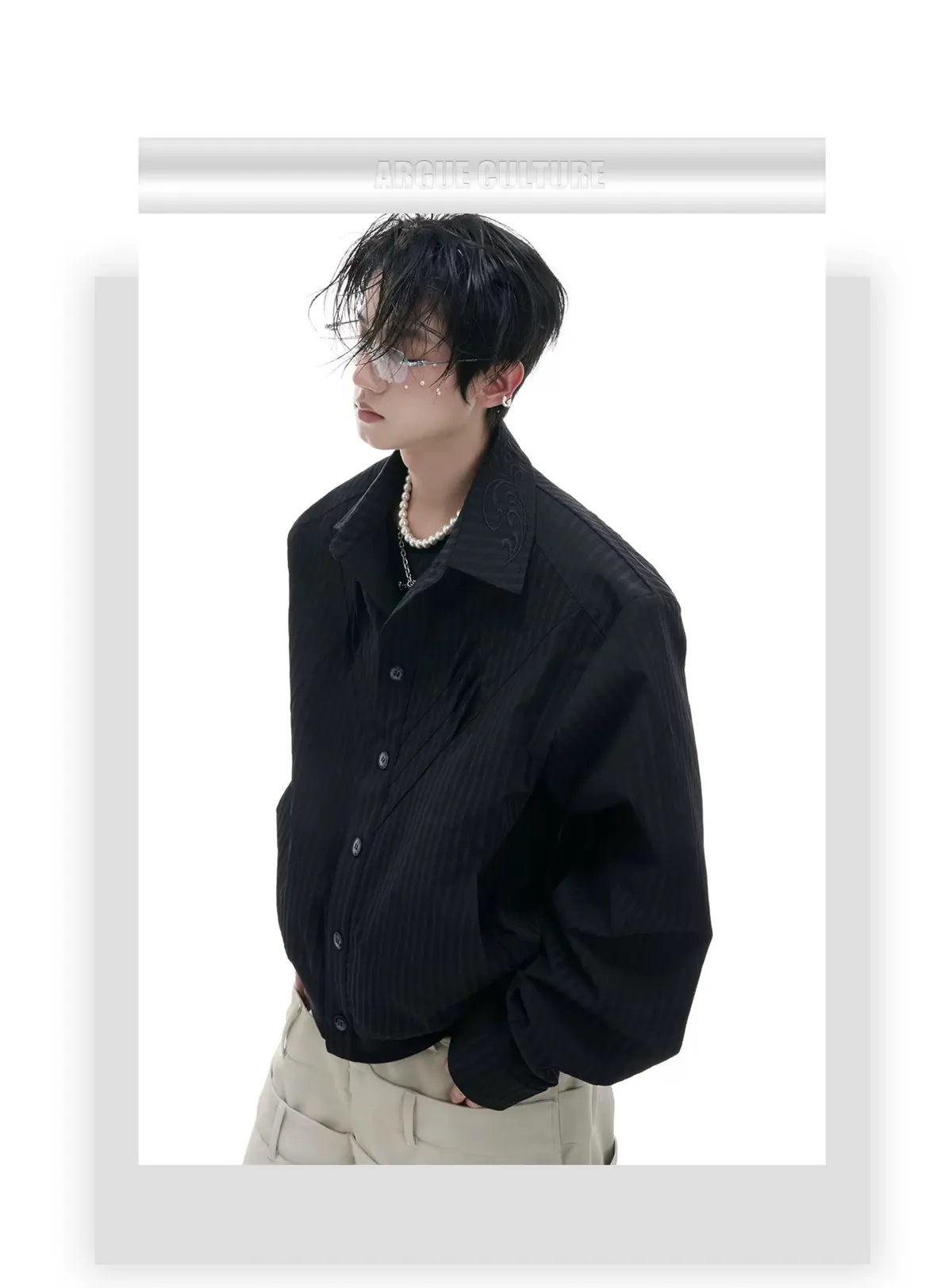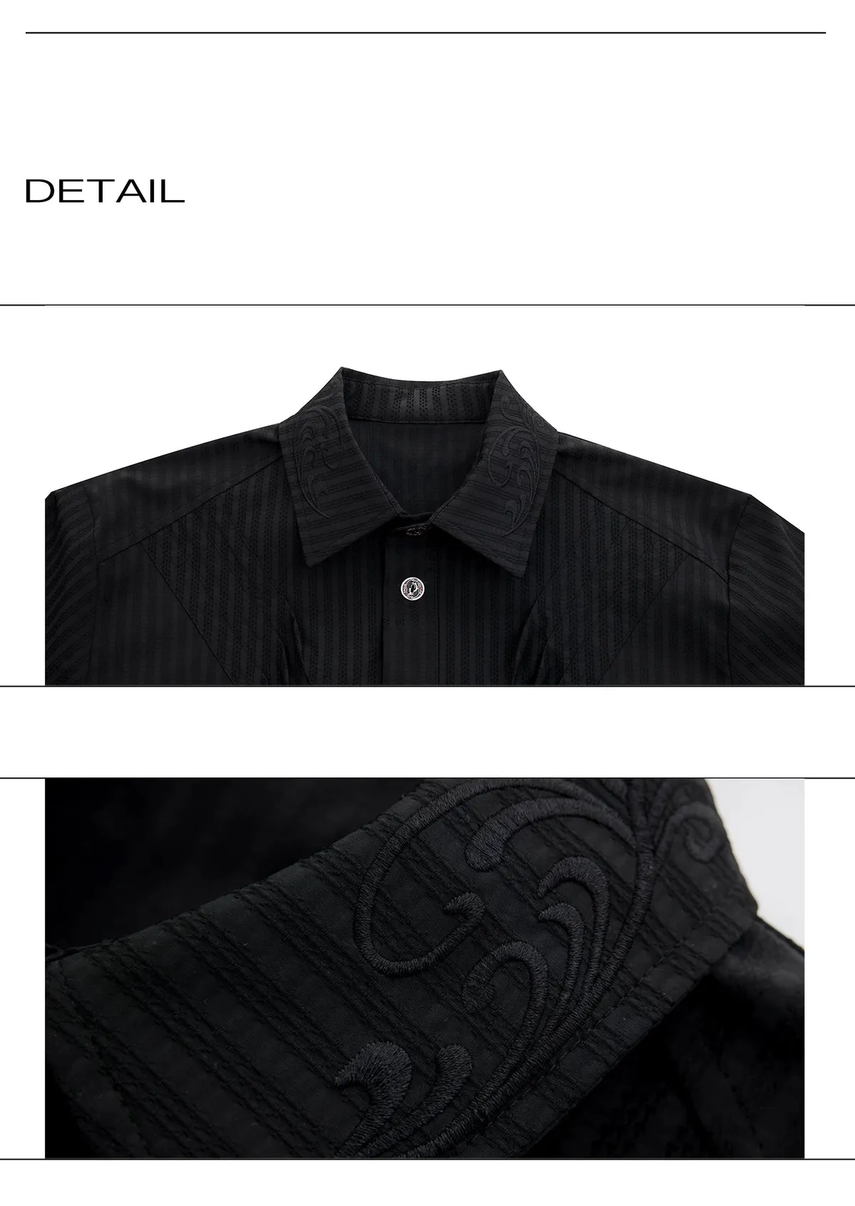 ARGUE 宮廷風 立體條紋 抗皺 襯衫(黑/白)