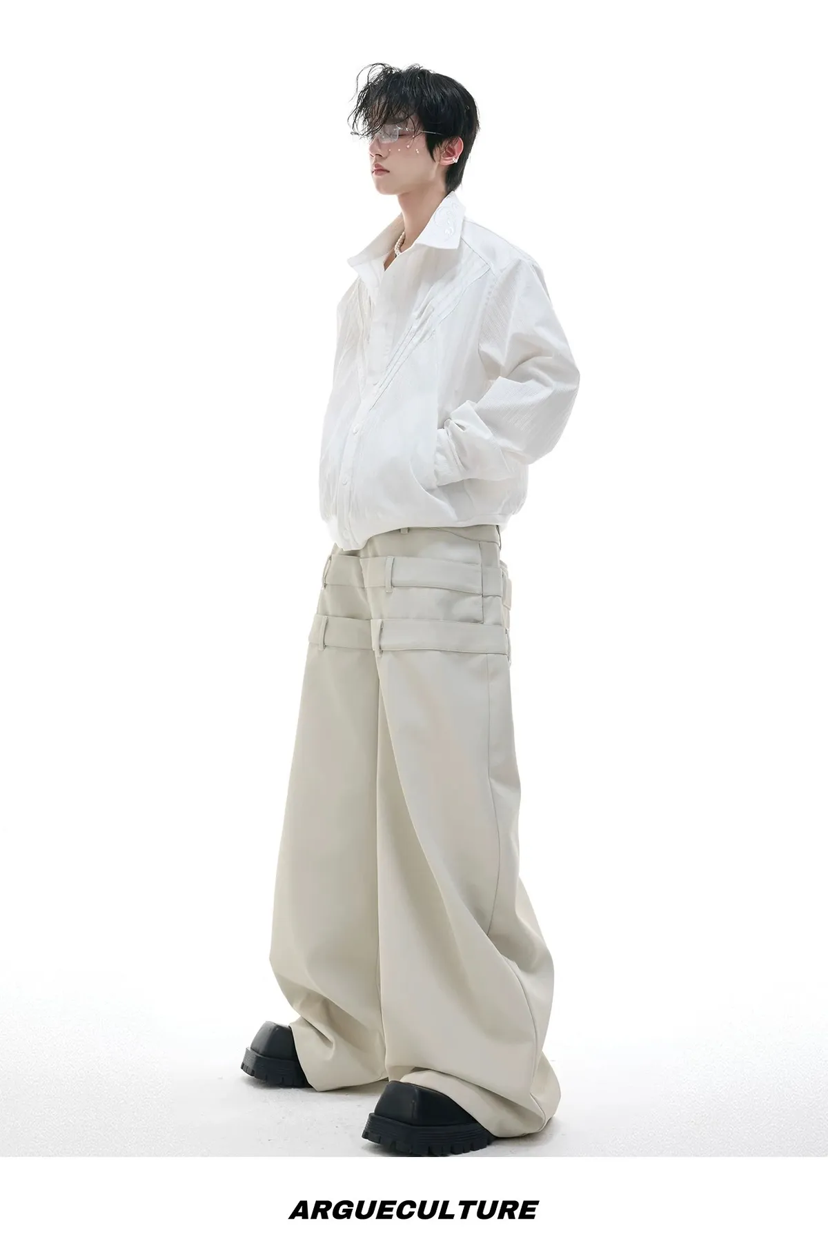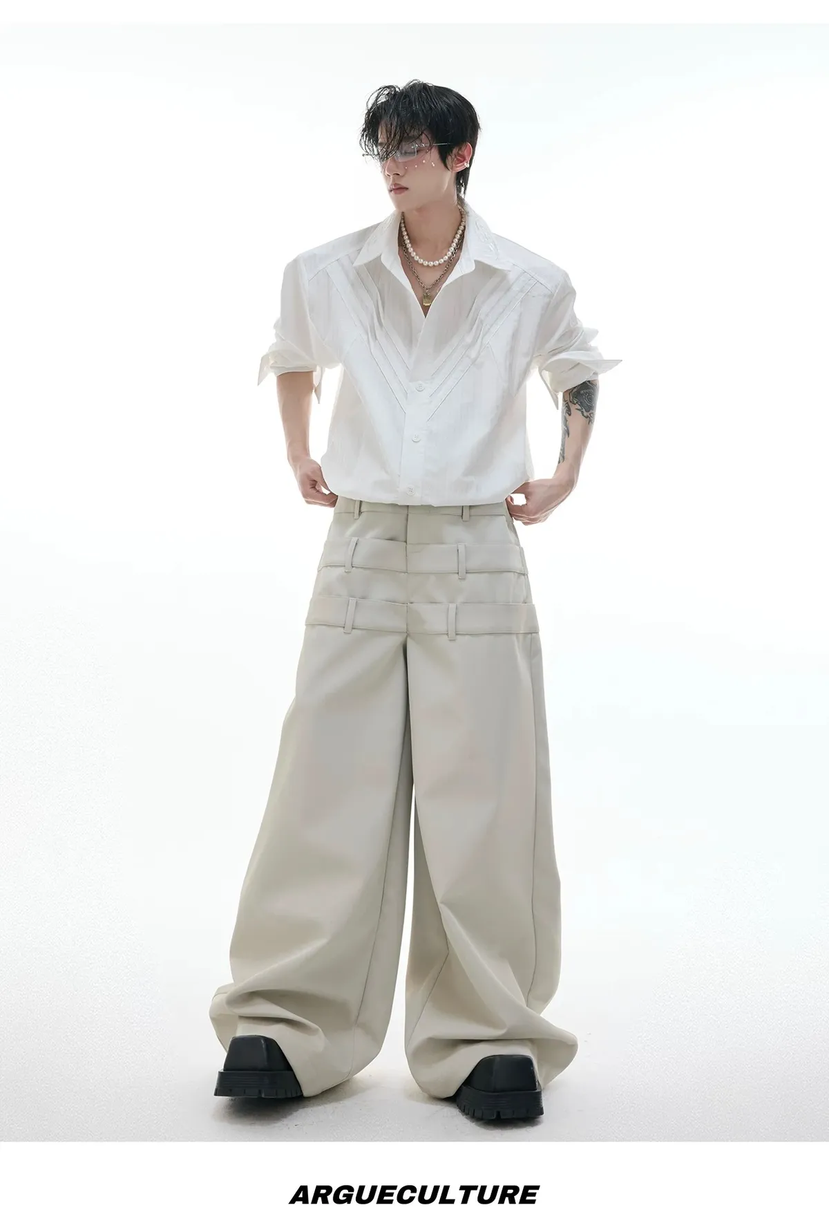 ARGUE 夏季小眾 復古領帶 雙層 襯衫(藍/白/紫)