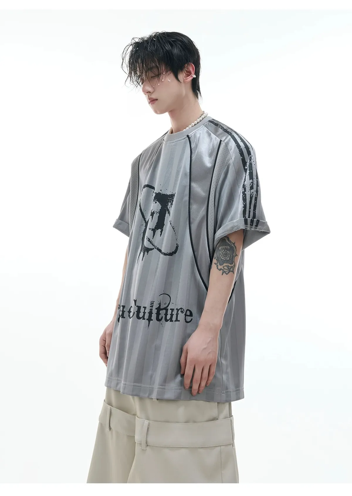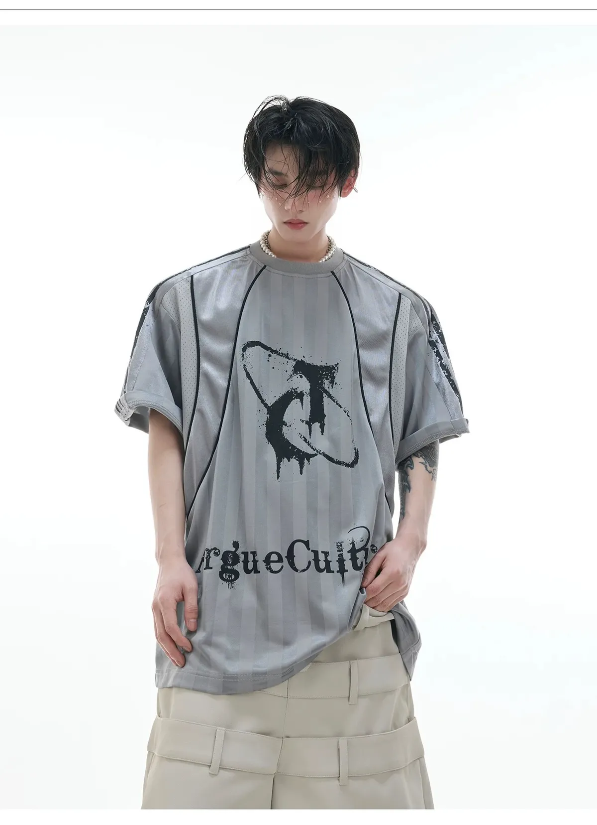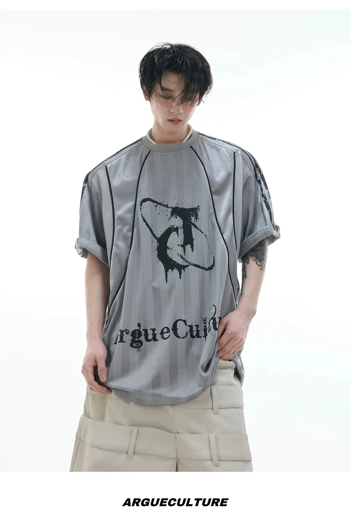 ARGUE 做舊LOGO 剪裁球衣 短袖(灰/白)