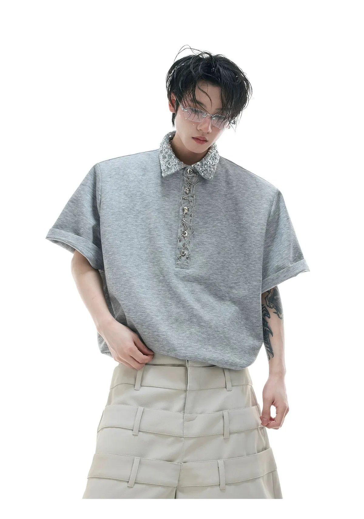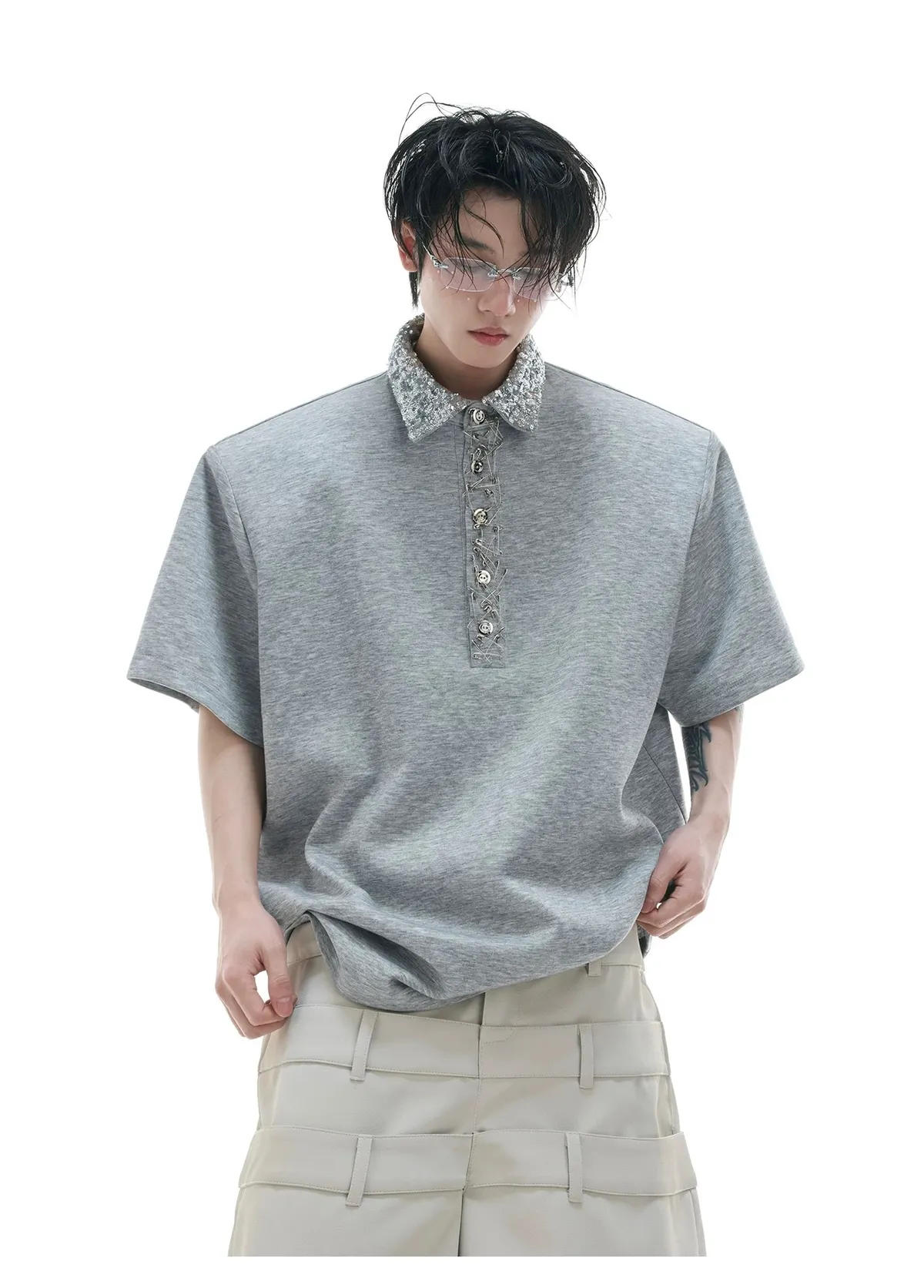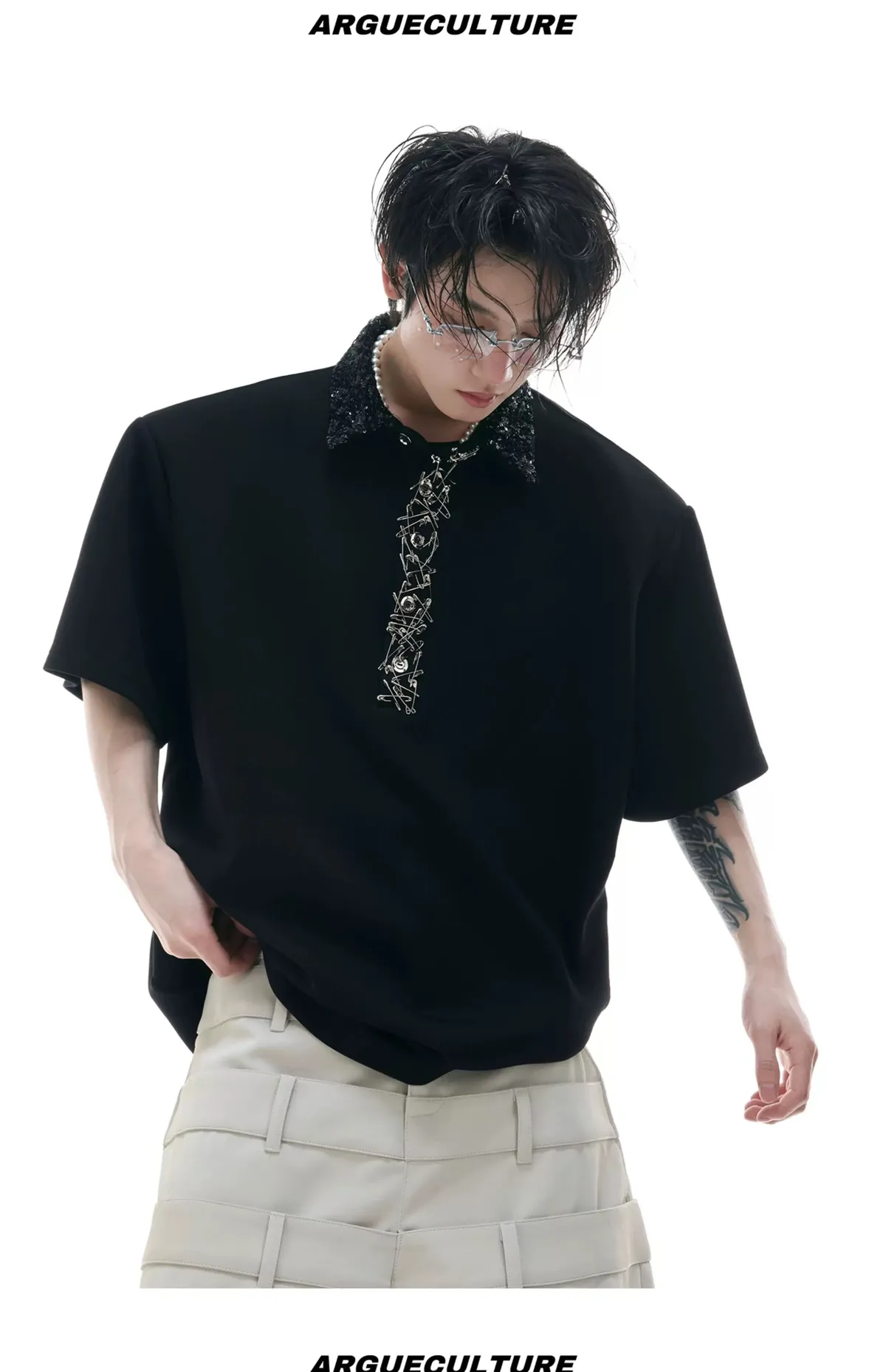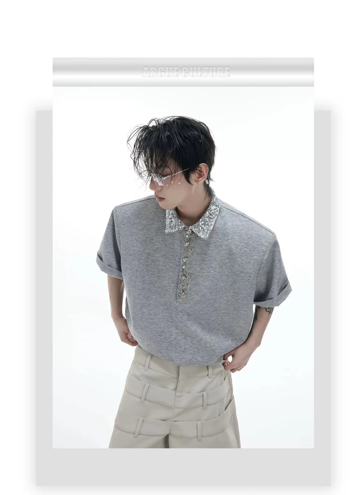 ARGUE 別針領 亮片 POLO衫(黑/白/灰)