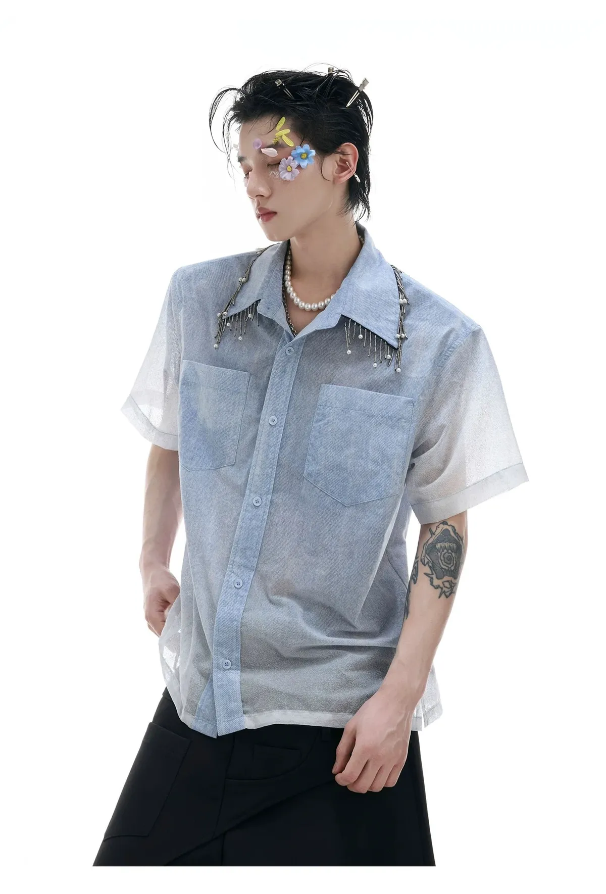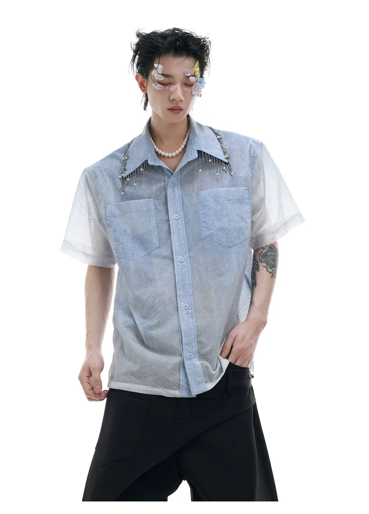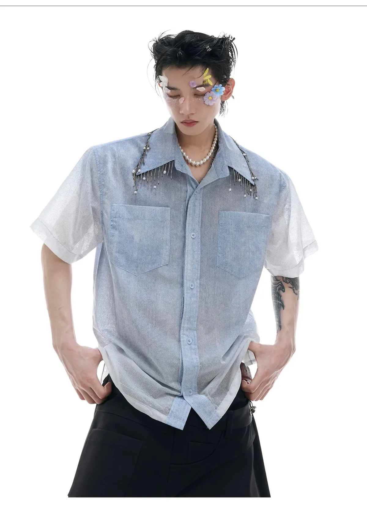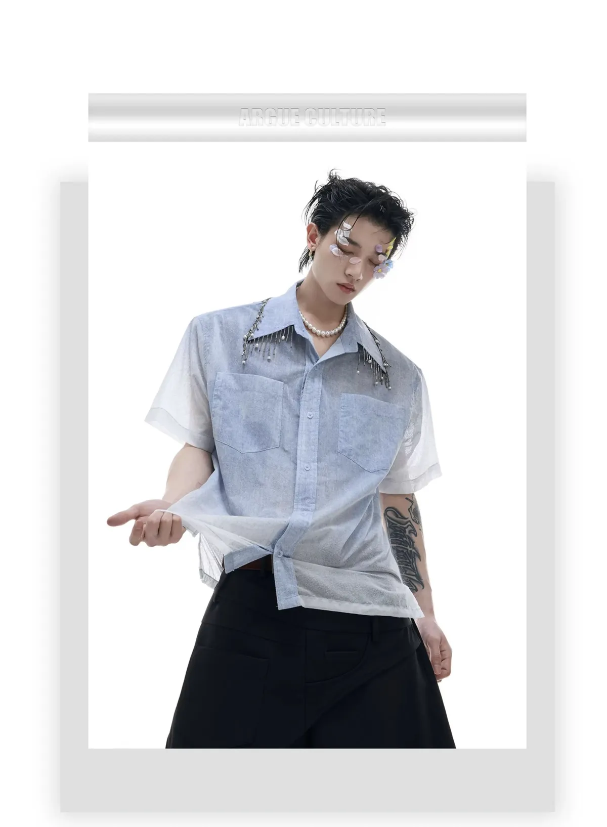ARGUE 藍白漸層 流蘇領 冰感襯衫(藍色)