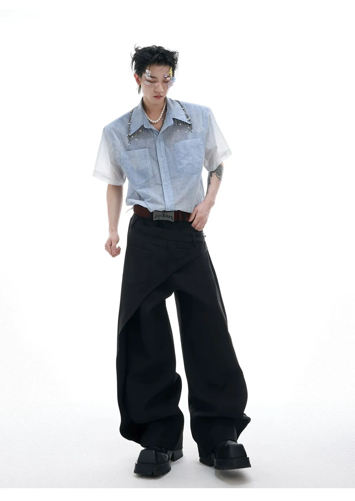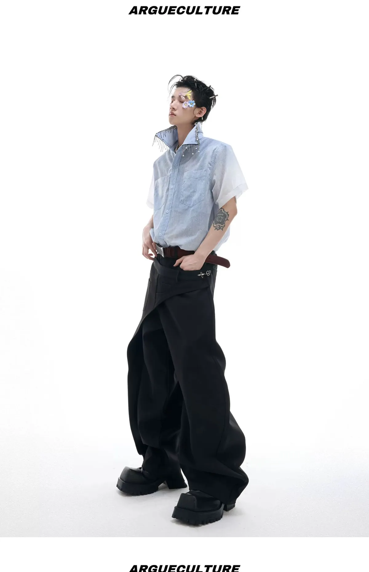 ARGUE 貴族感 假兩件拼接 襯衫短袖(黑/白/灰)