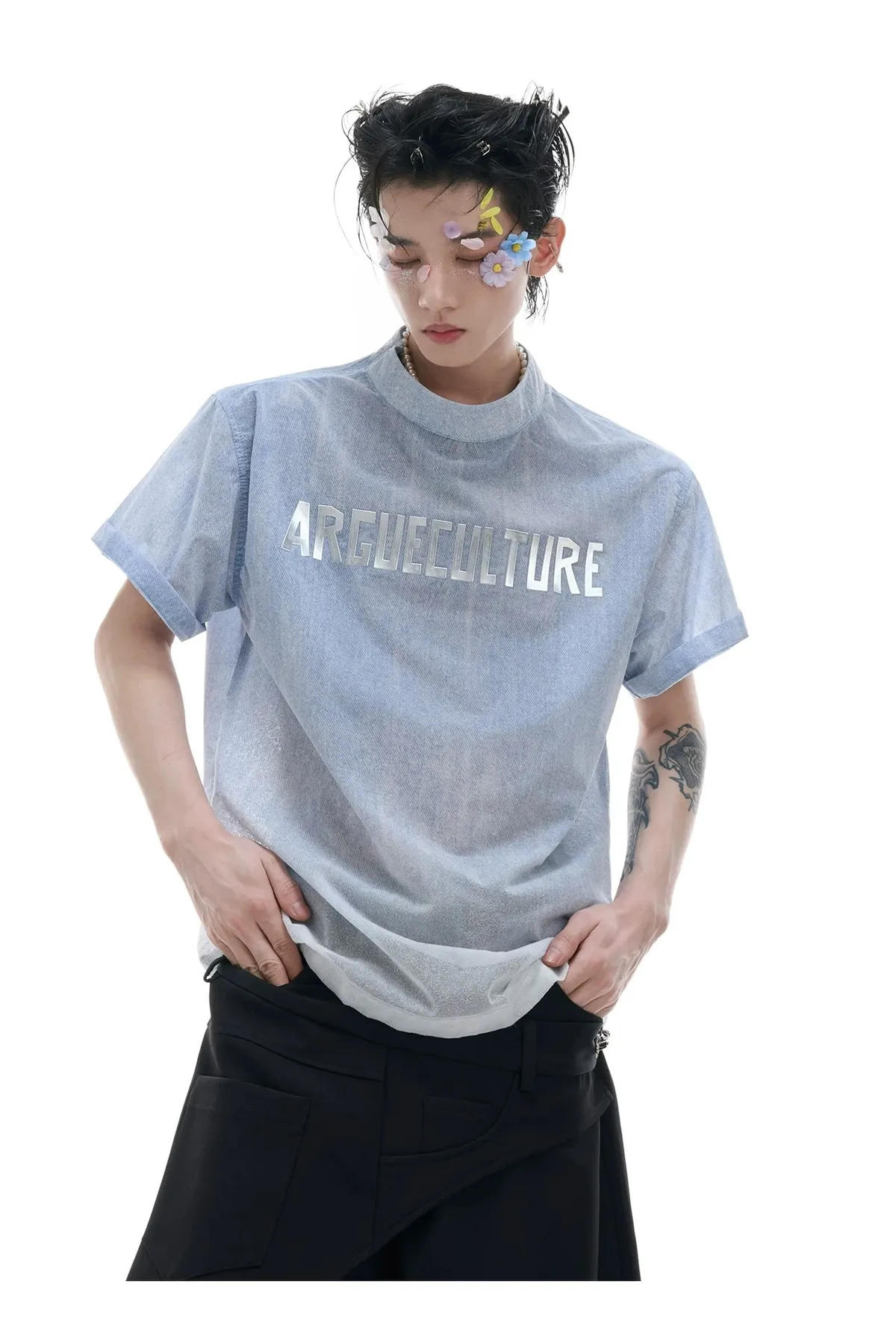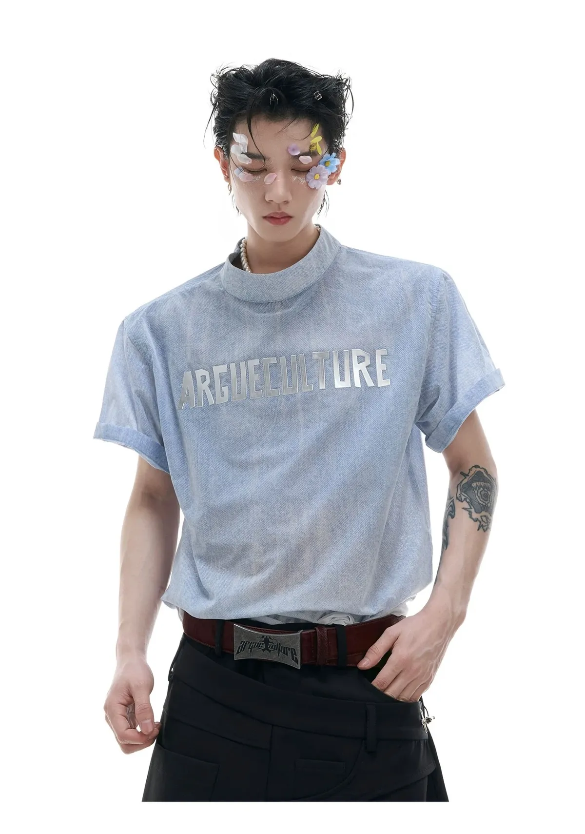ARGUE 做舊LOGO 剪裁球衣 短袖(灰/白)