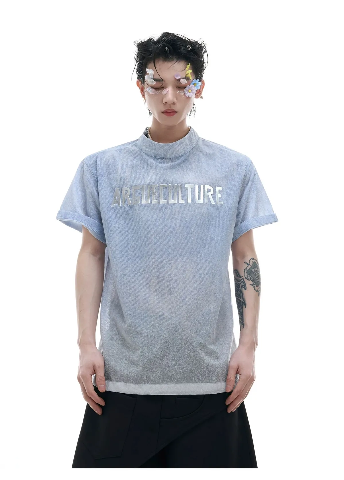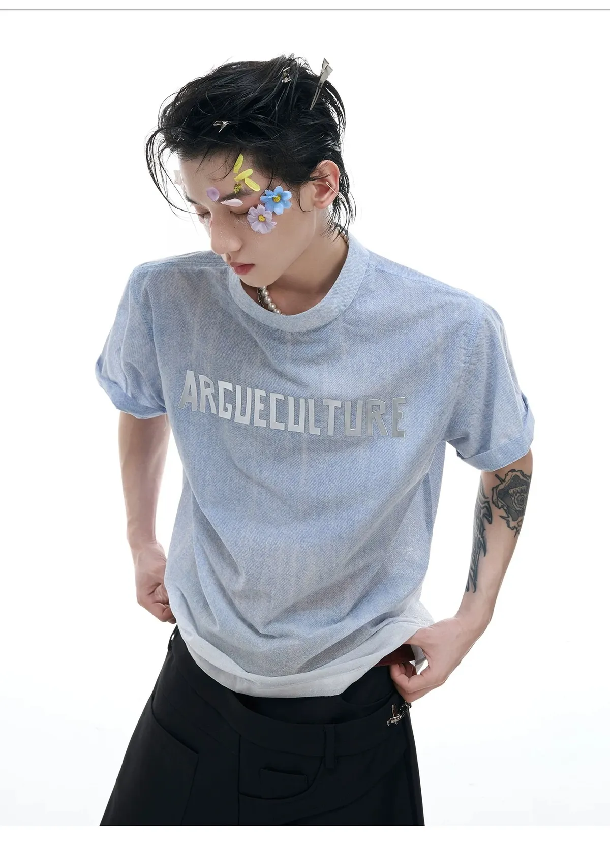 ARGUE 仿牛仔漸層 BOXY 短袖(藍色)