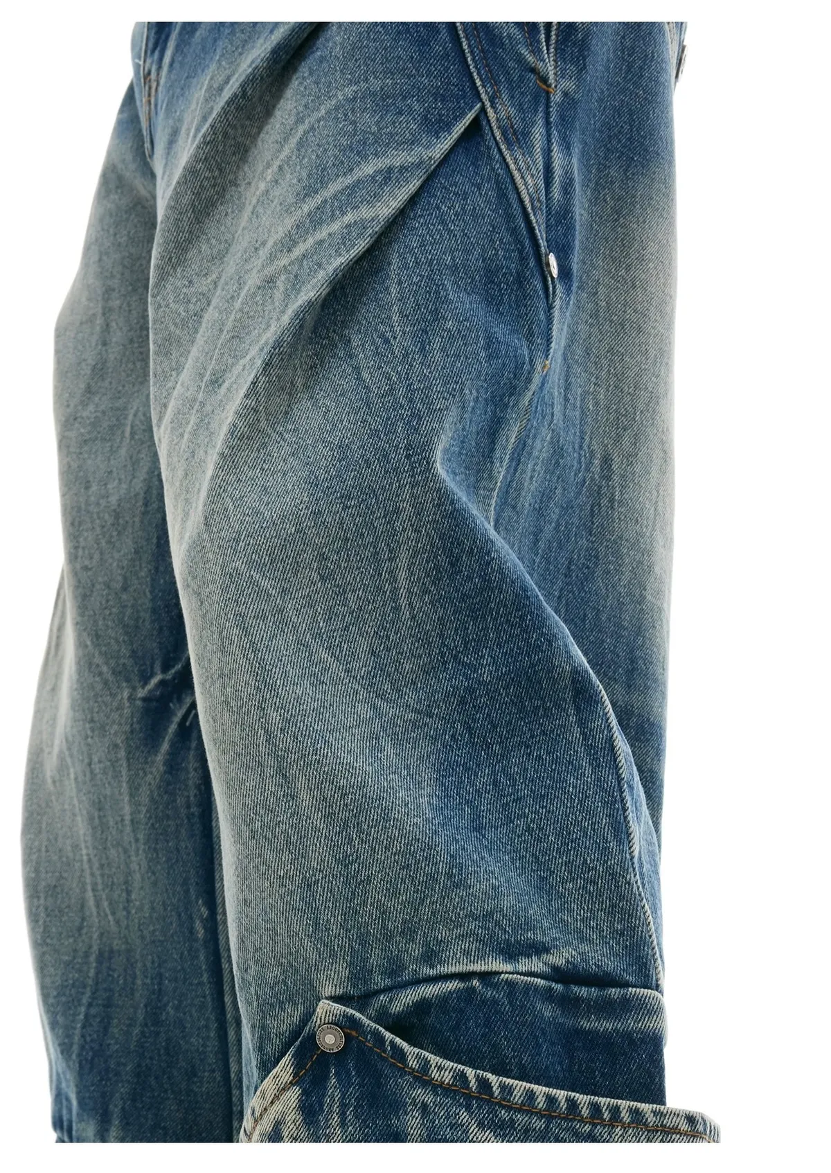 ARGUE 原漿丹寧 復古 褶皺 闊腿 牛仔褲(深藍)