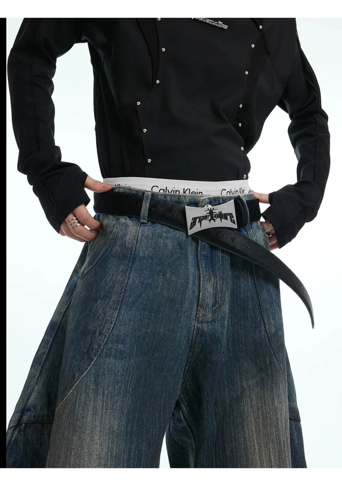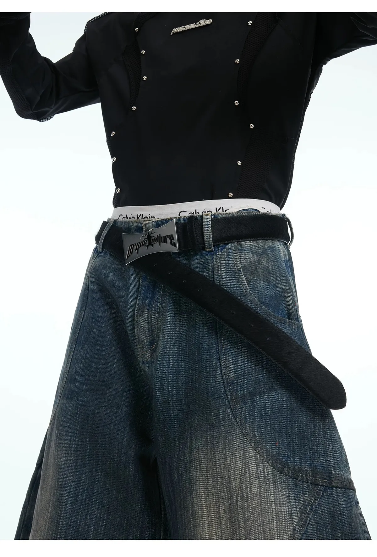 RICHILL 馬毛 龐克卯釘 煙頭金屬 皮帶(黑色)