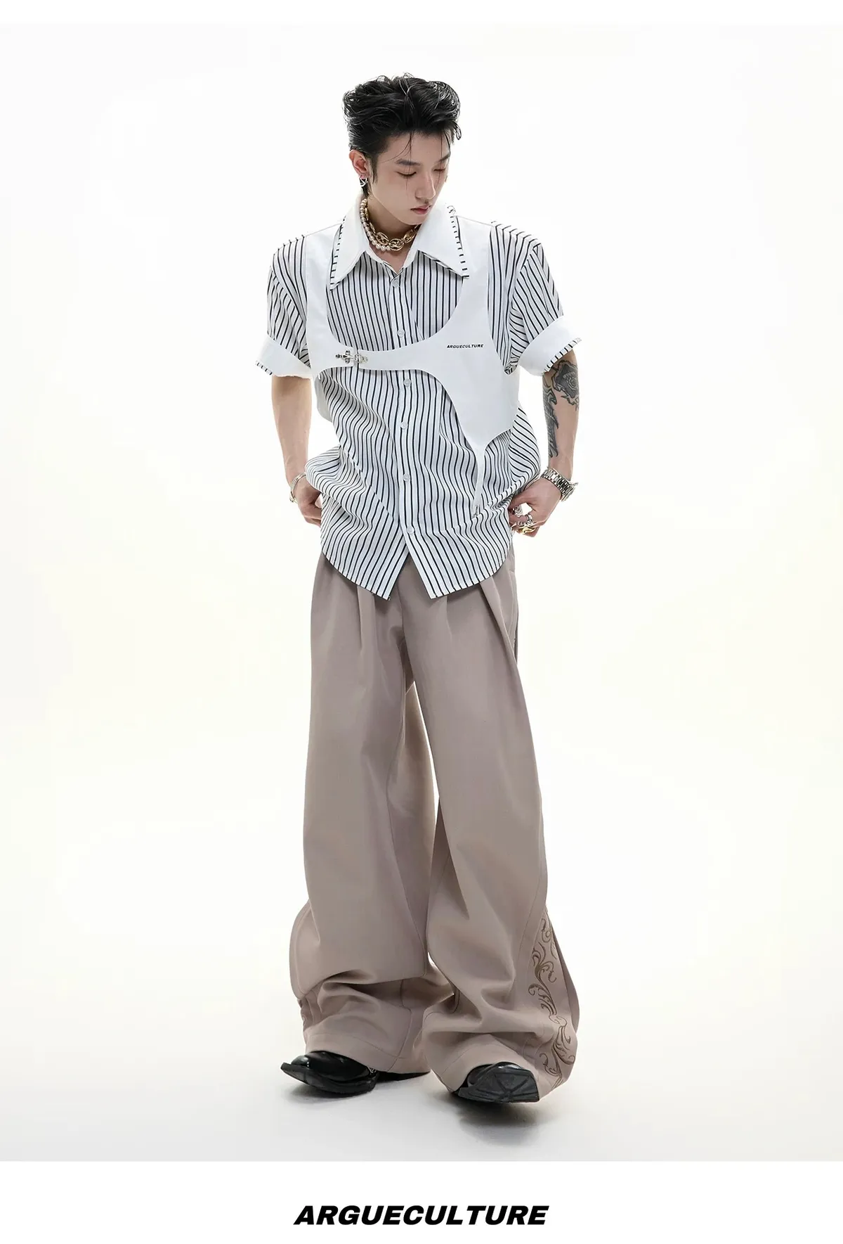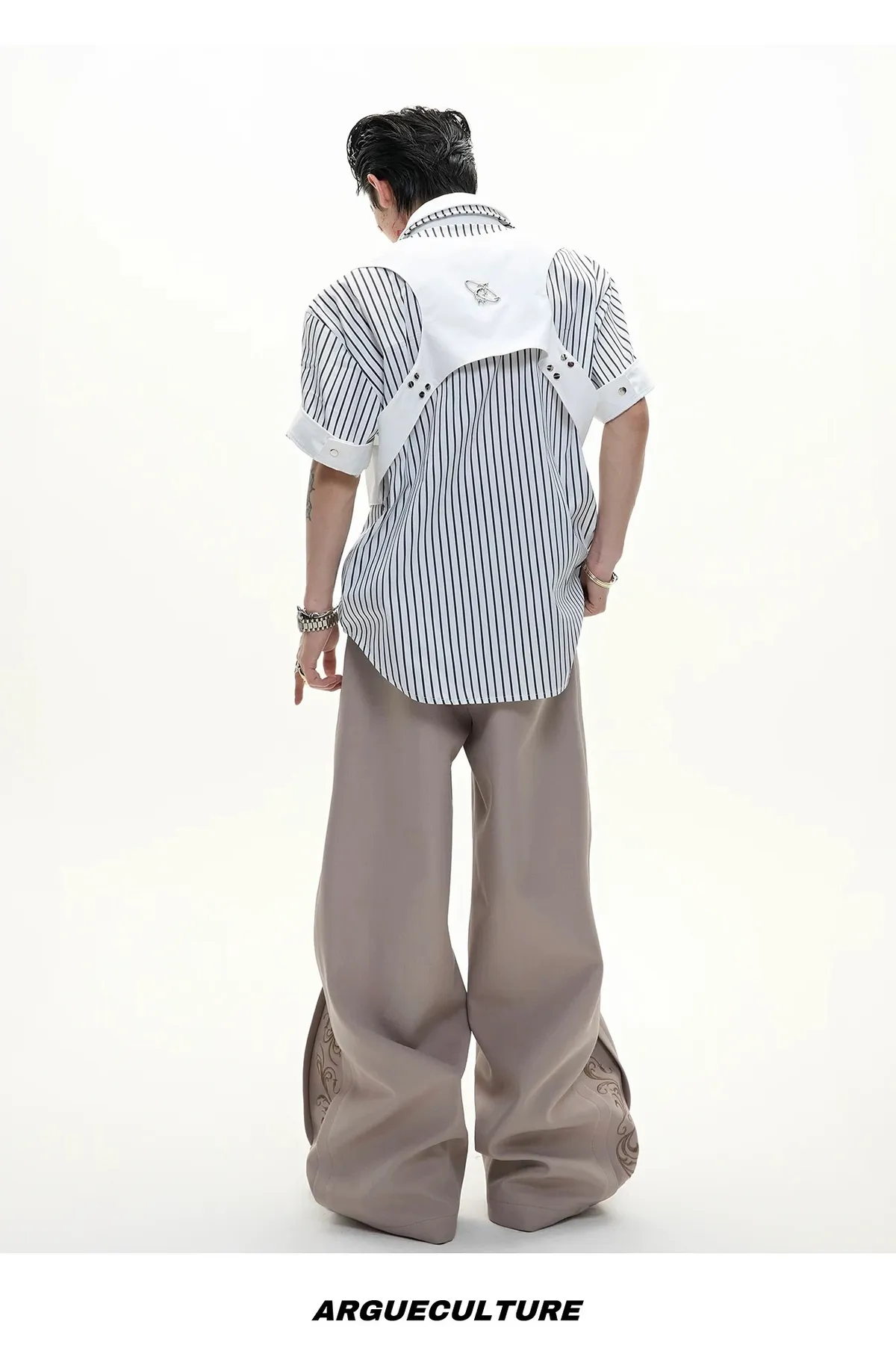 ARGUE 老錢風 微喇叭 刺繡條紋 西裝褲(黑/棕)