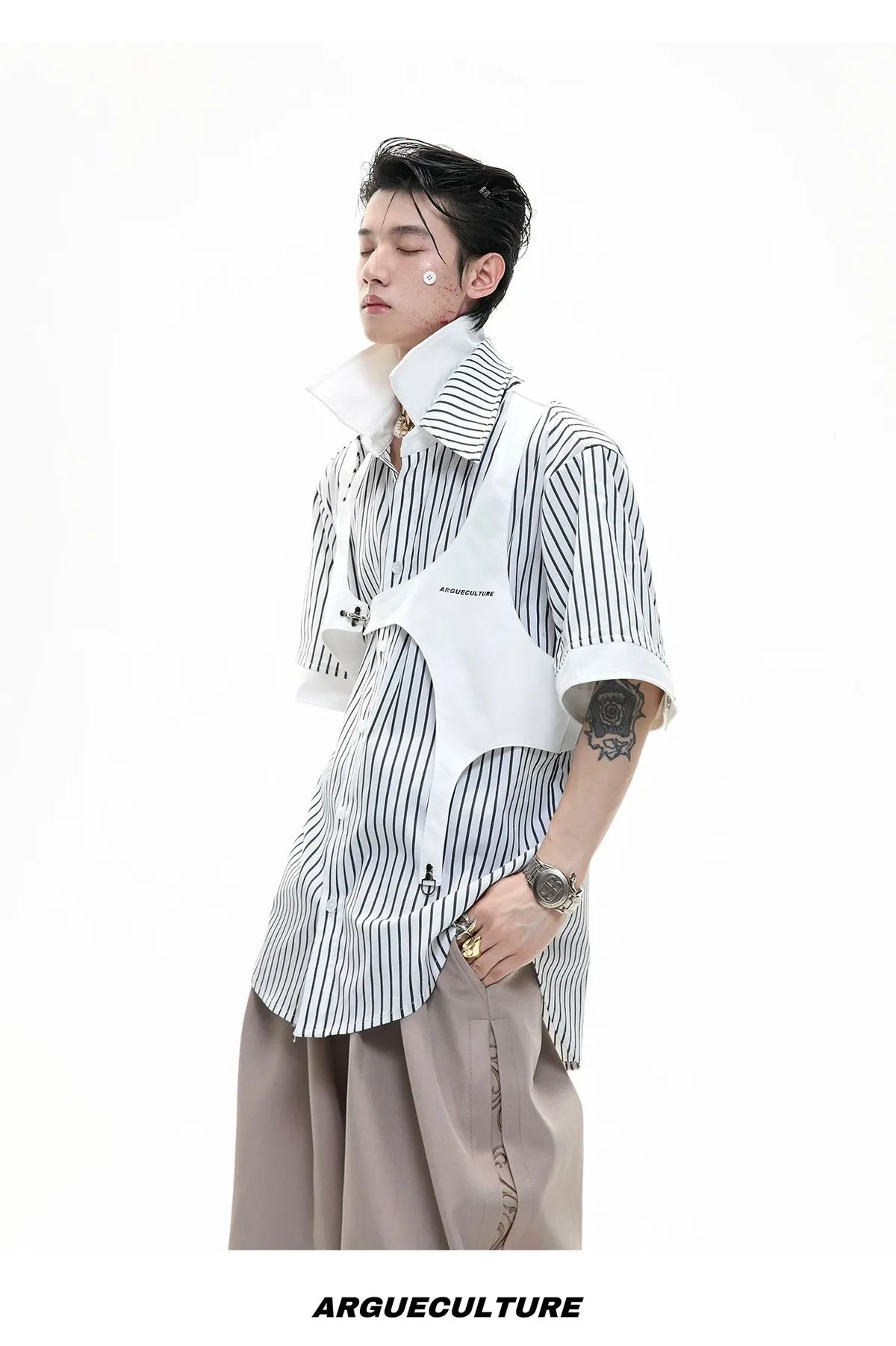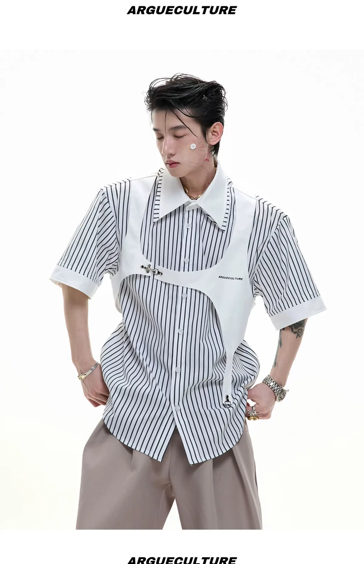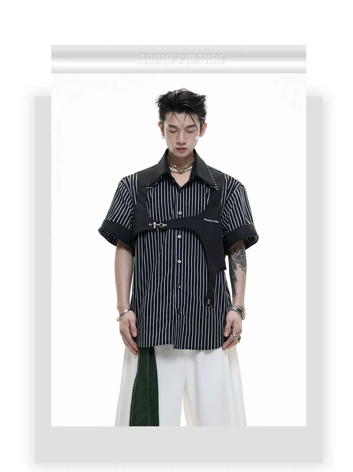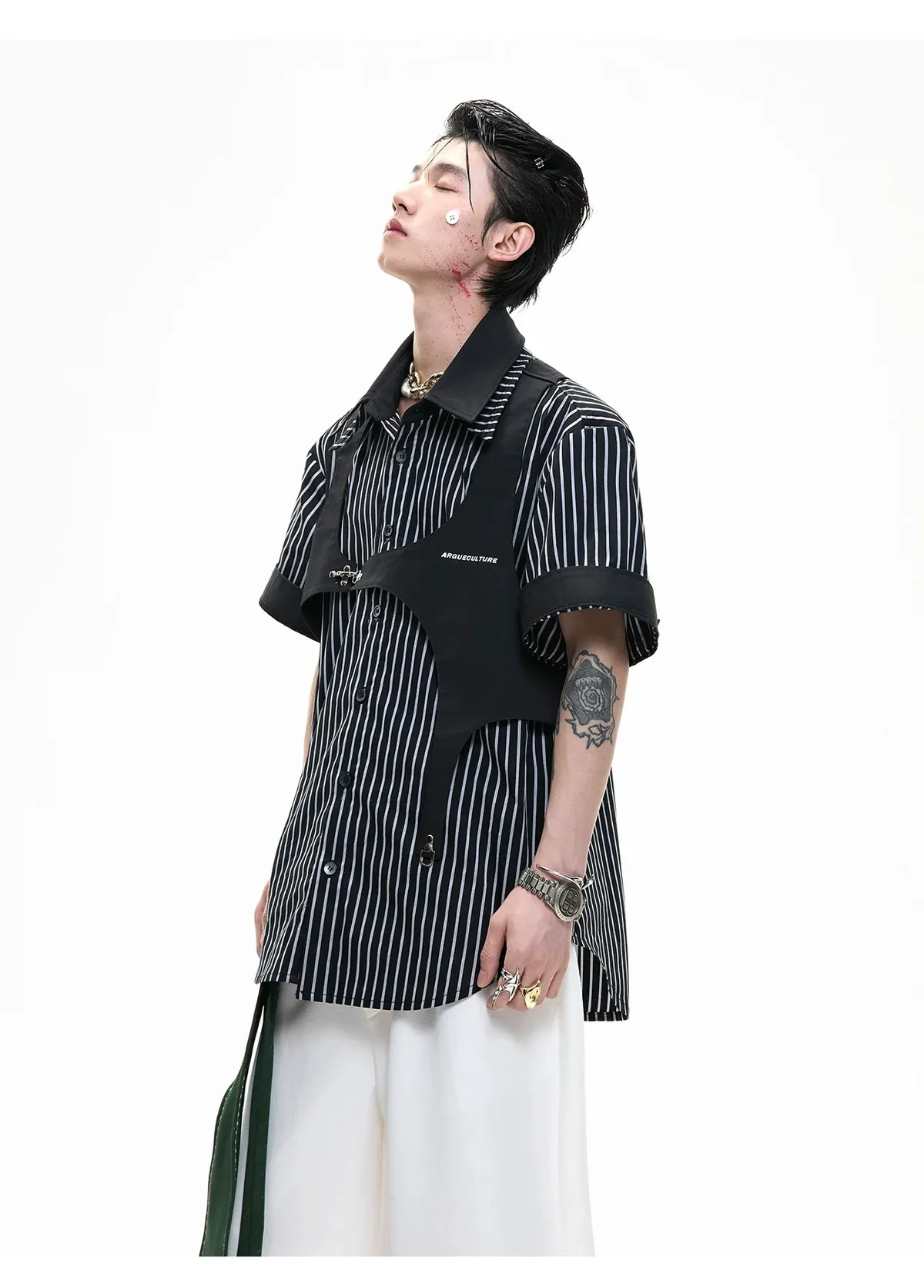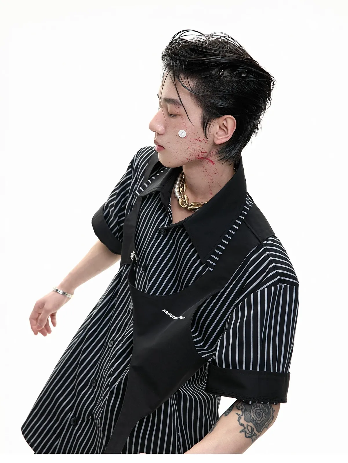 ARGUE 假兩件槍背帶 雙層條紋 襯衫(黑/白)